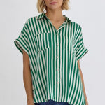 Green + White Stripe Collared Button Up
