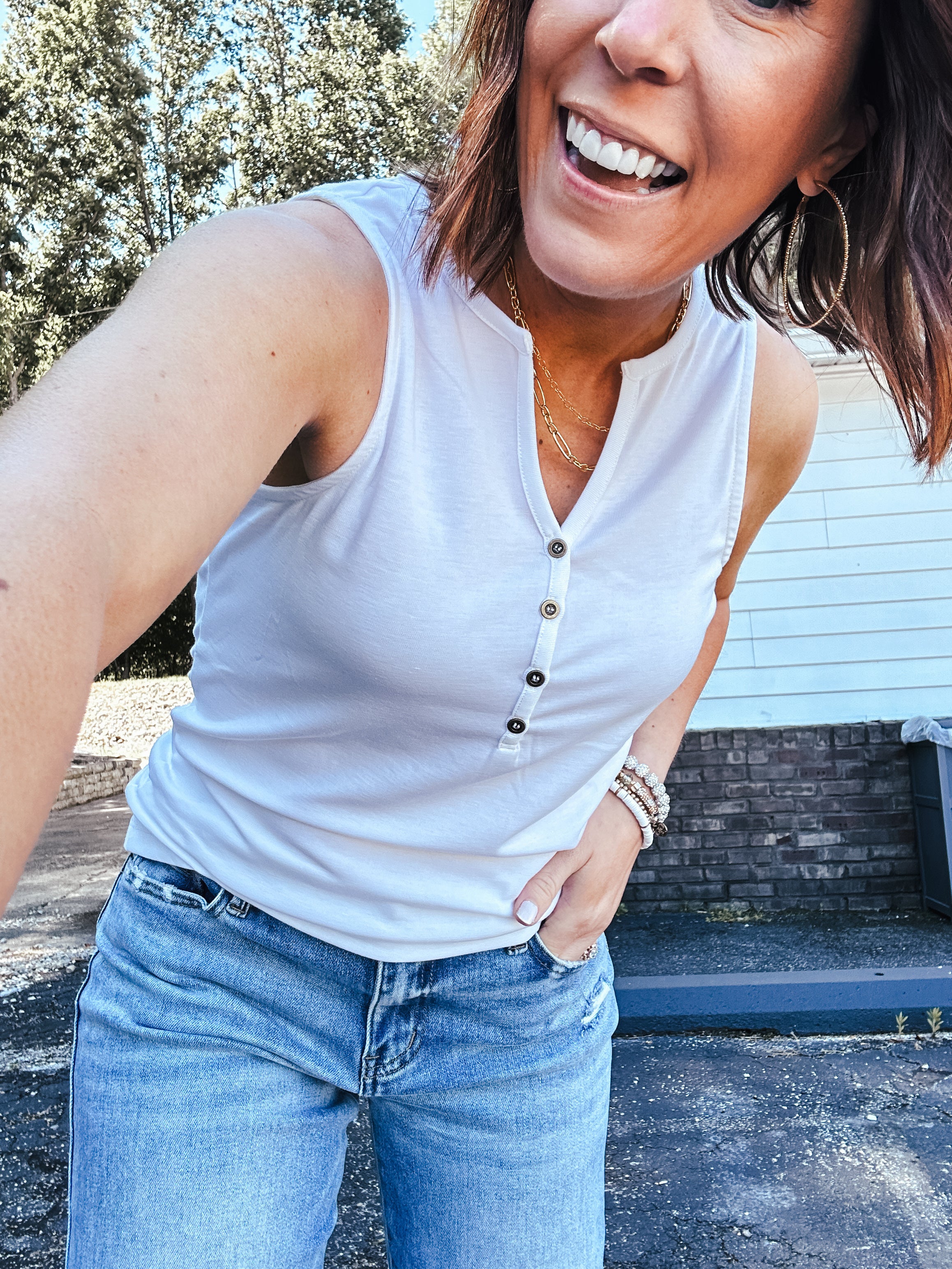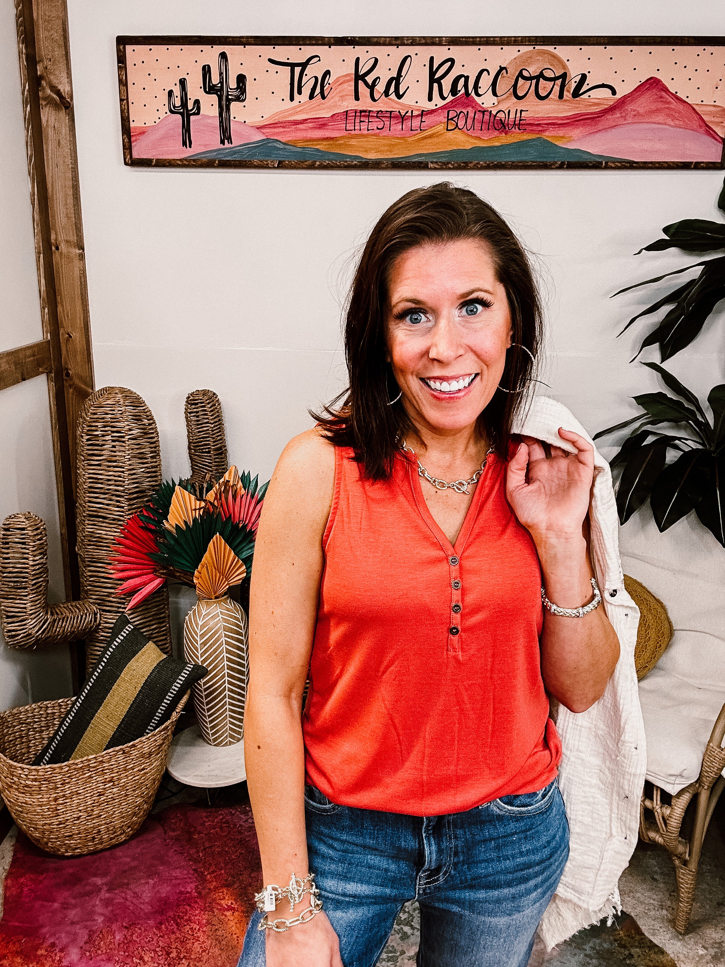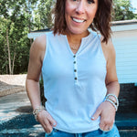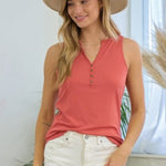Introducing our must-have Henley Knit Tank with Front Buttons! It's unbelievably soft and versatile - wear it solo in the summer or layer it up in cooler seasons with a cardigan or jacket for a stunning look. Elevate your wardrobe today!