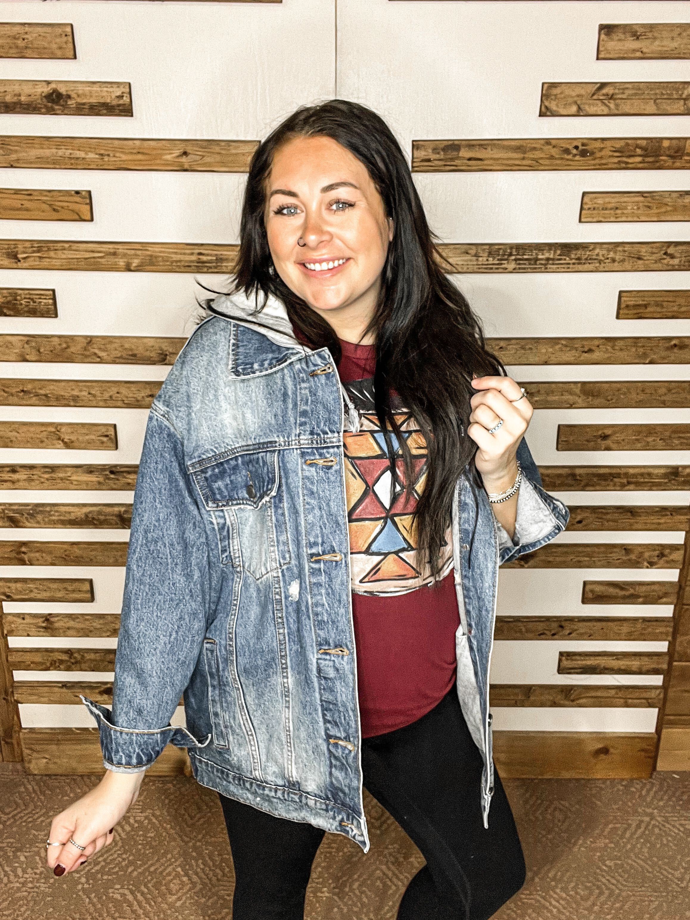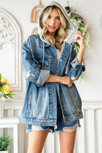 Medium Wash Hooded Denim Jacket