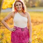Nude One Shoulder Knotted Back Bodysuit with Bra Cups