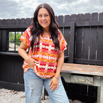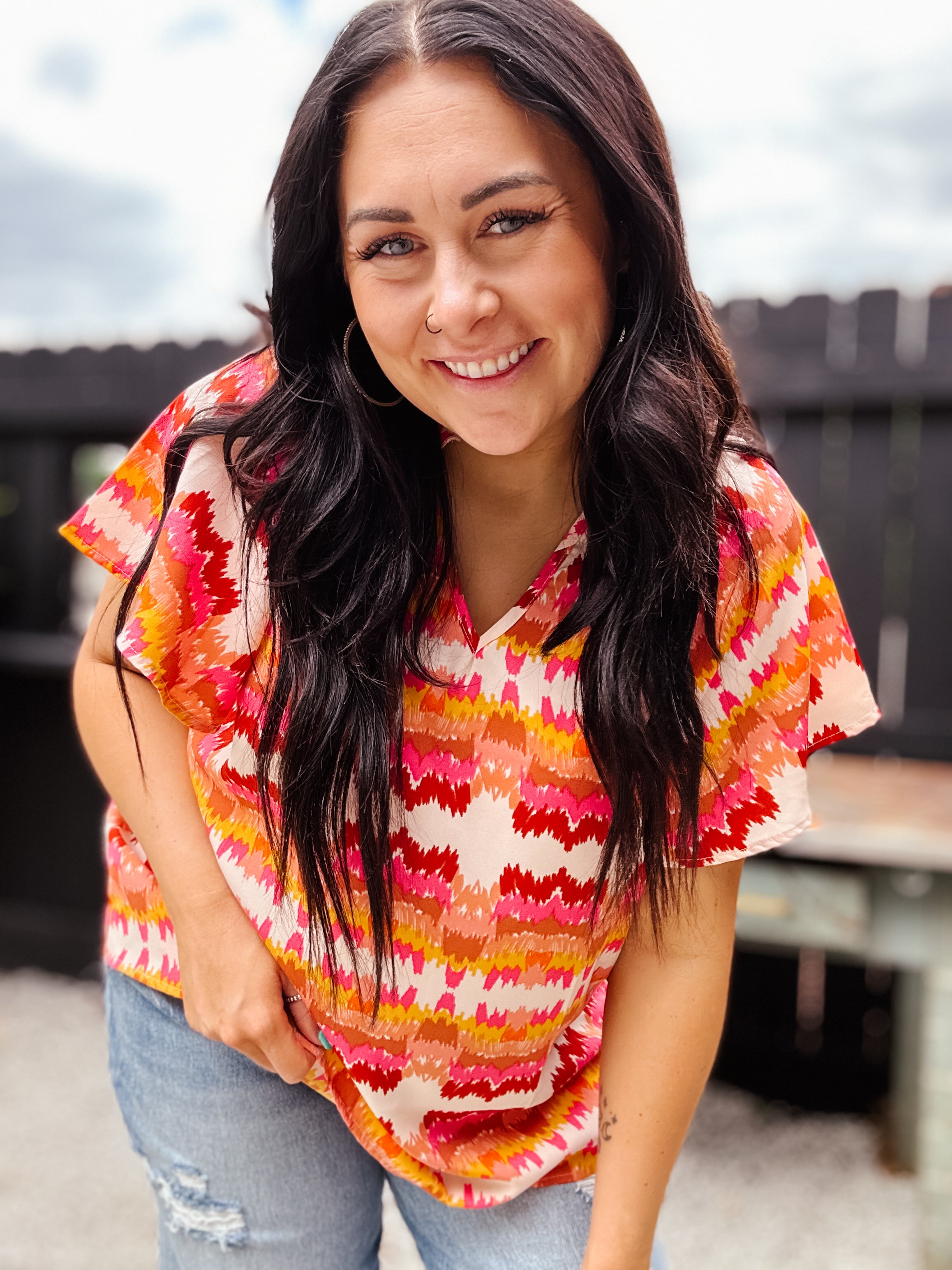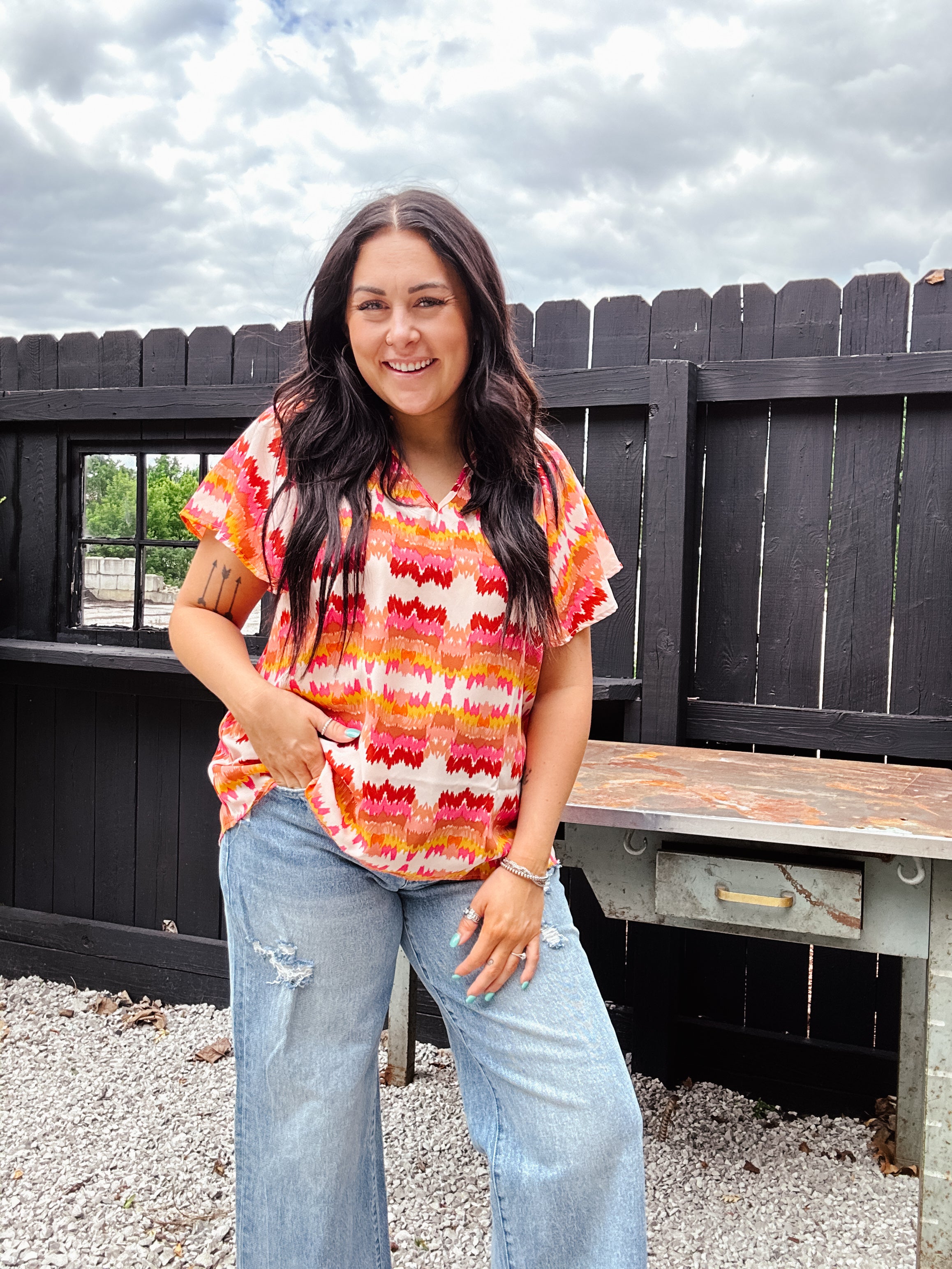 Retro Aztec Pink Combo Short Sleeve Blouse