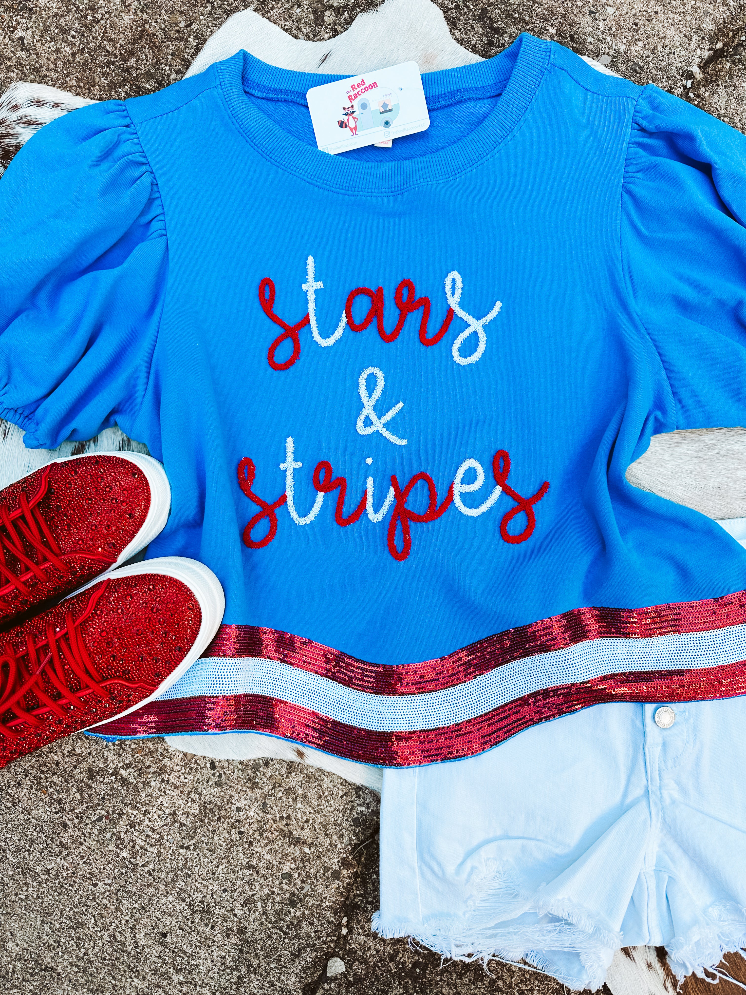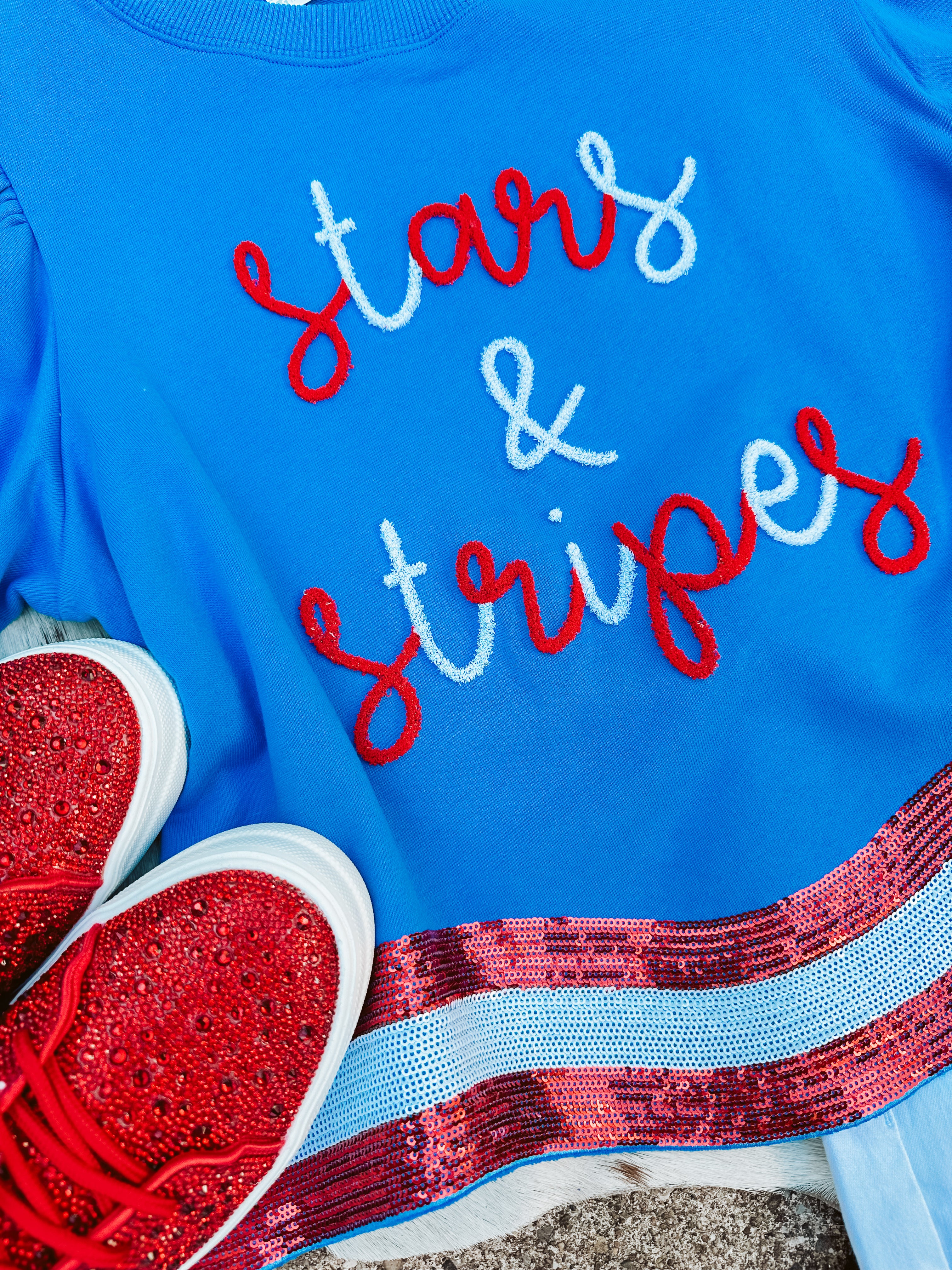 Stars & Stripes Blue Sequin Patch Tee