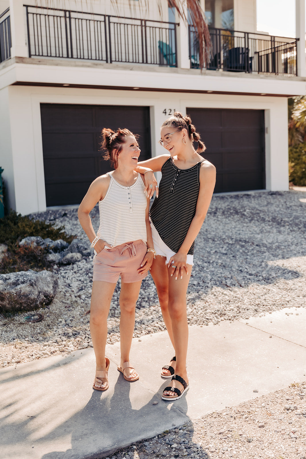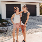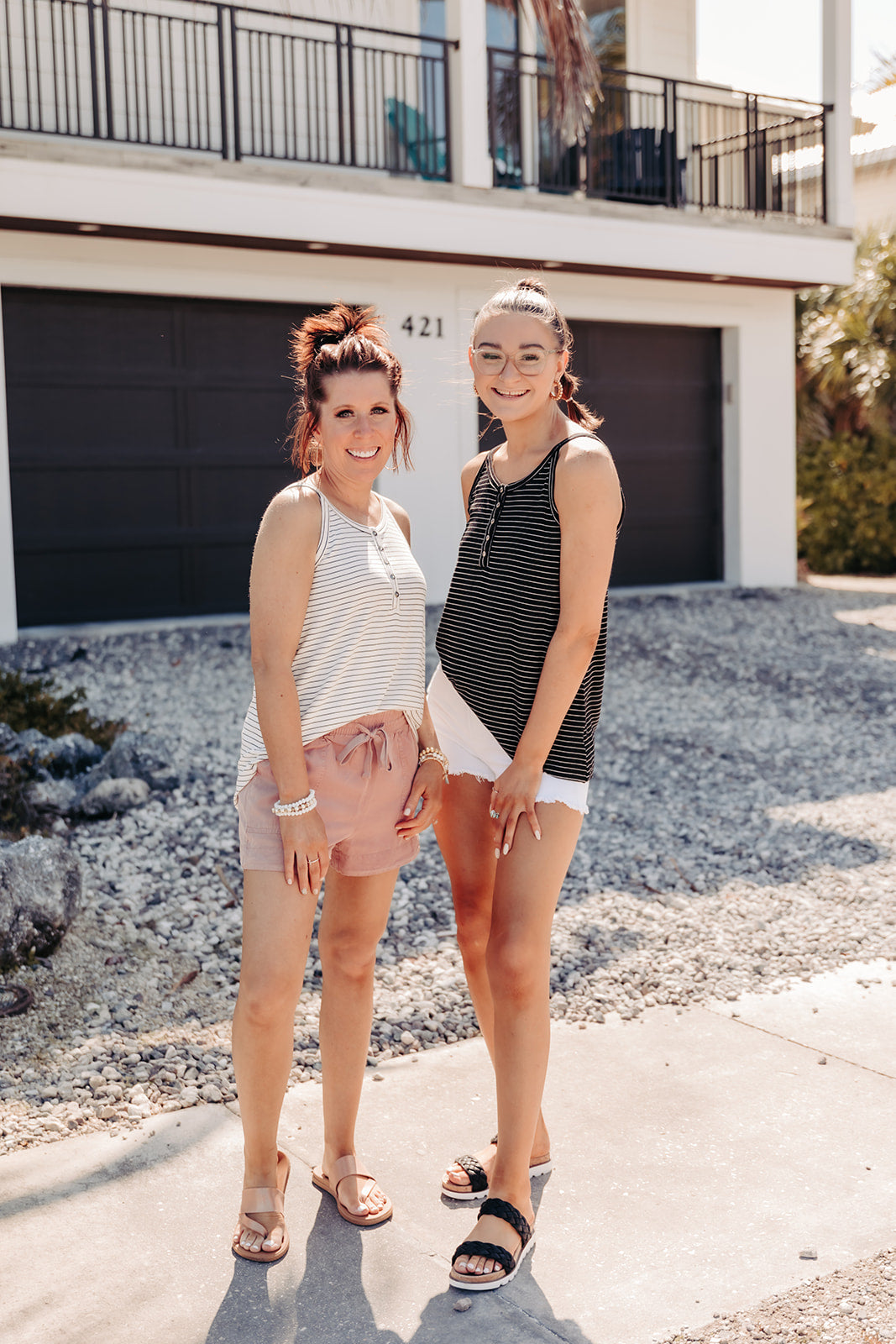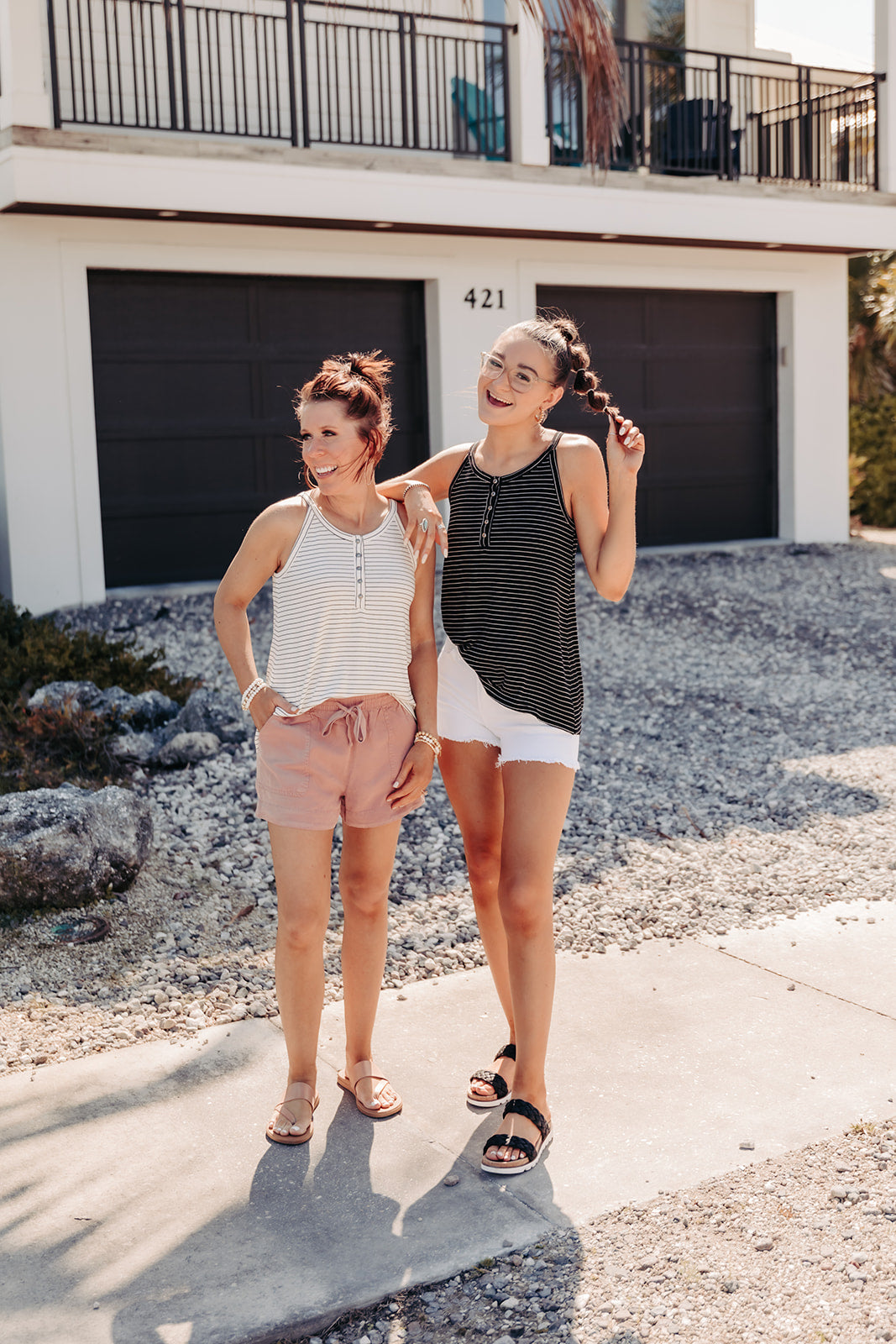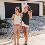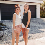 STRIPE RIB KNIT BUTTON DETAIL HALTER TANK