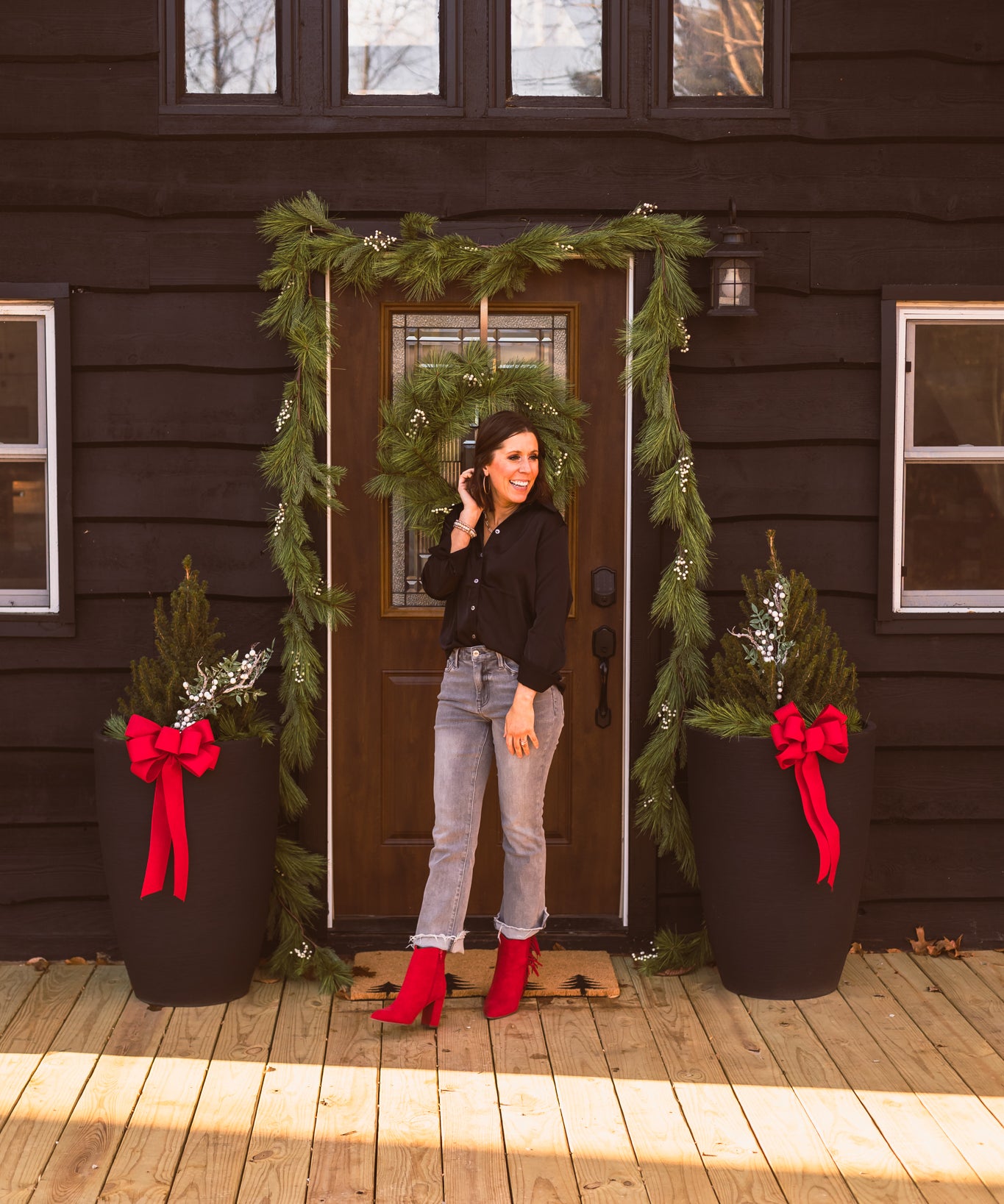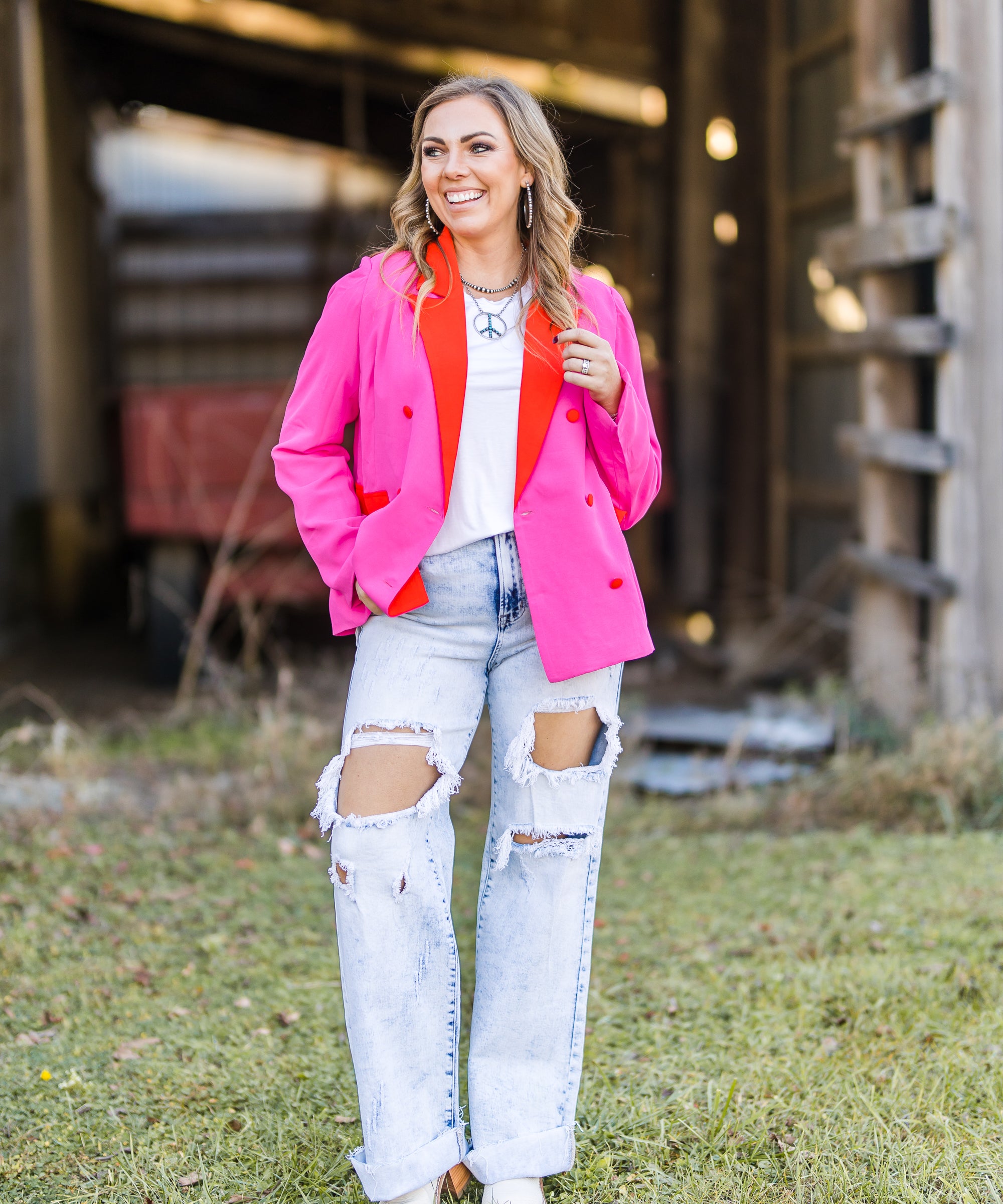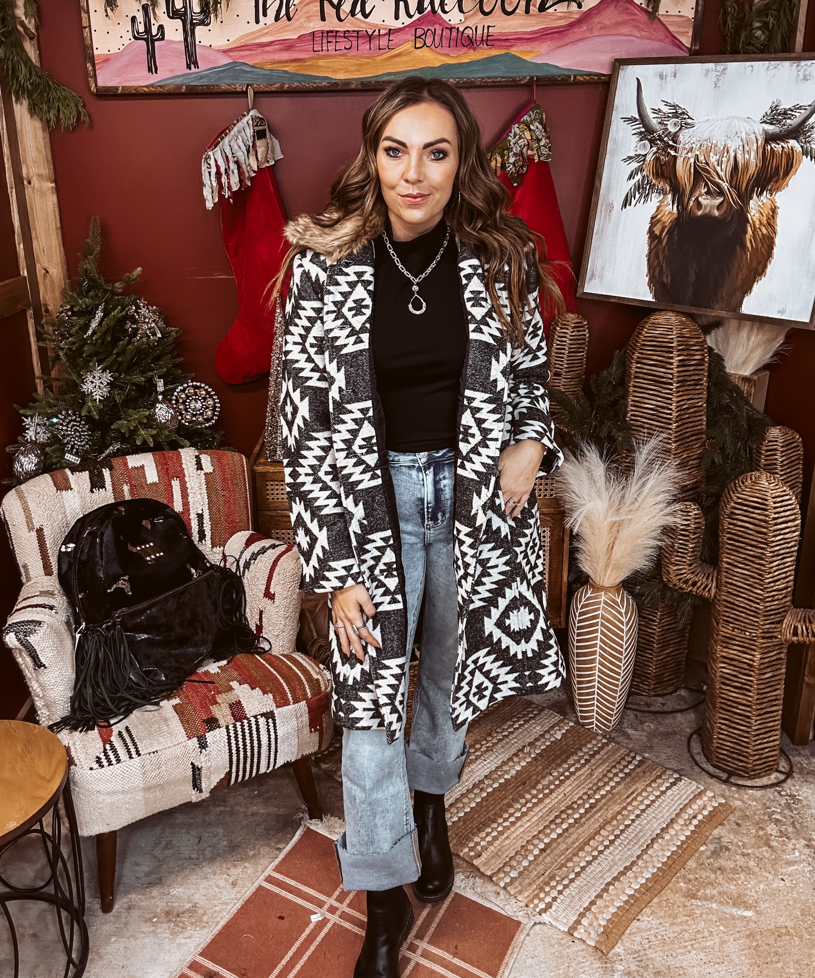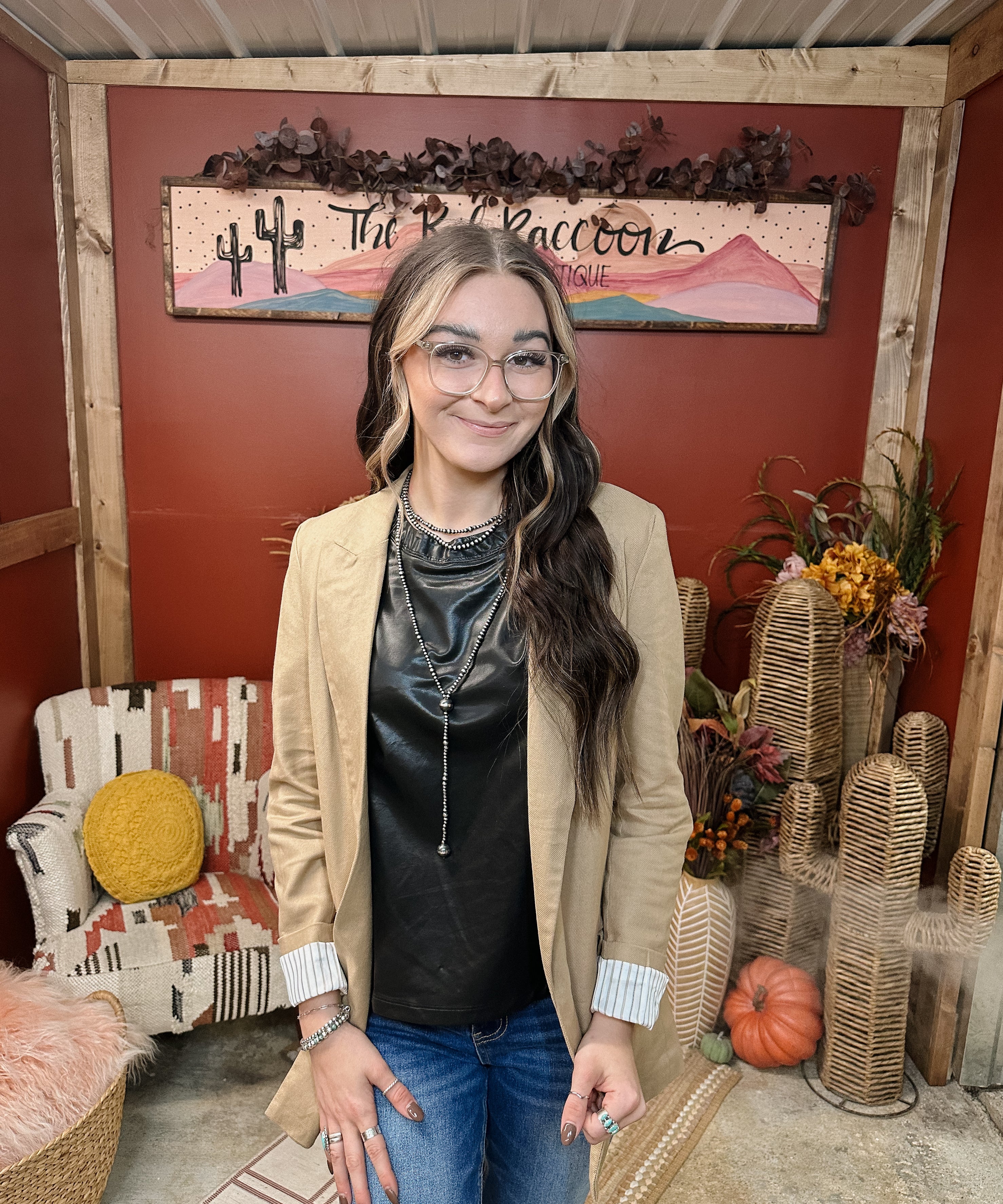 Black Faux Leather Moto Jacket with Gingham Contrast