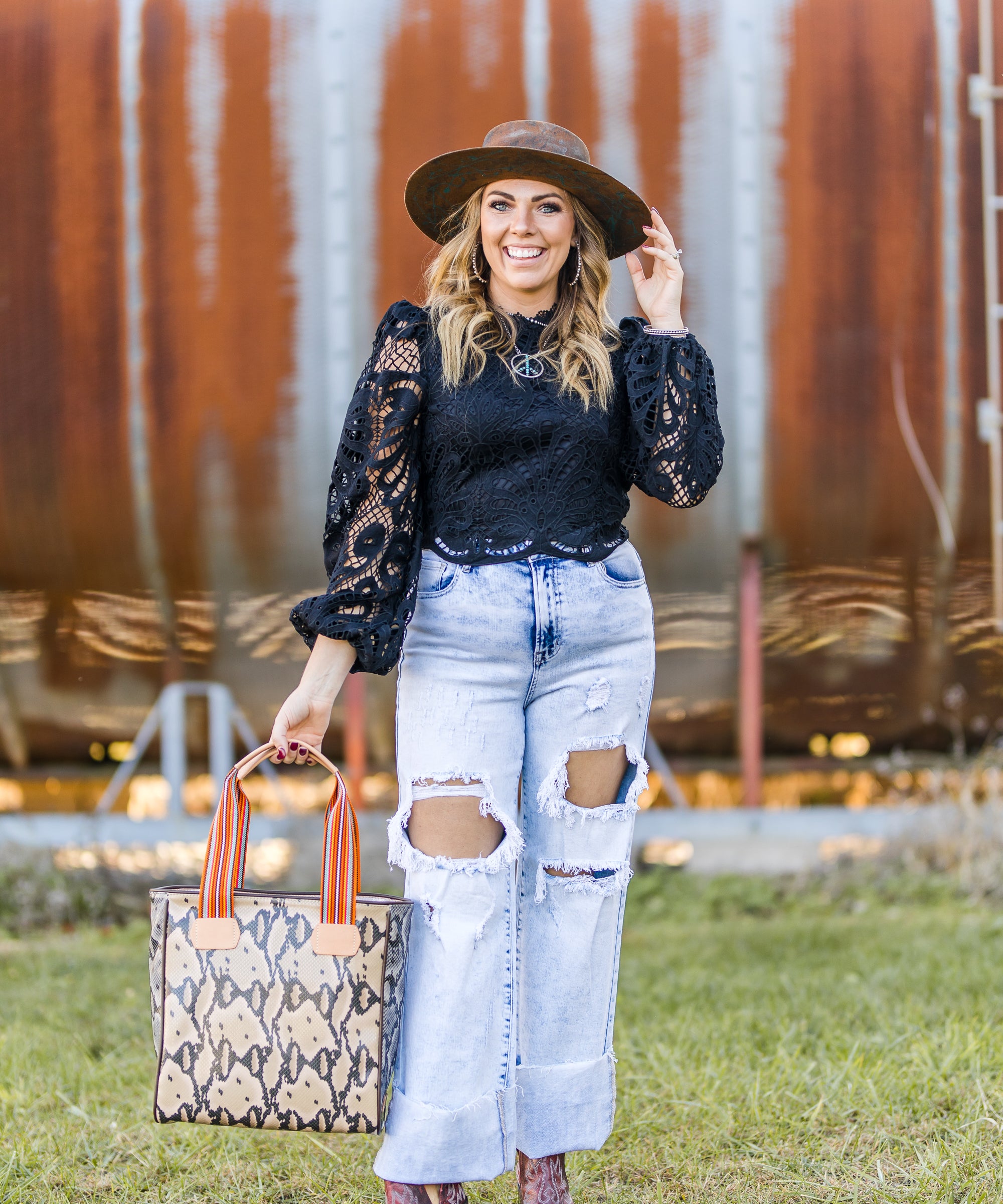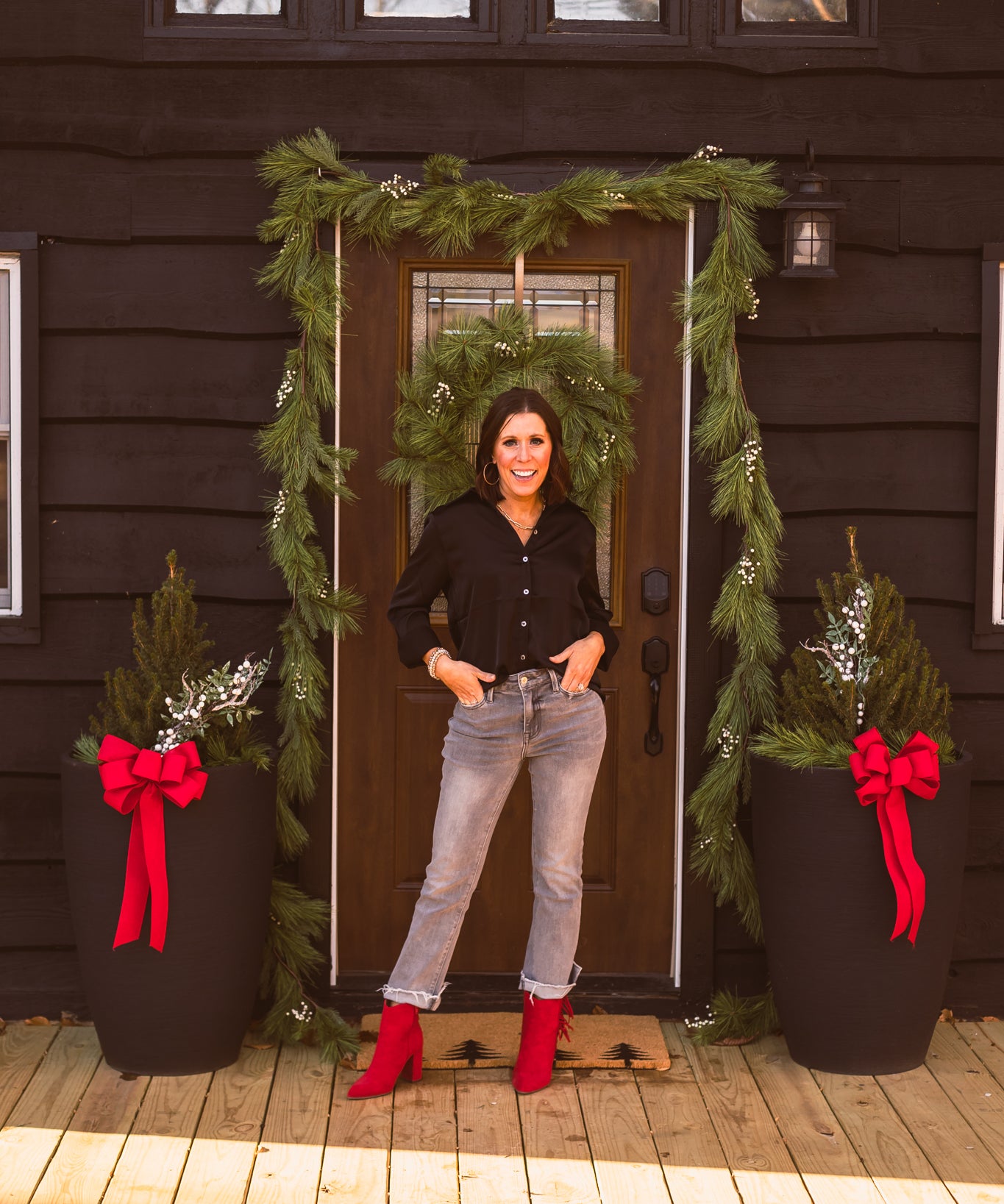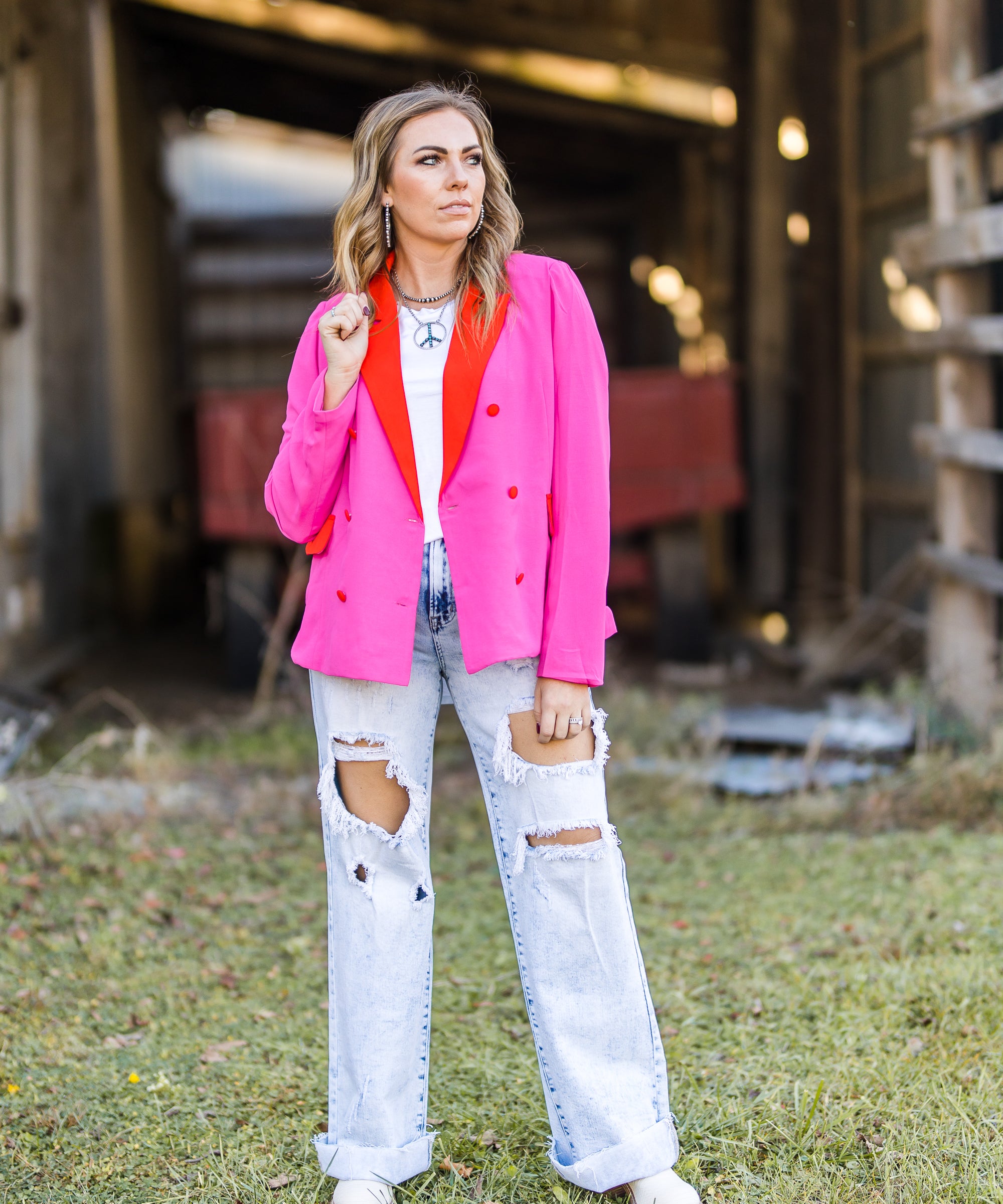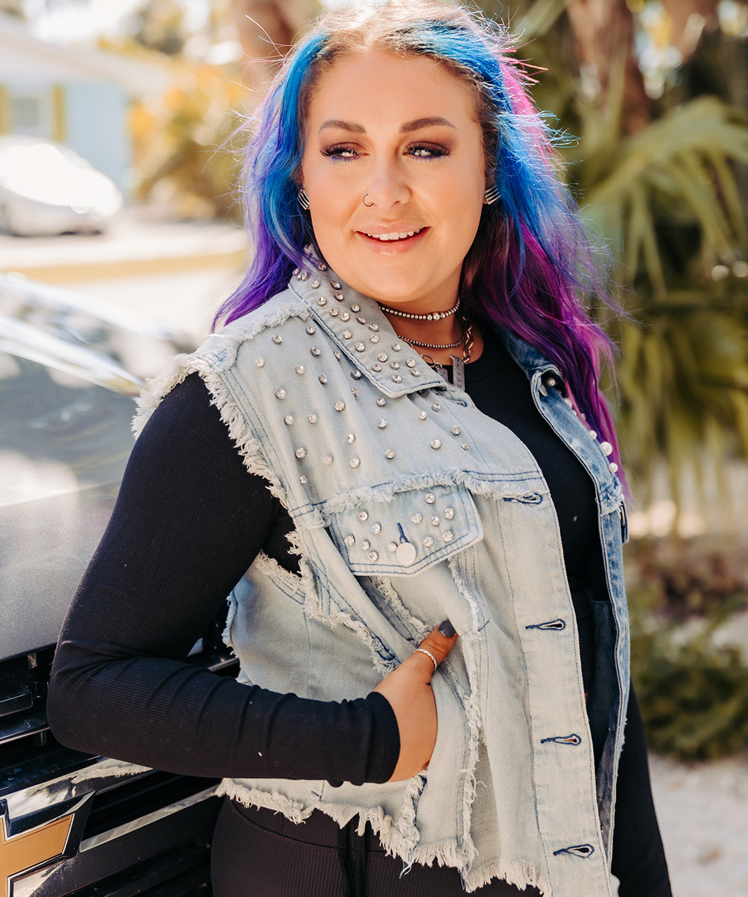 Black Faux Leather Moto Jacket with Gingham Contrast