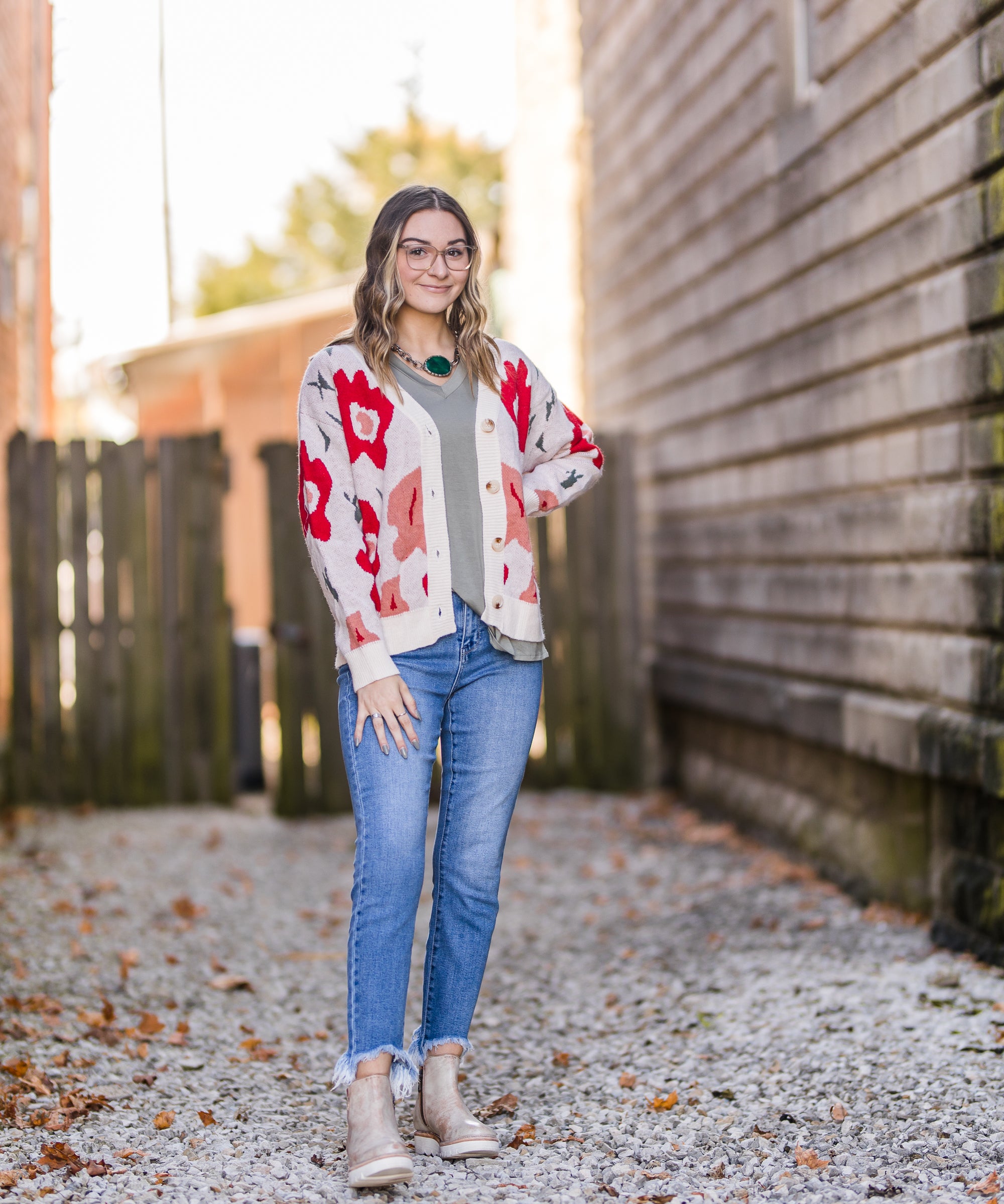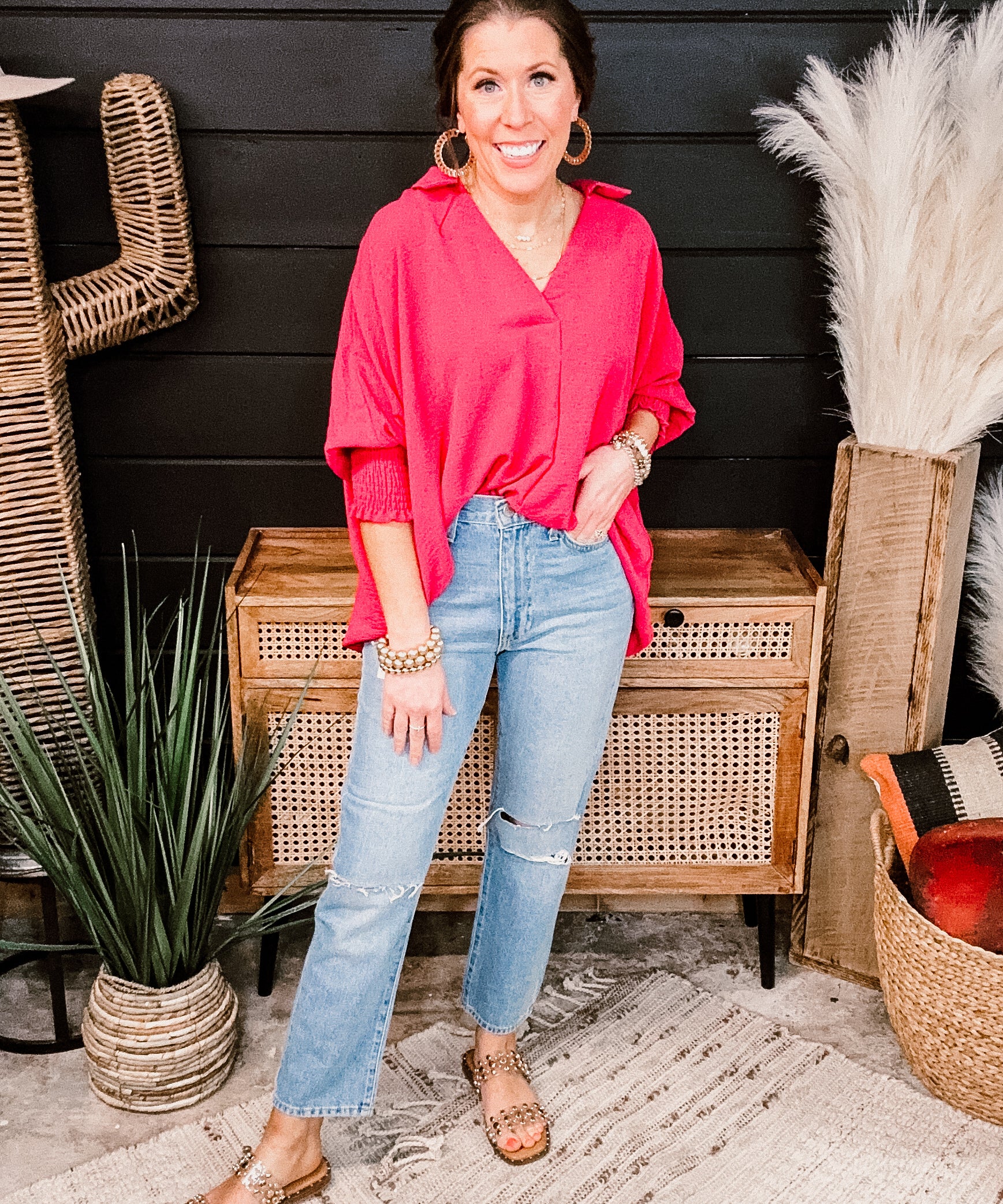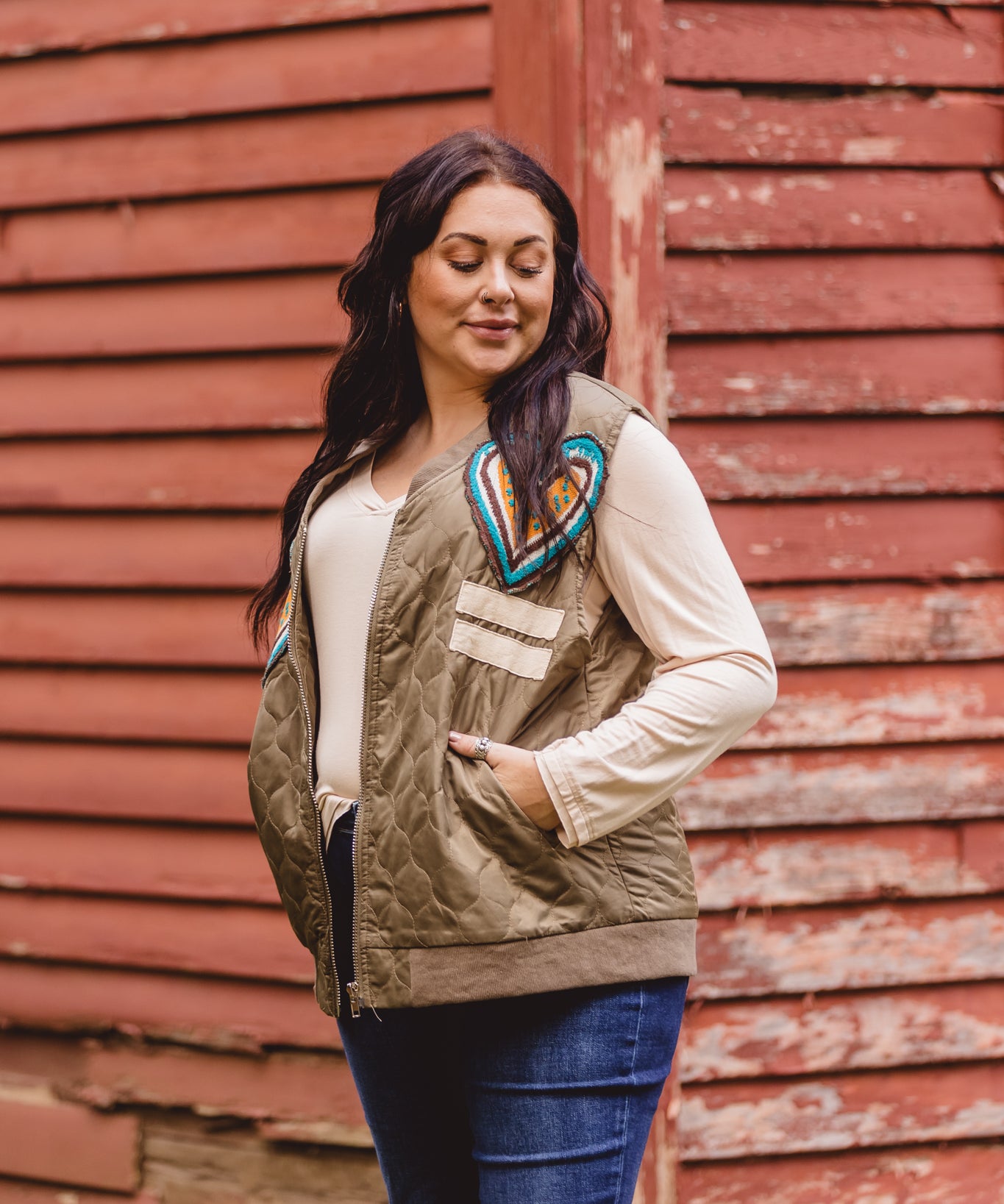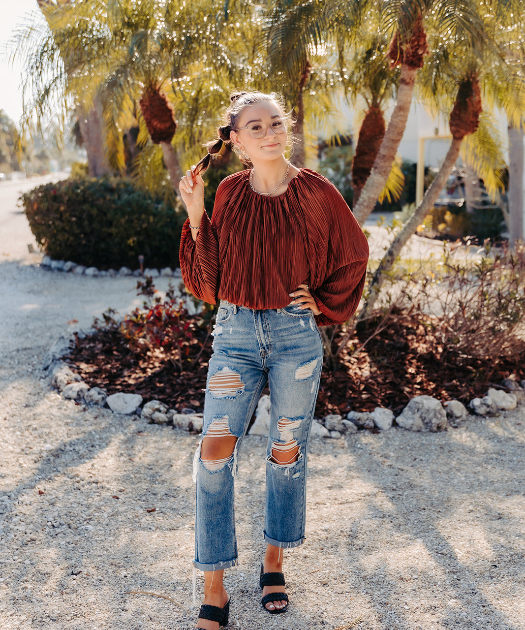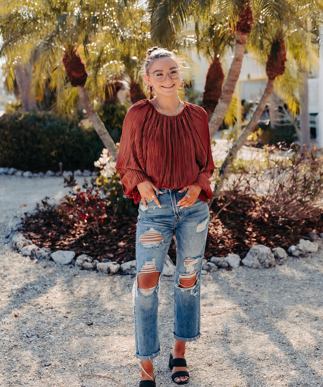Apple Green Rust Embroidered Flutter Sleeve Top