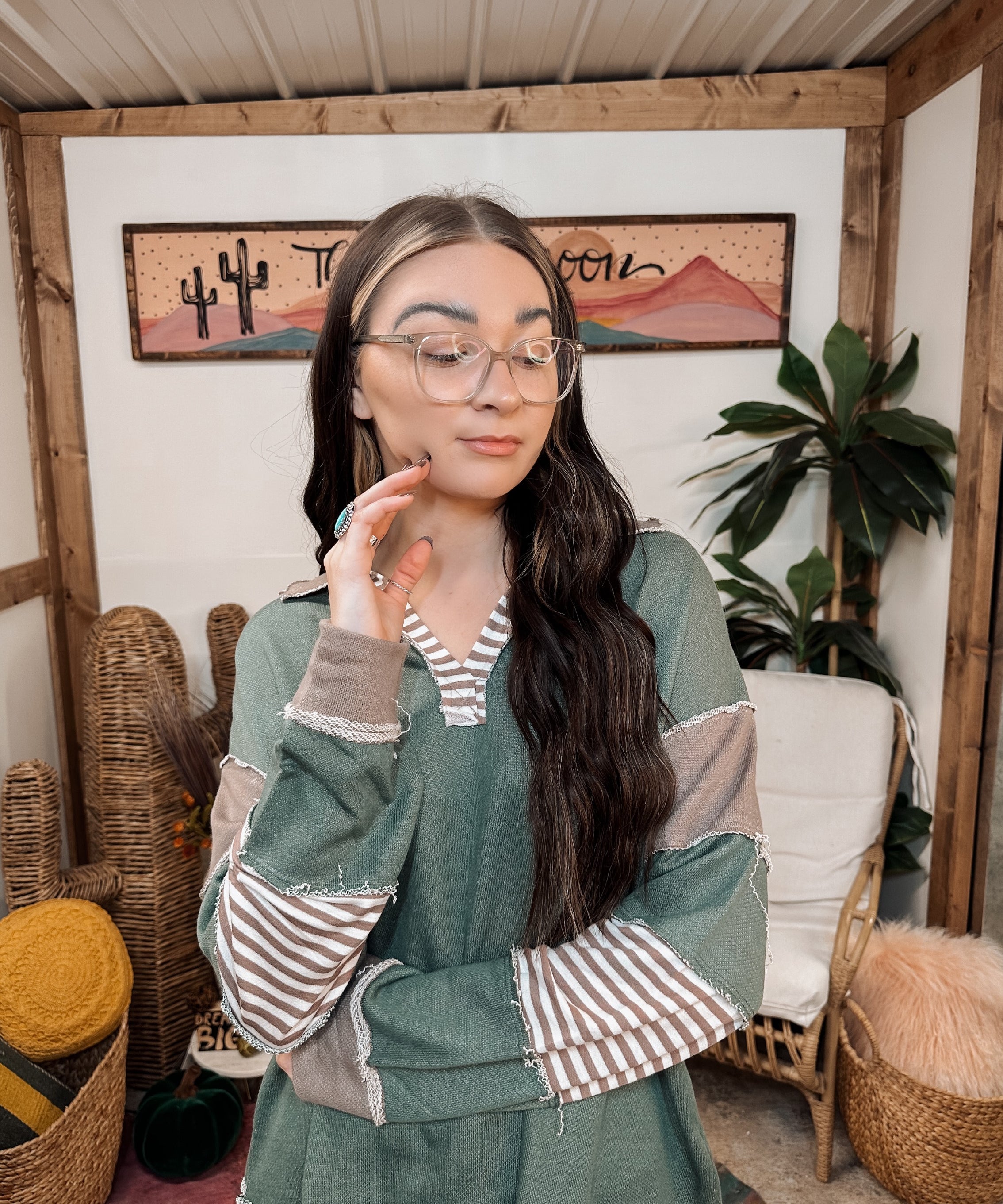 Olive + Mocha L/S Stripe Terry L/S