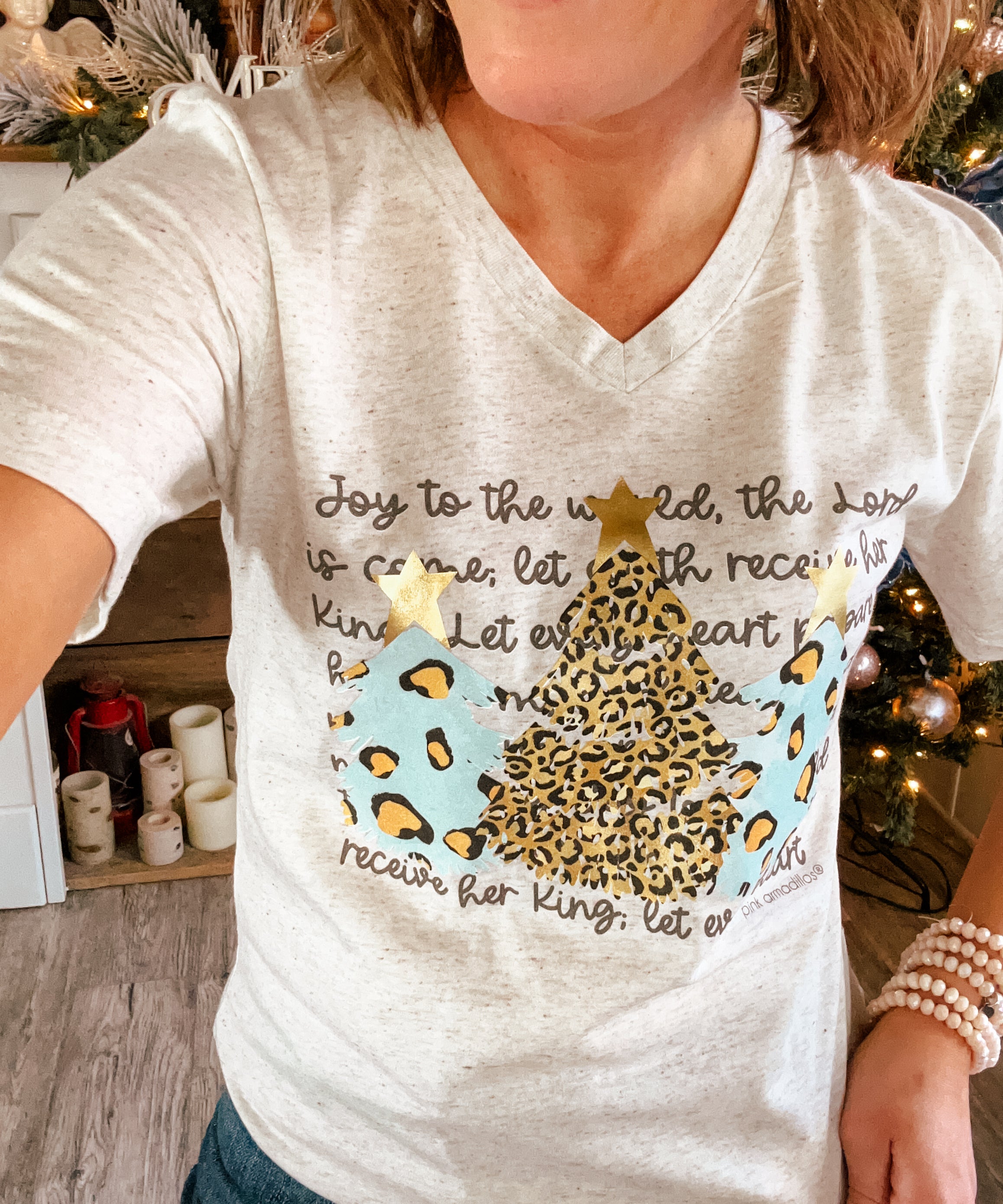 Oatmeal Joy To The World V Neck
