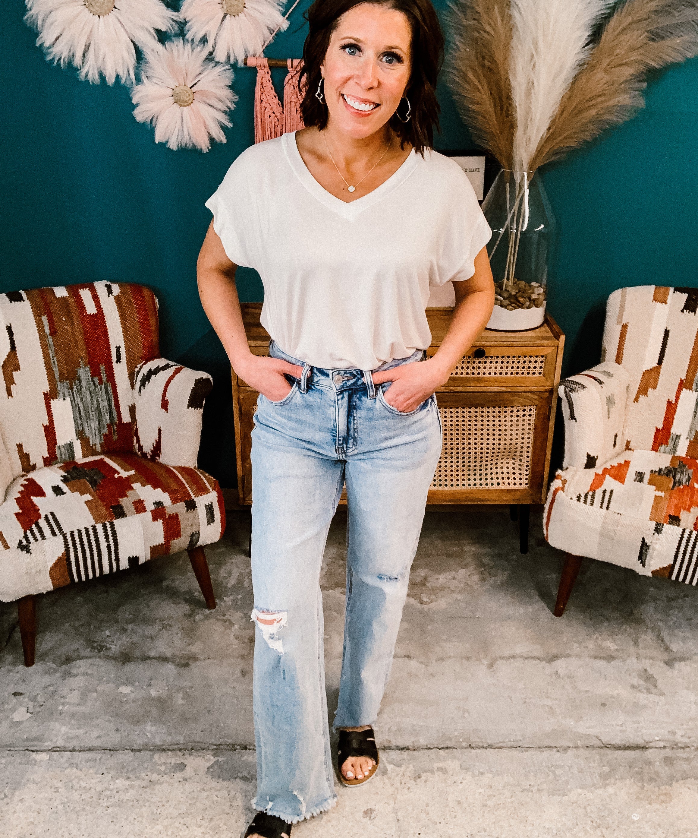 Ivory Bamboo V Neck T-Shirt