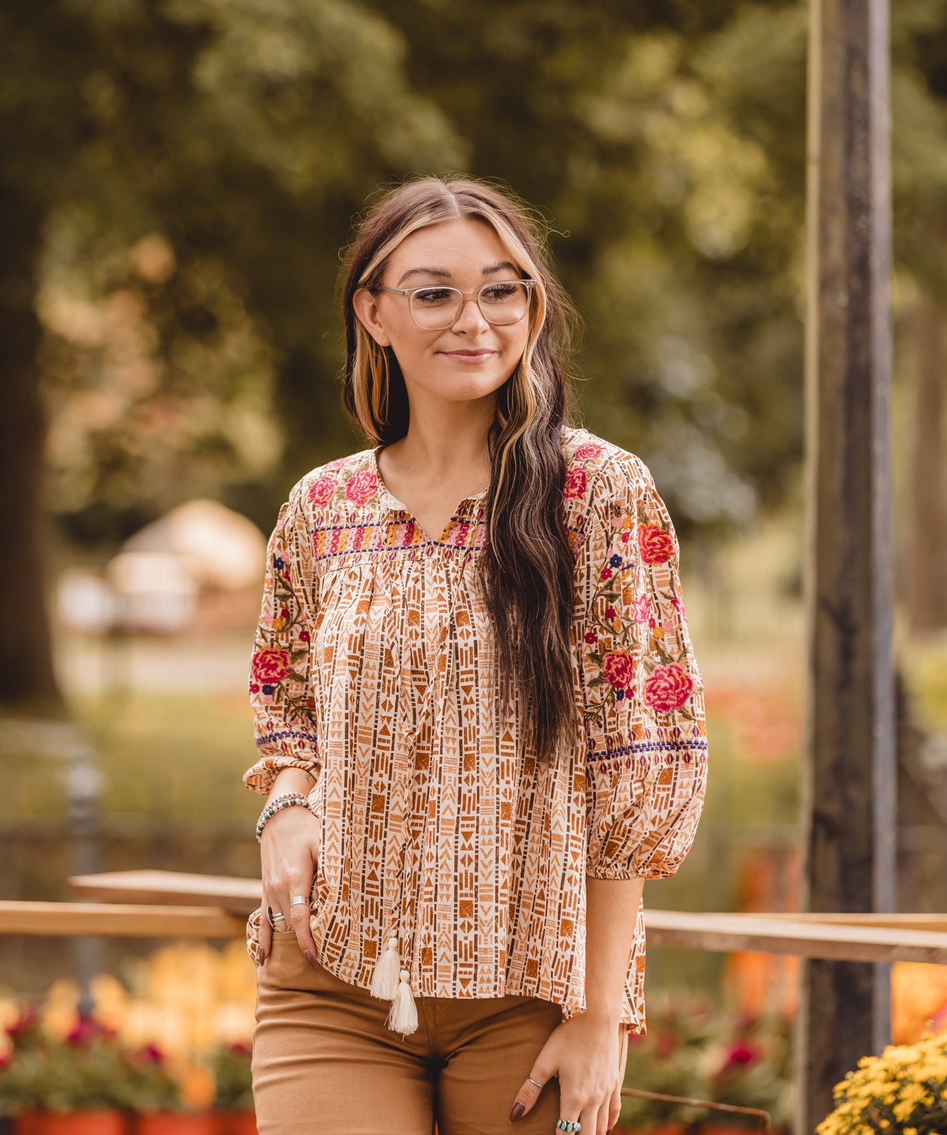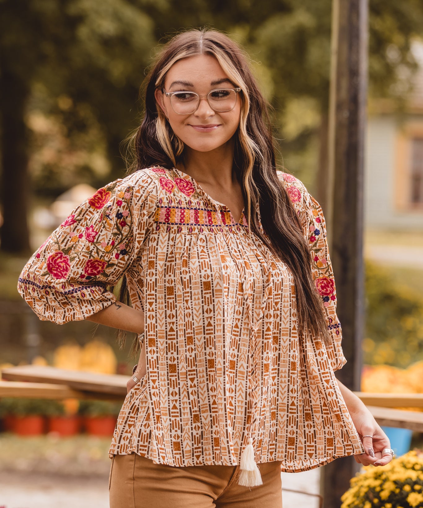 Rust Geometric Embroidered Top