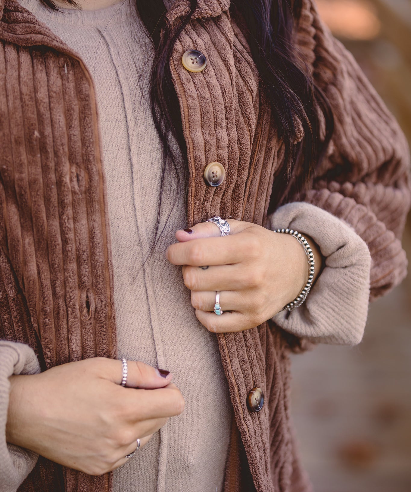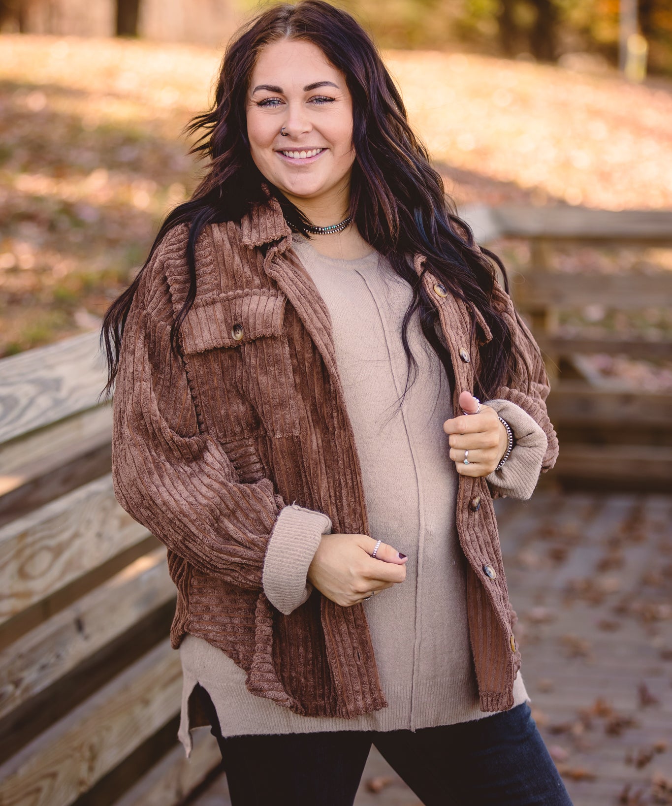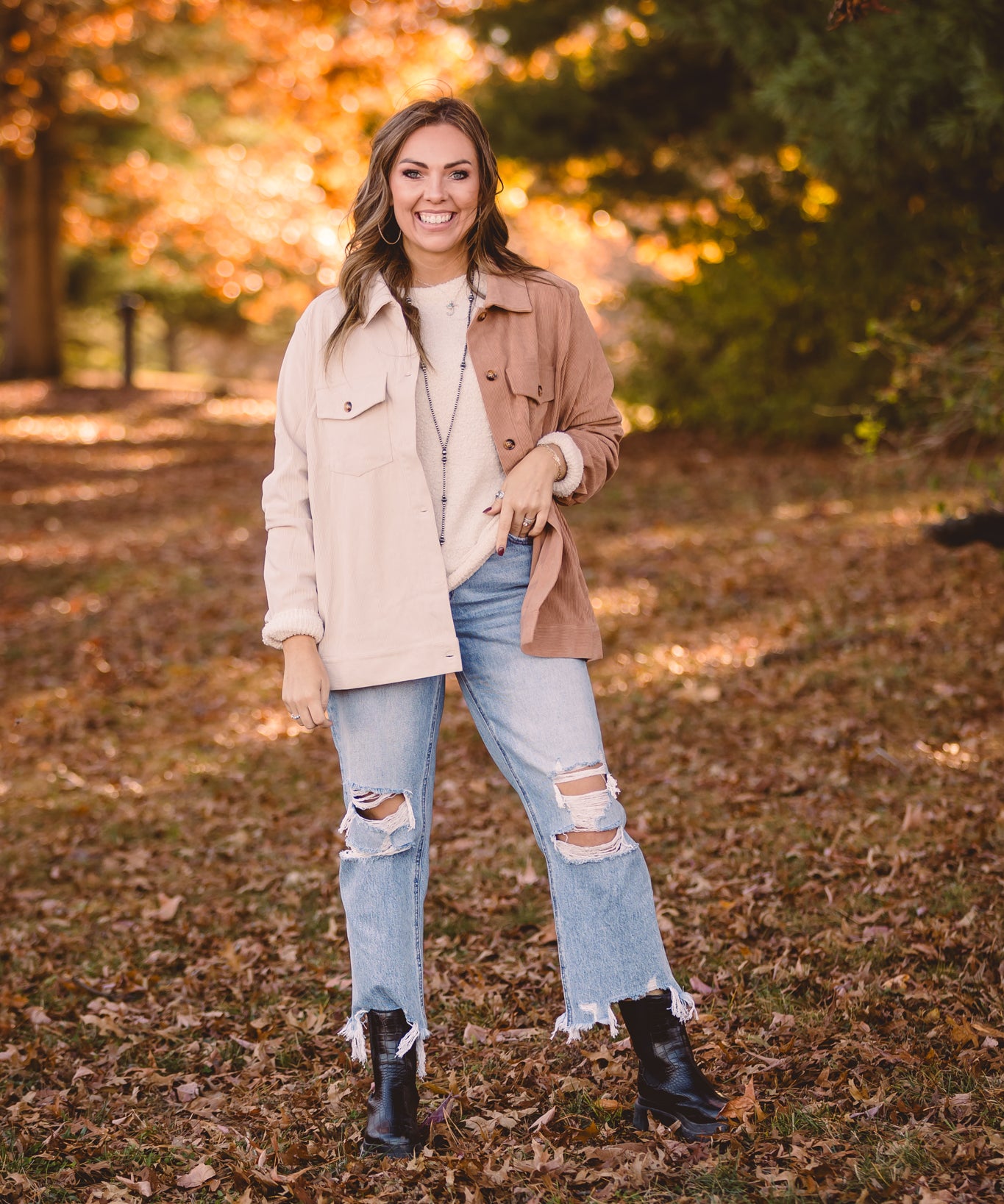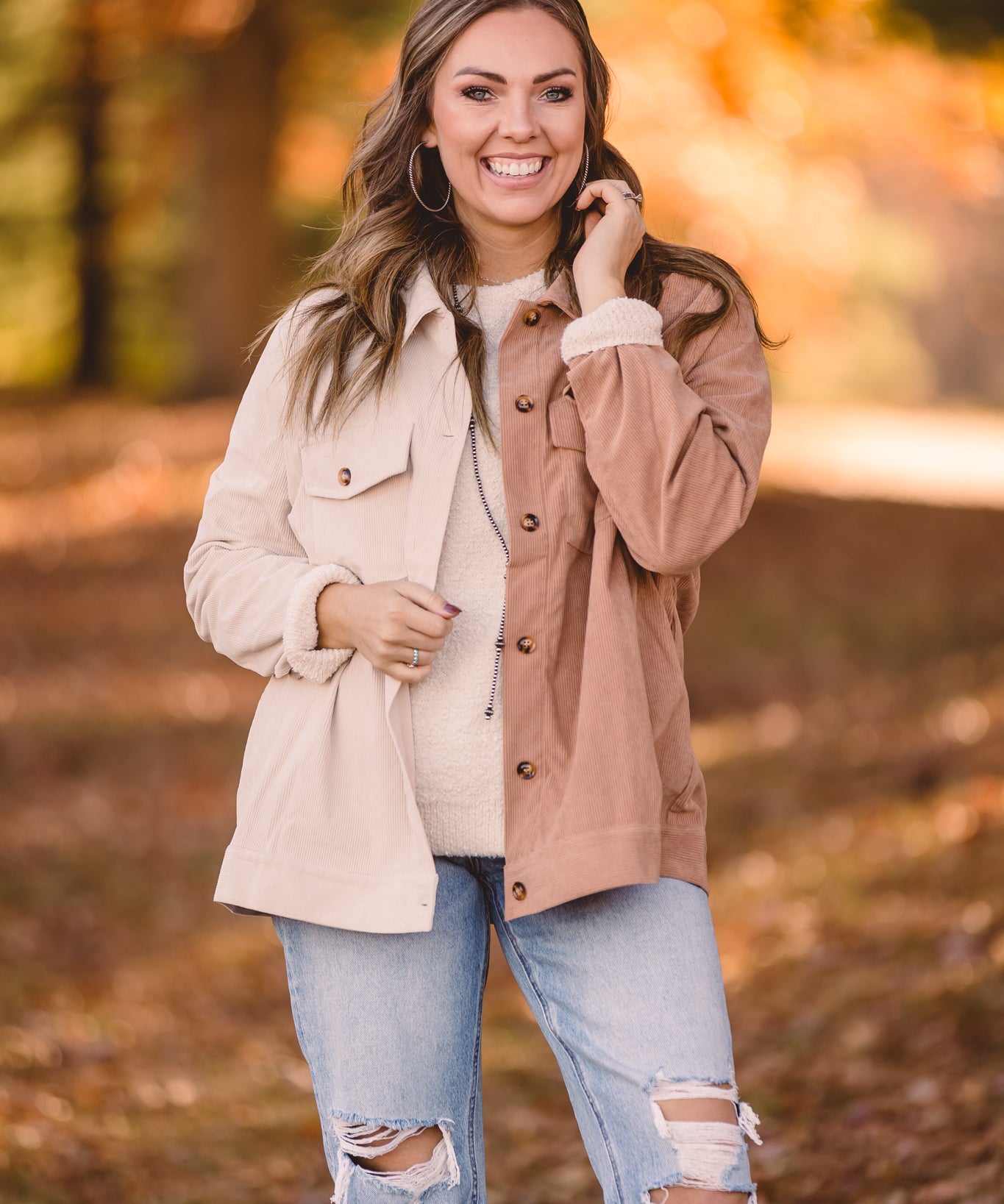 Mocha + Cream Half & Half Mini Corduroy Shacket