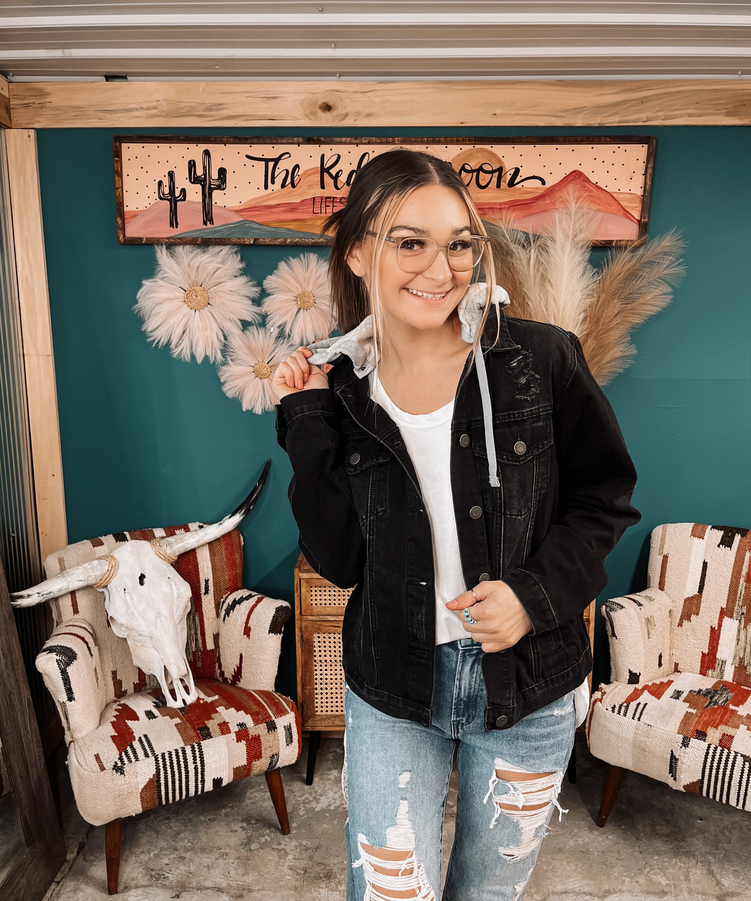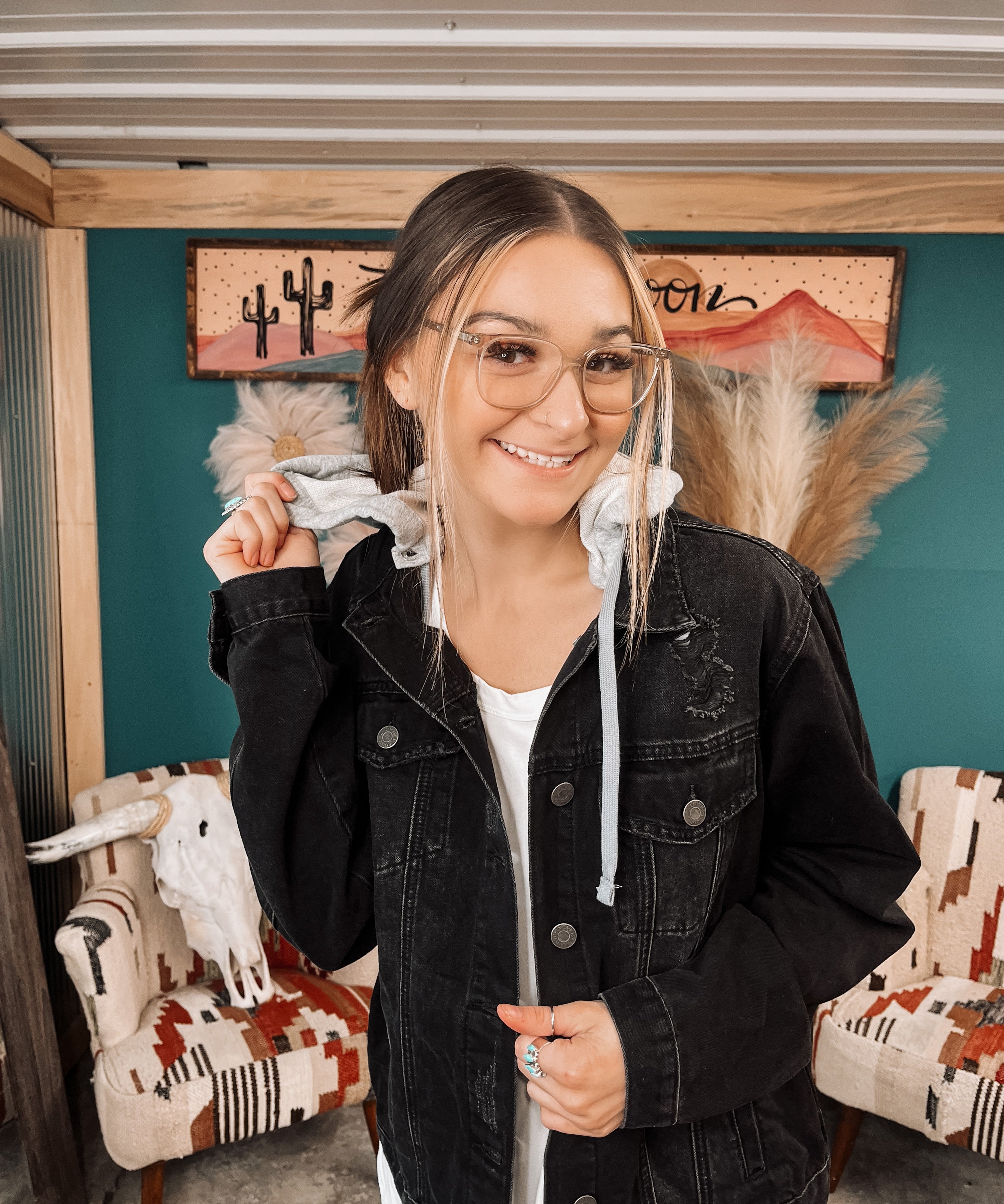 Washed Black Relaxed Vintage Jacket with Hoodie
