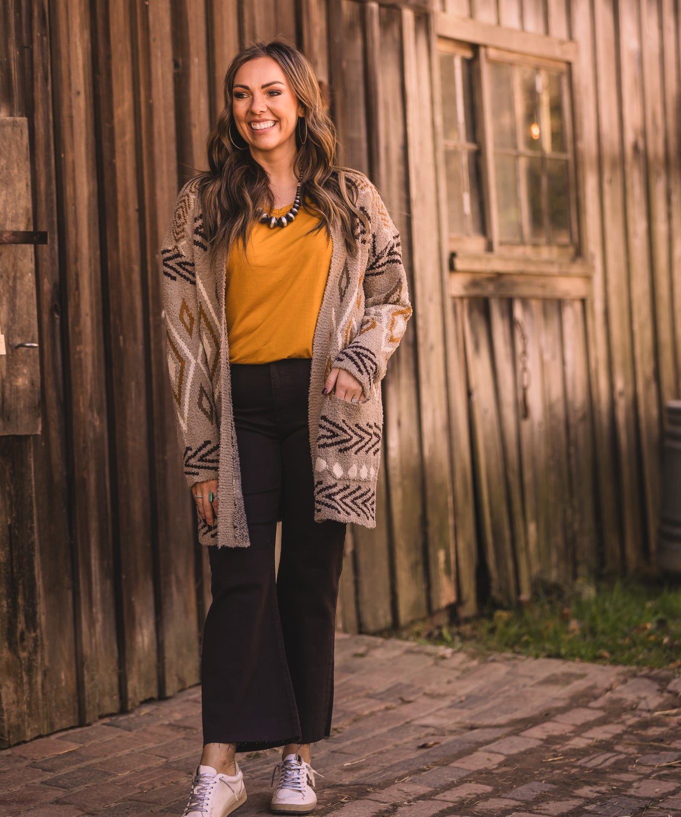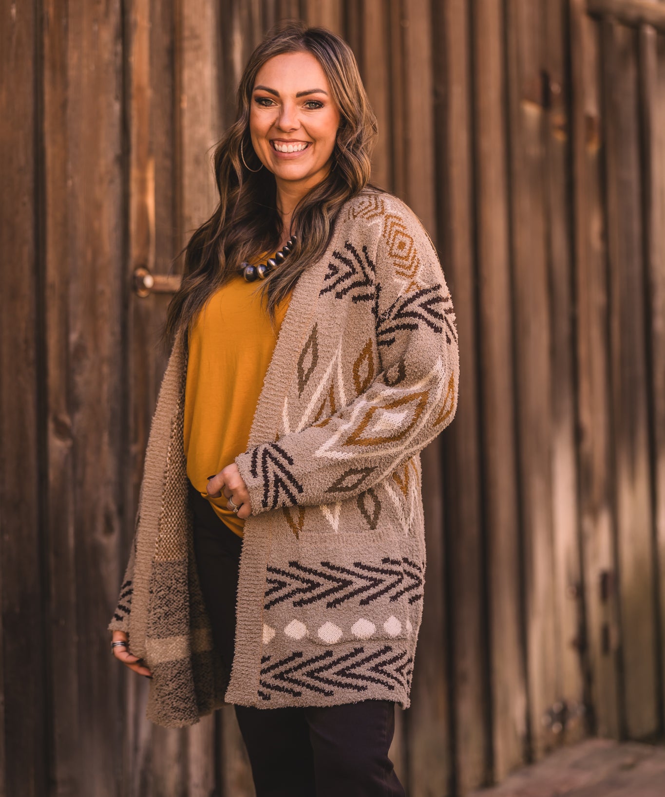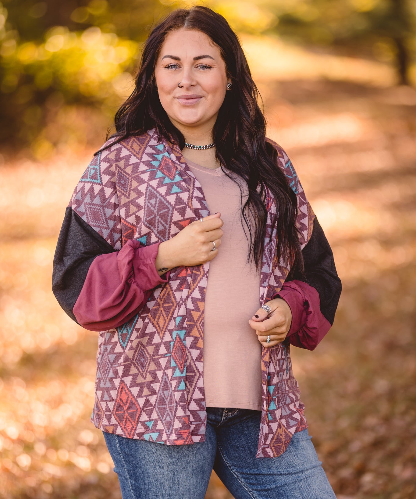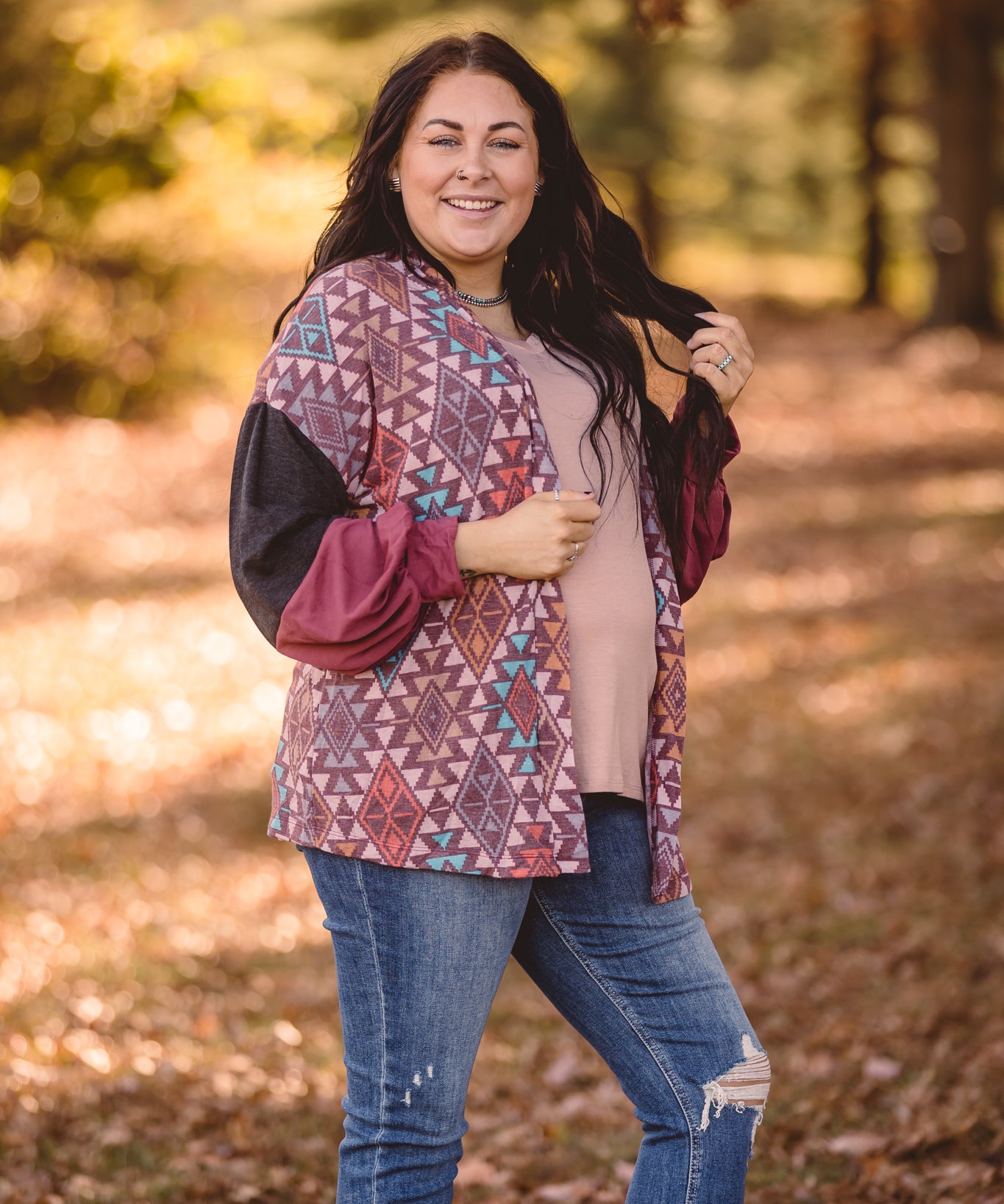 Burgundy + Teal Charcoal Mix Aztec Cardigan