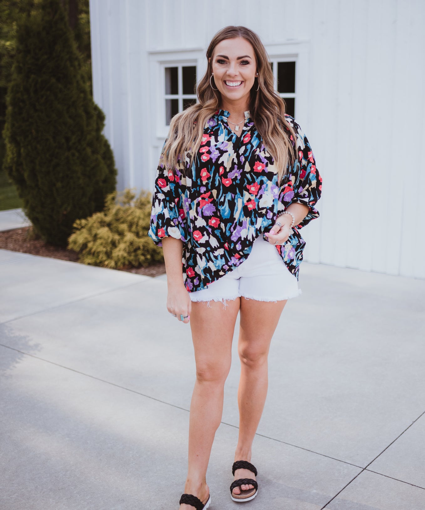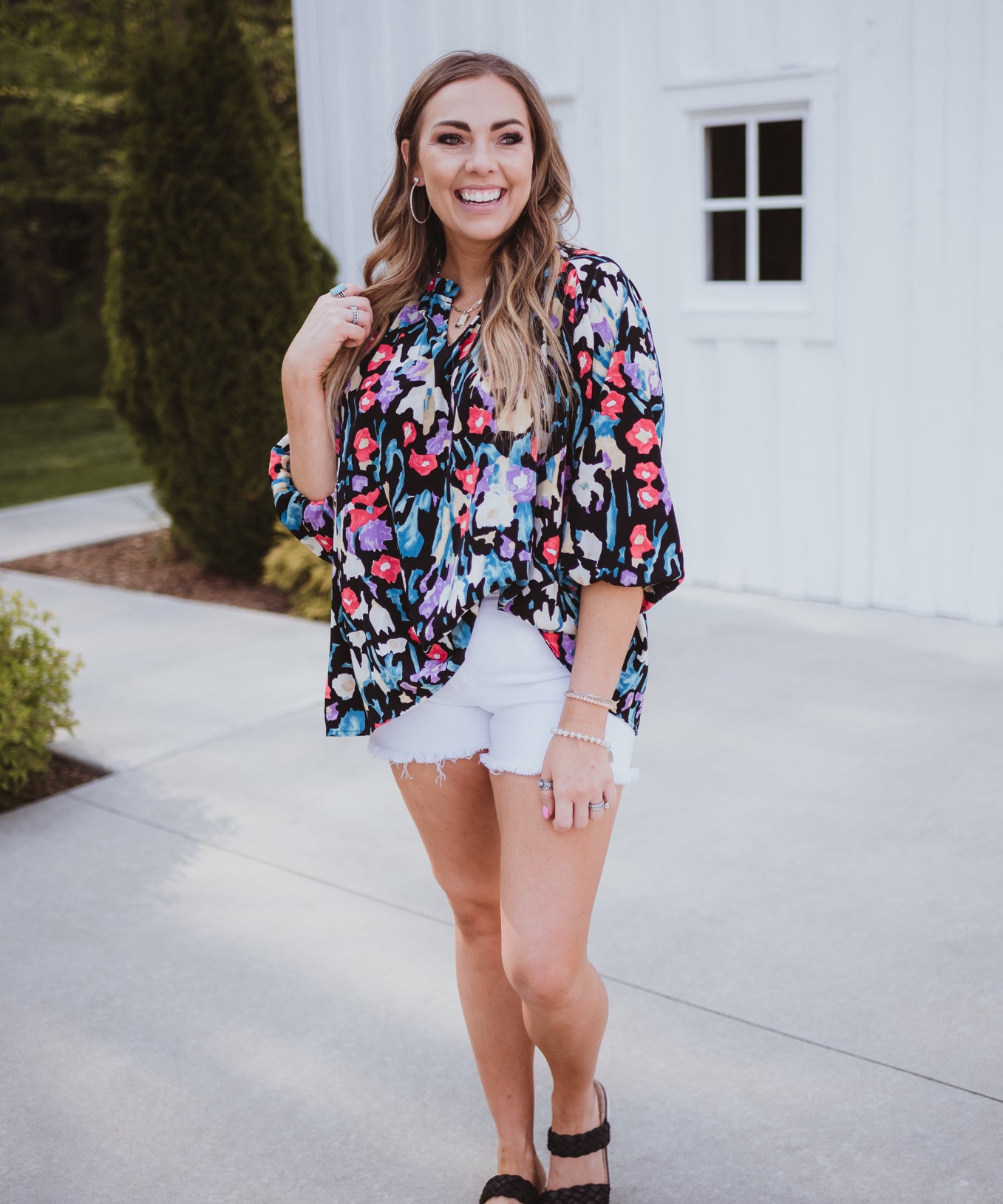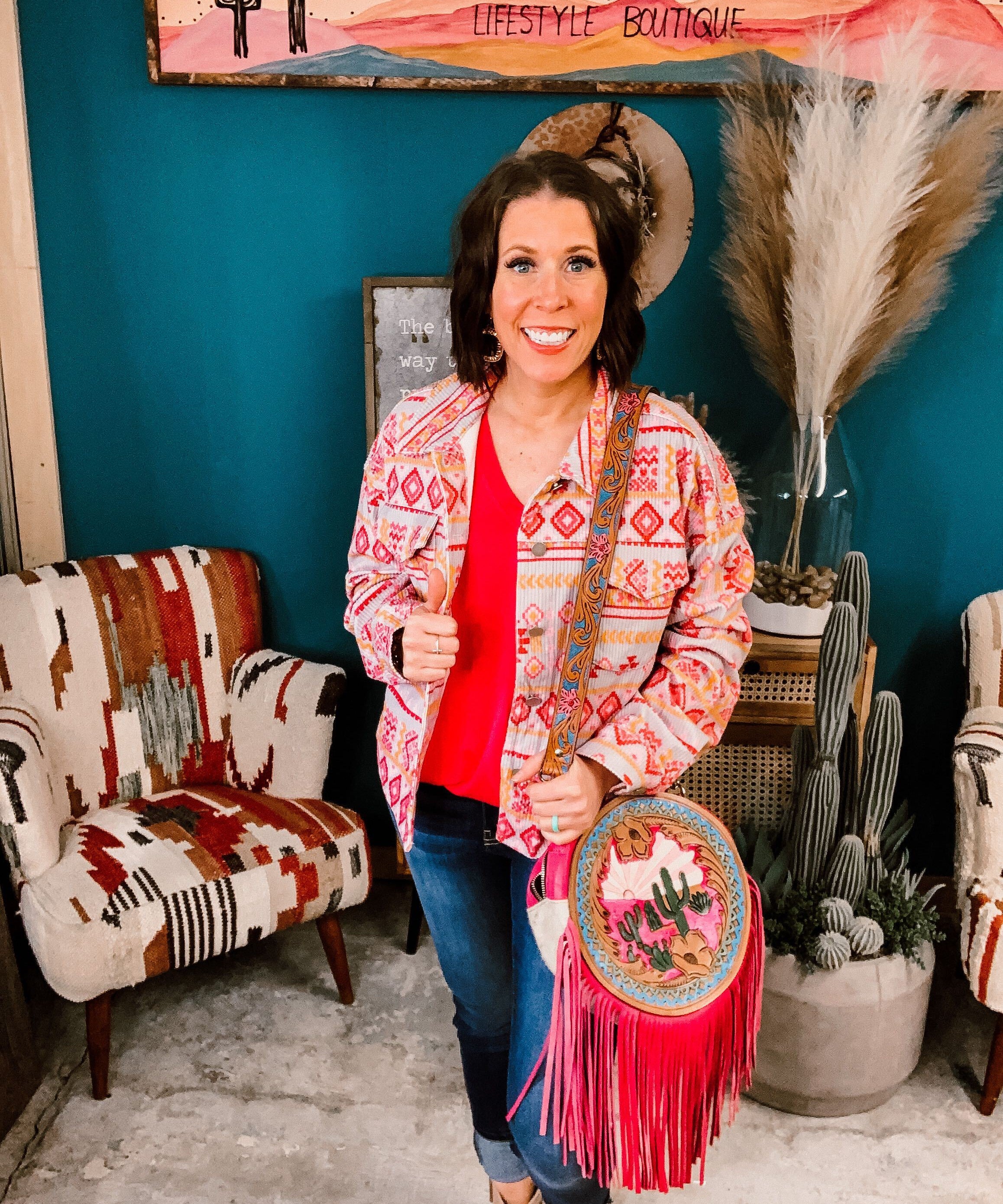 Heather Grey + Pink Mix Abstract Crop Jacket