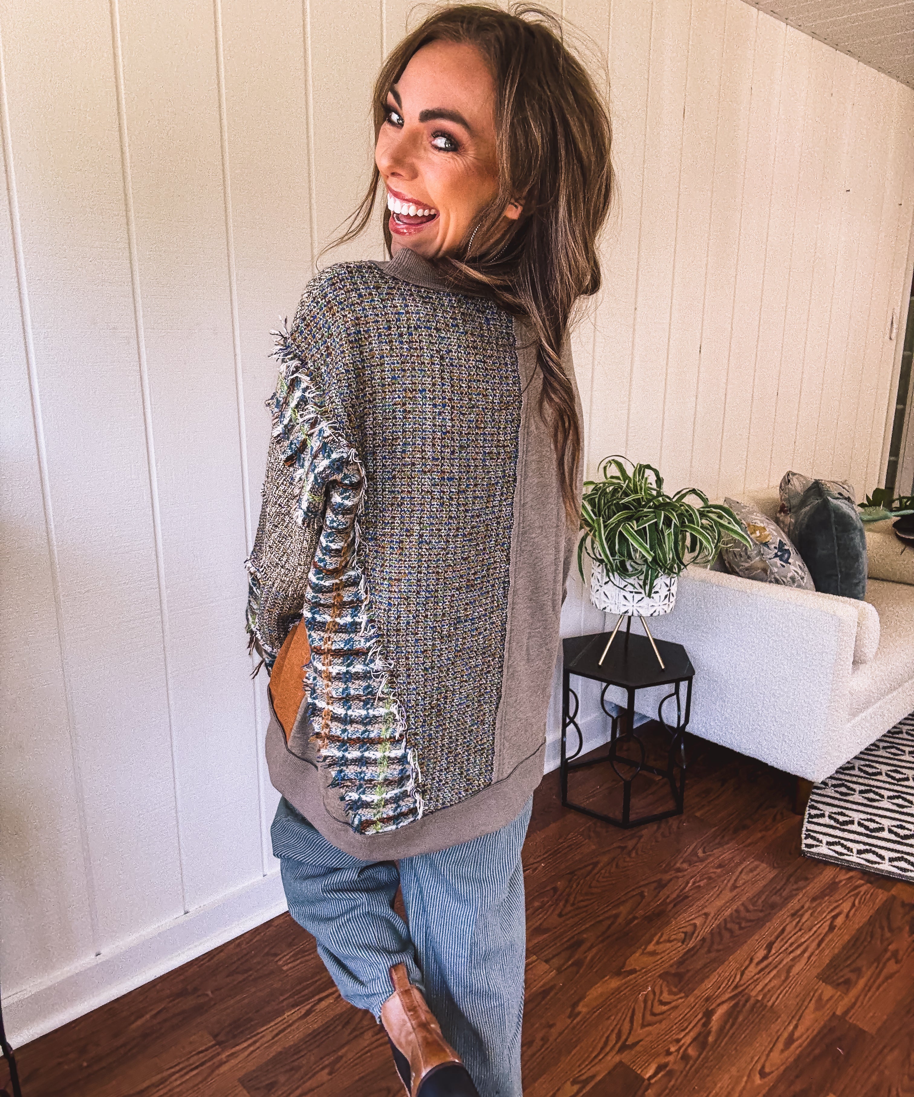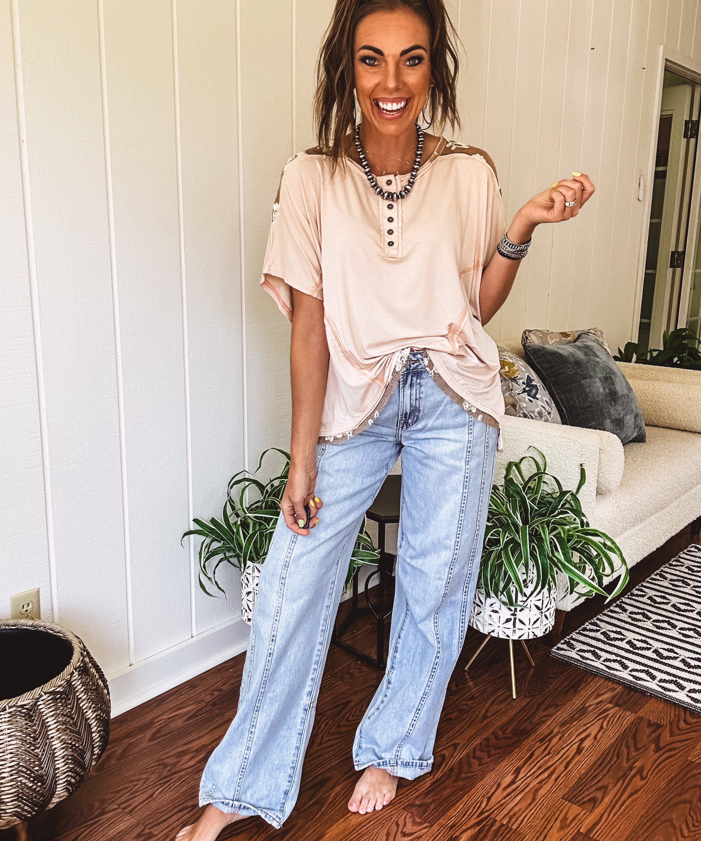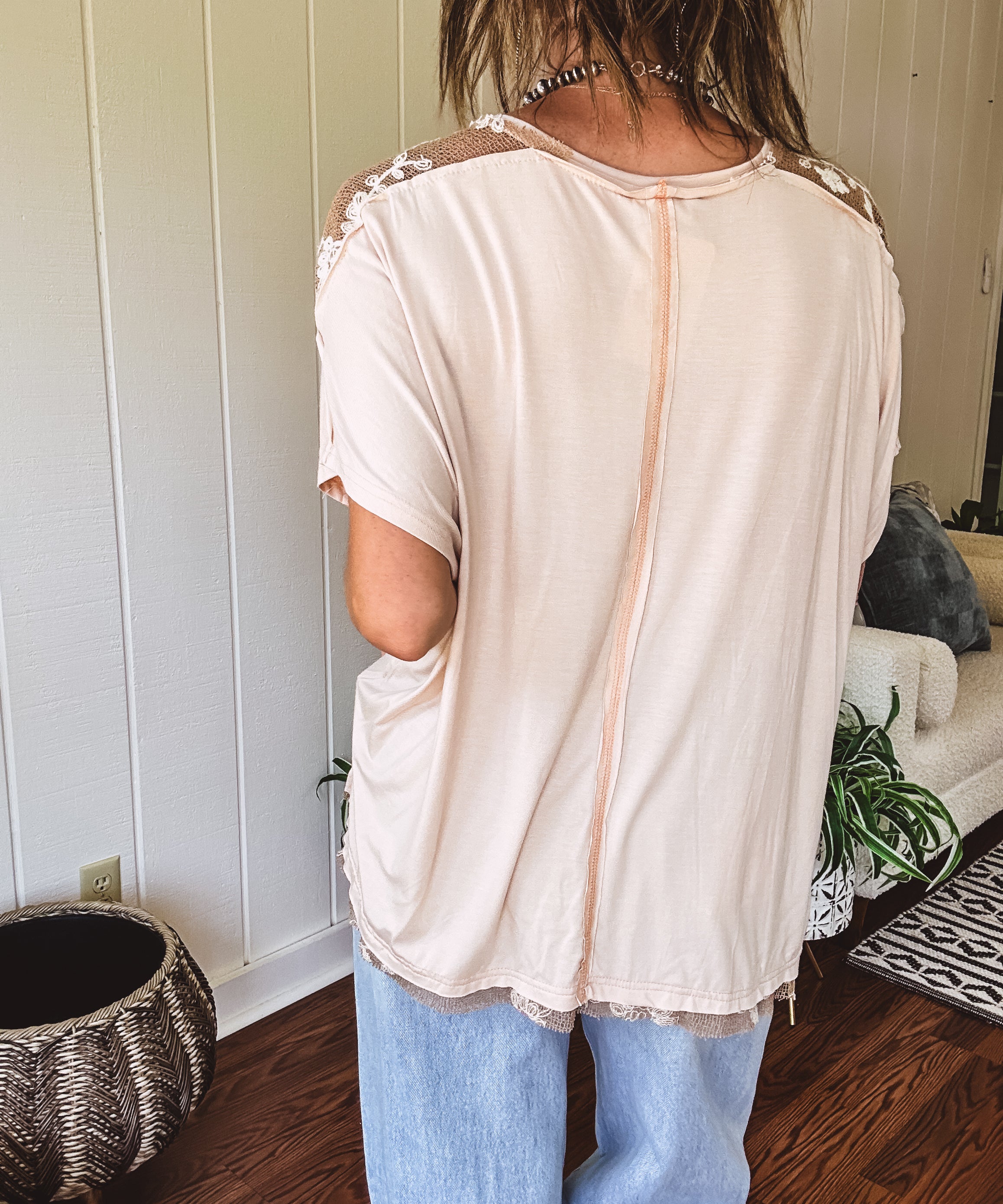Almond Jersey Dolman with Crochet Shoulder Detail