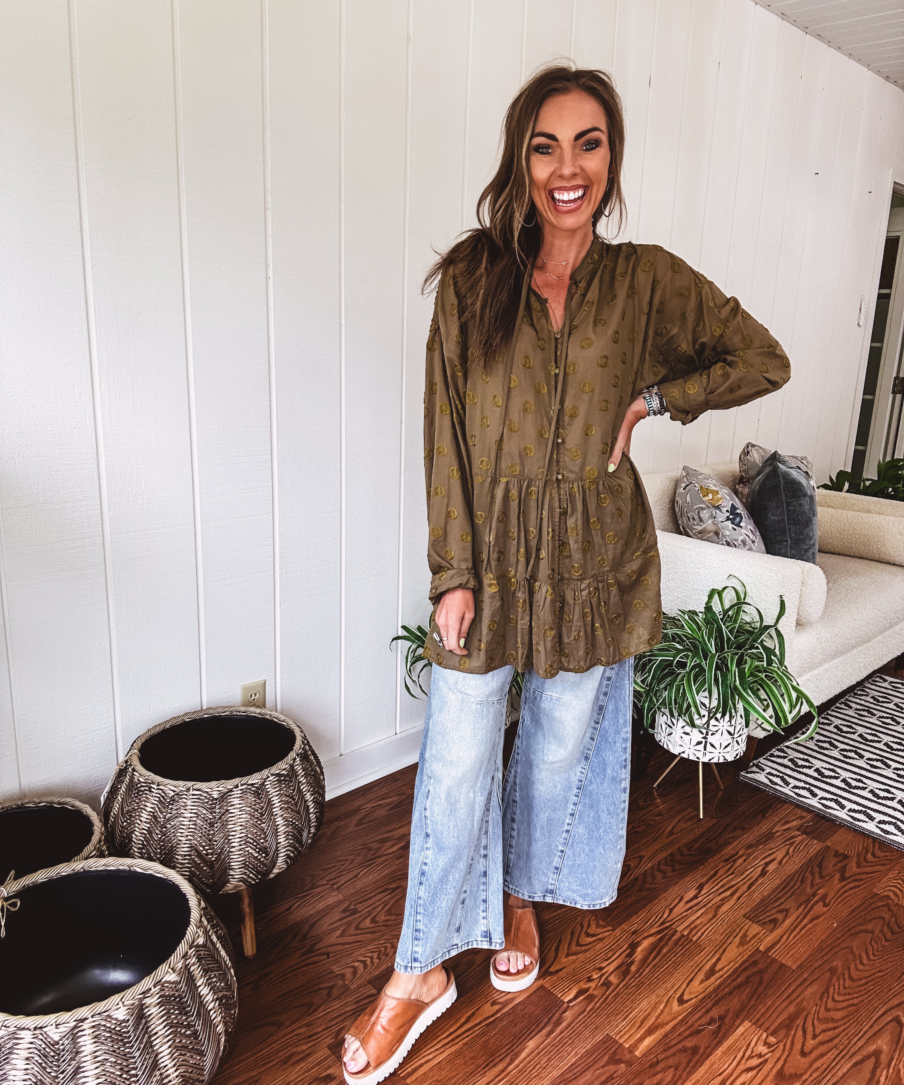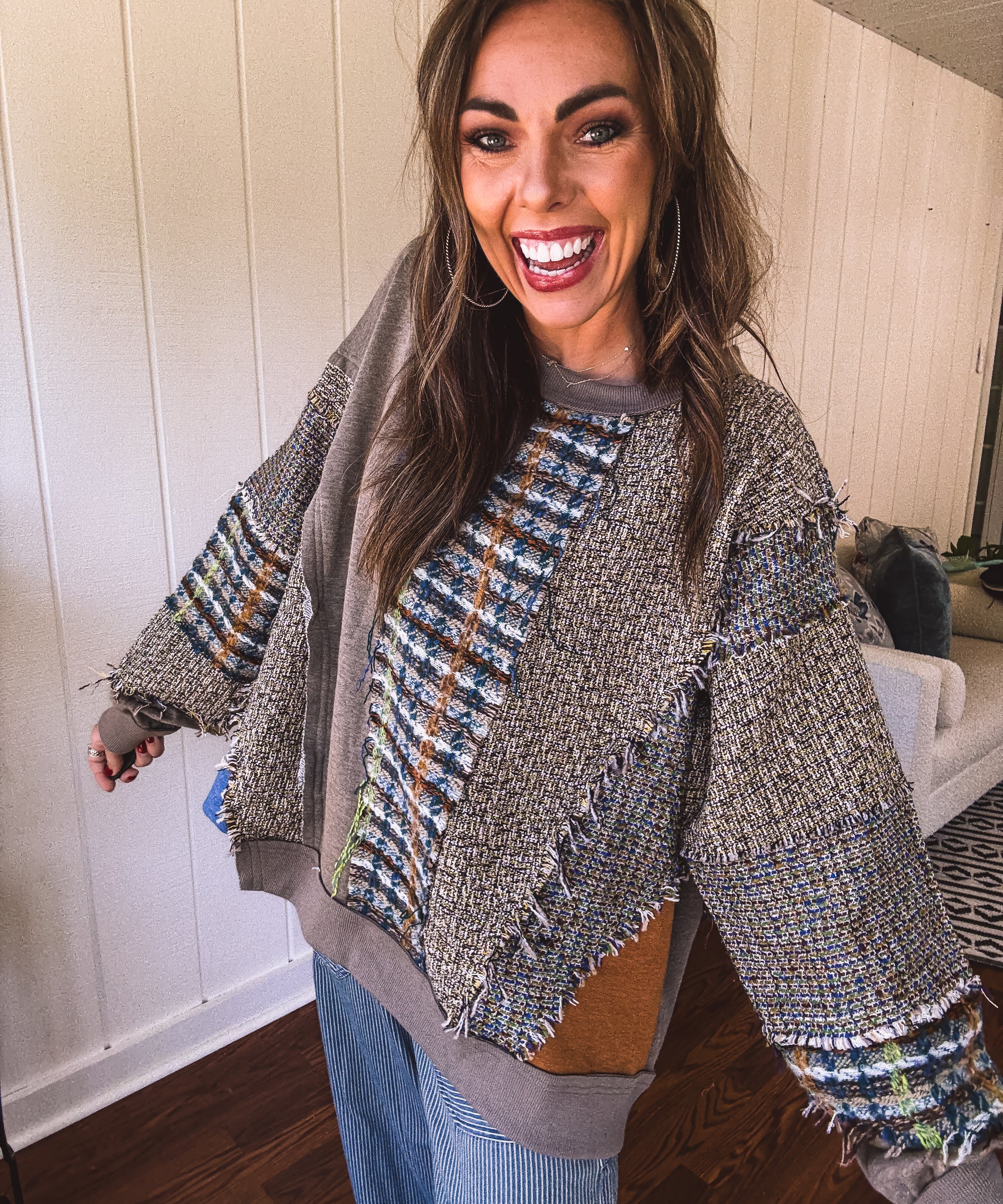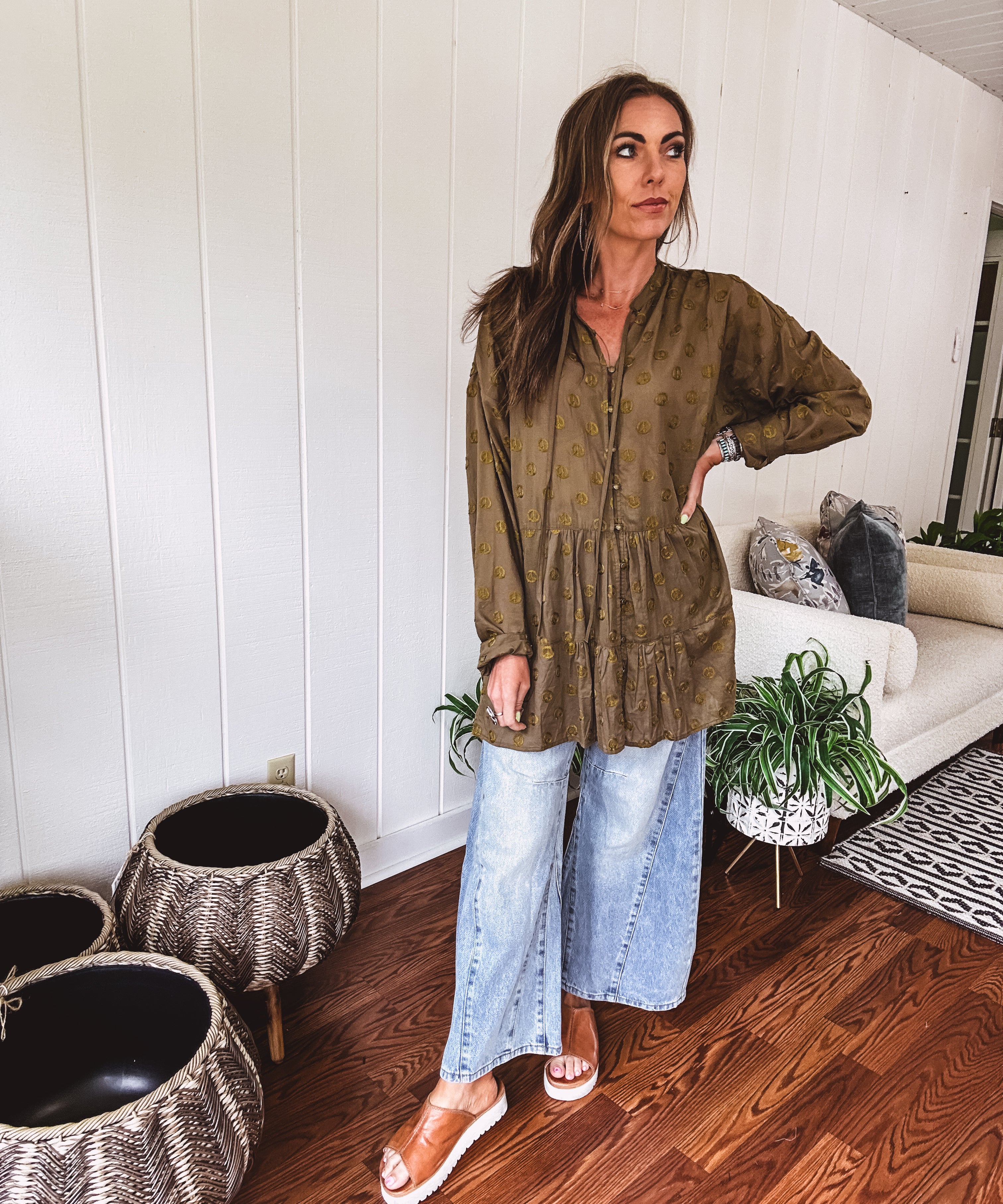 Almond Jersey Dolman with Crochet Shoulder Detail