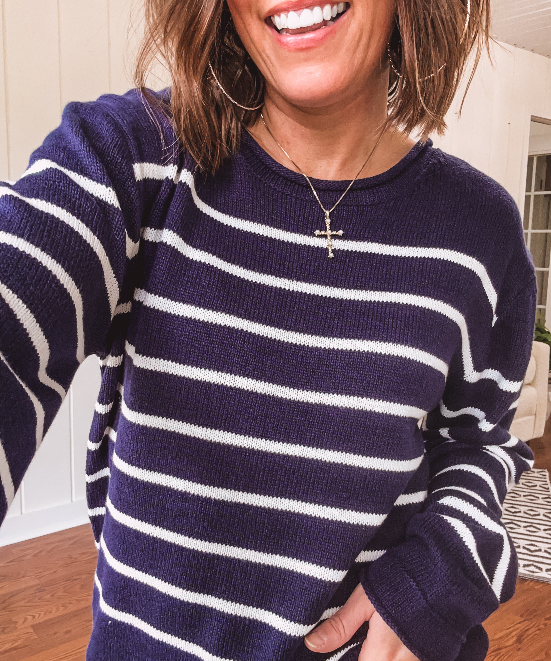 Mocha Stripe Mock Neck Sleeveless Sweater