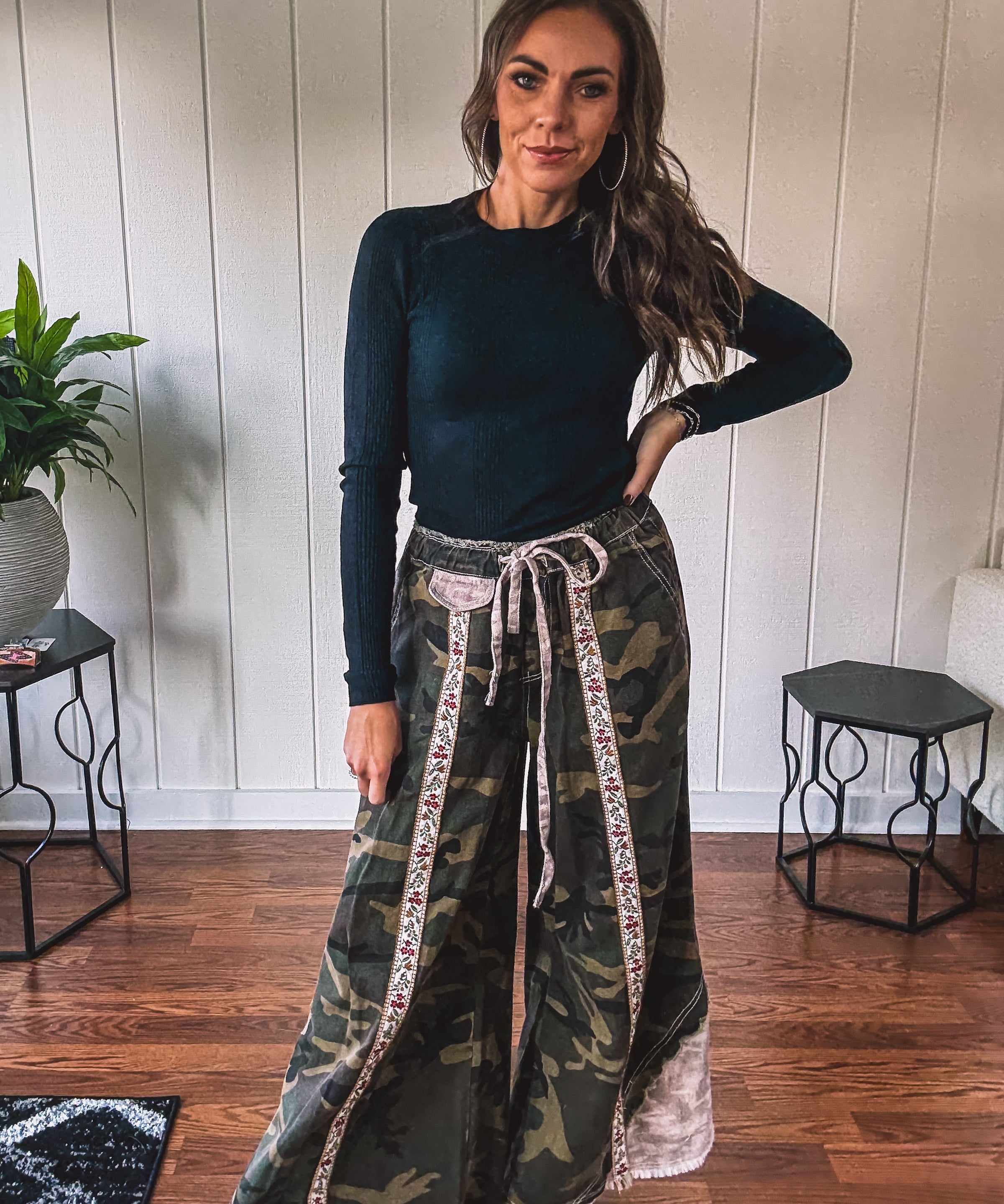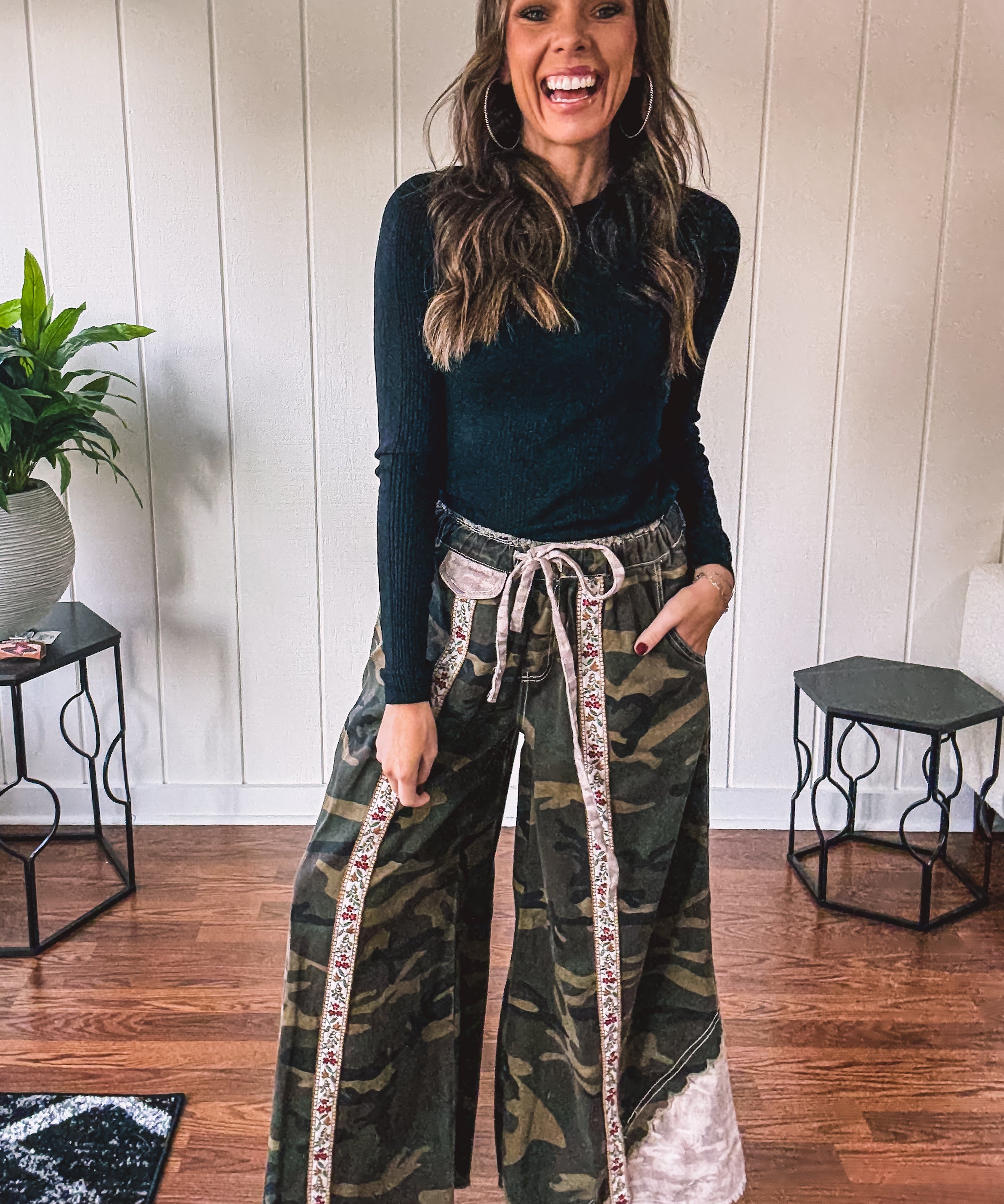 Dark Olive + Plum Mottled Balloon Bottom Pant