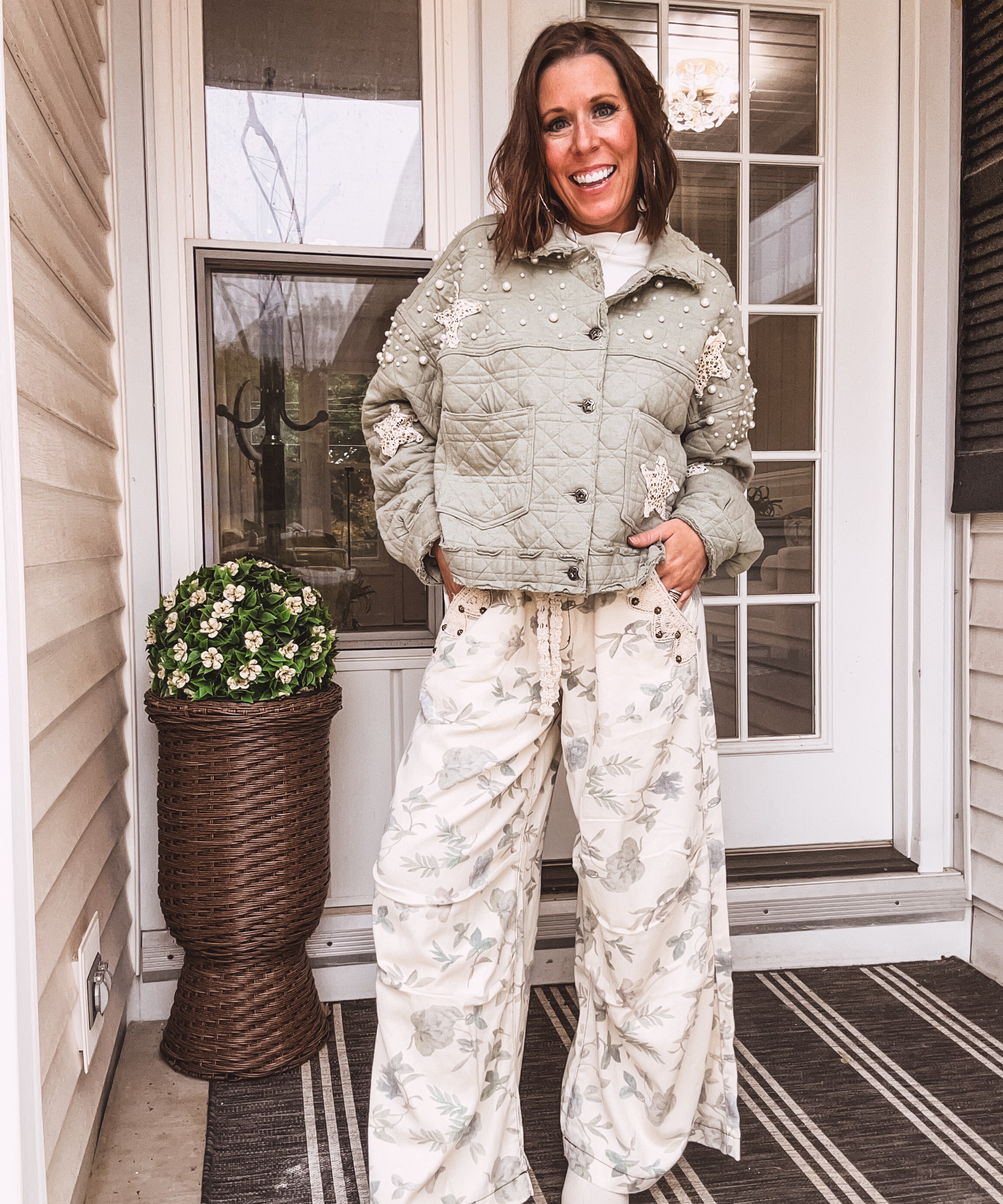 Faded Olive Mineral Wash Wide Leg Utility Pant