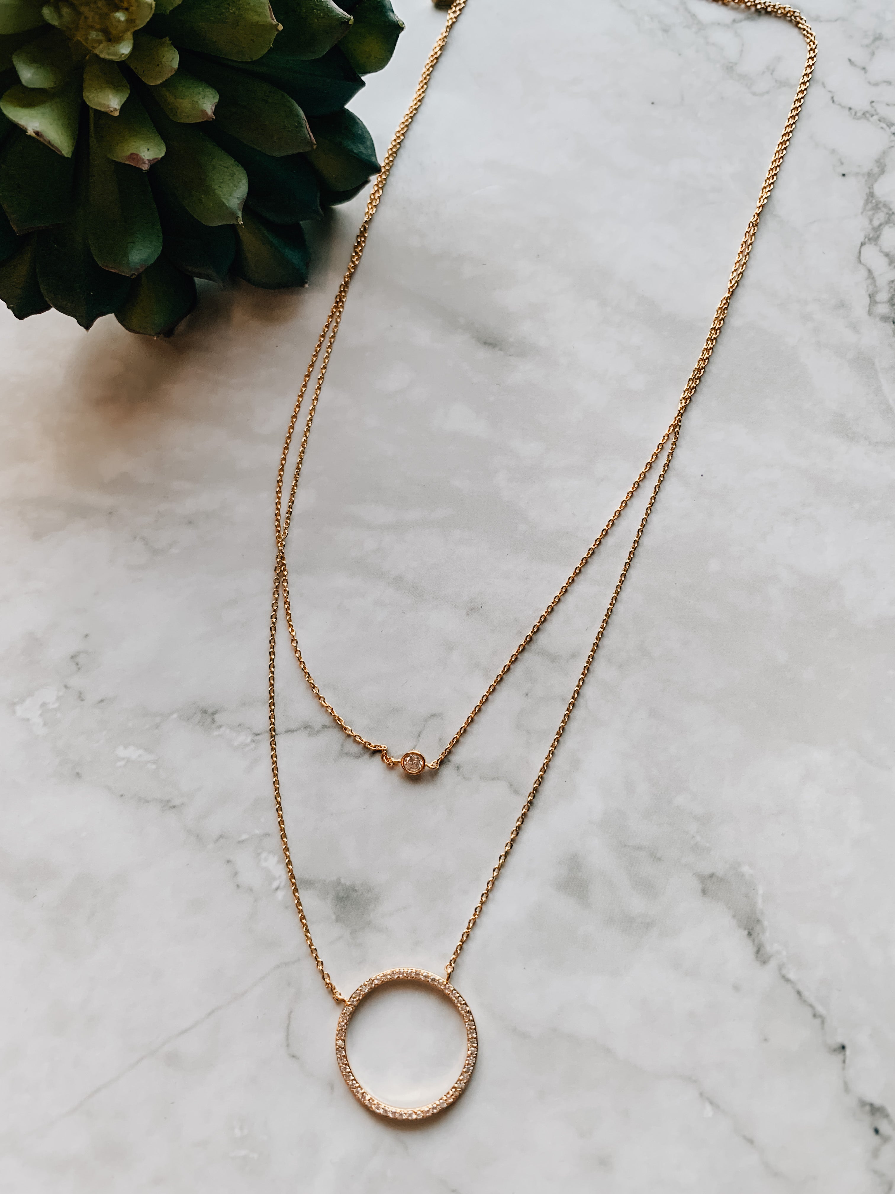 14K Gold Dipped Double Circle Necklace