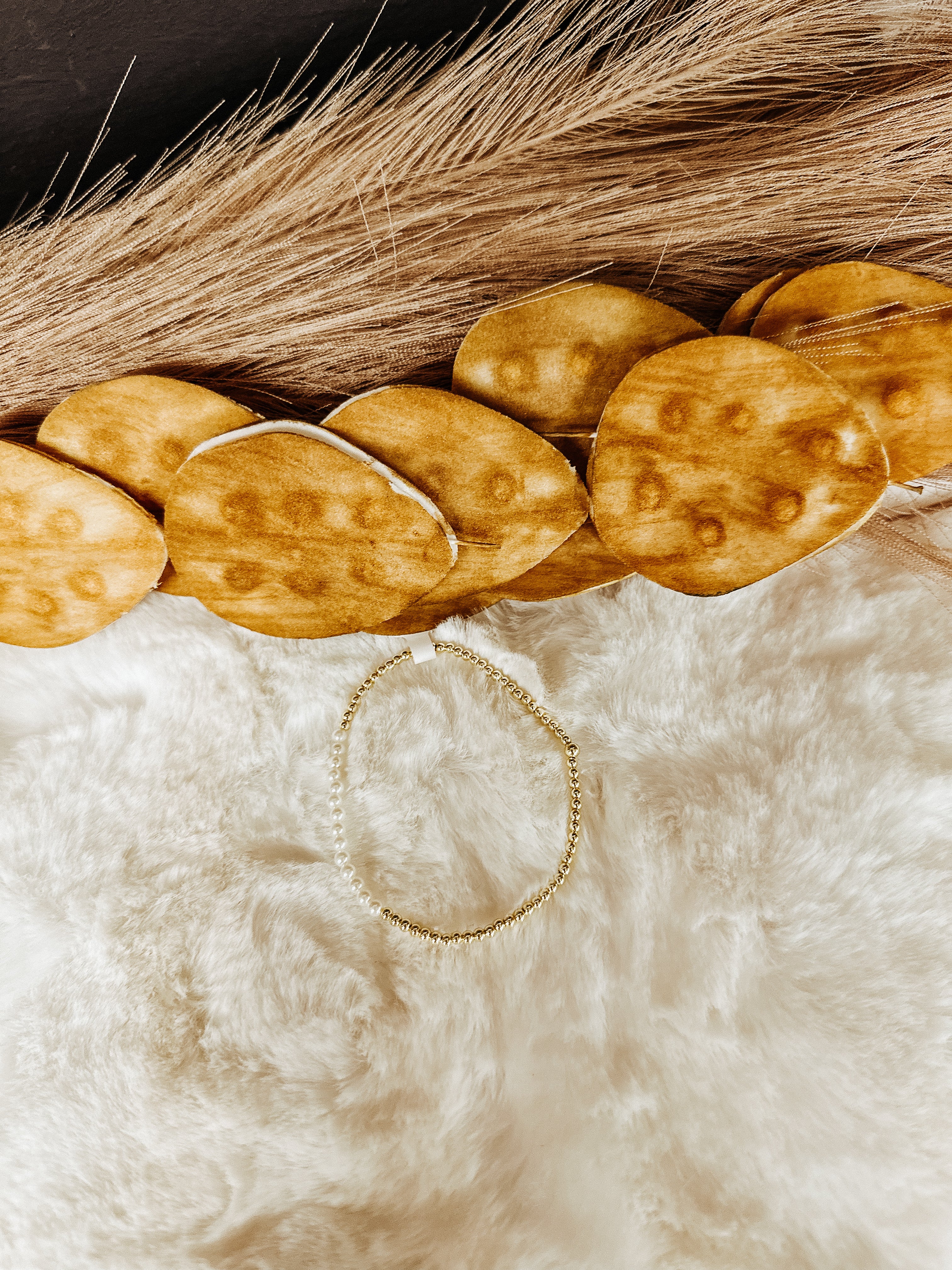 Transform your bracelet game with this stunning mix of mini gold beads and pearl beads. It's a cute and chic addition to your collection.