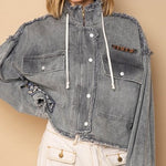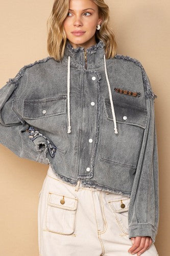 Ash Black Zippered Fray Hem Jacket