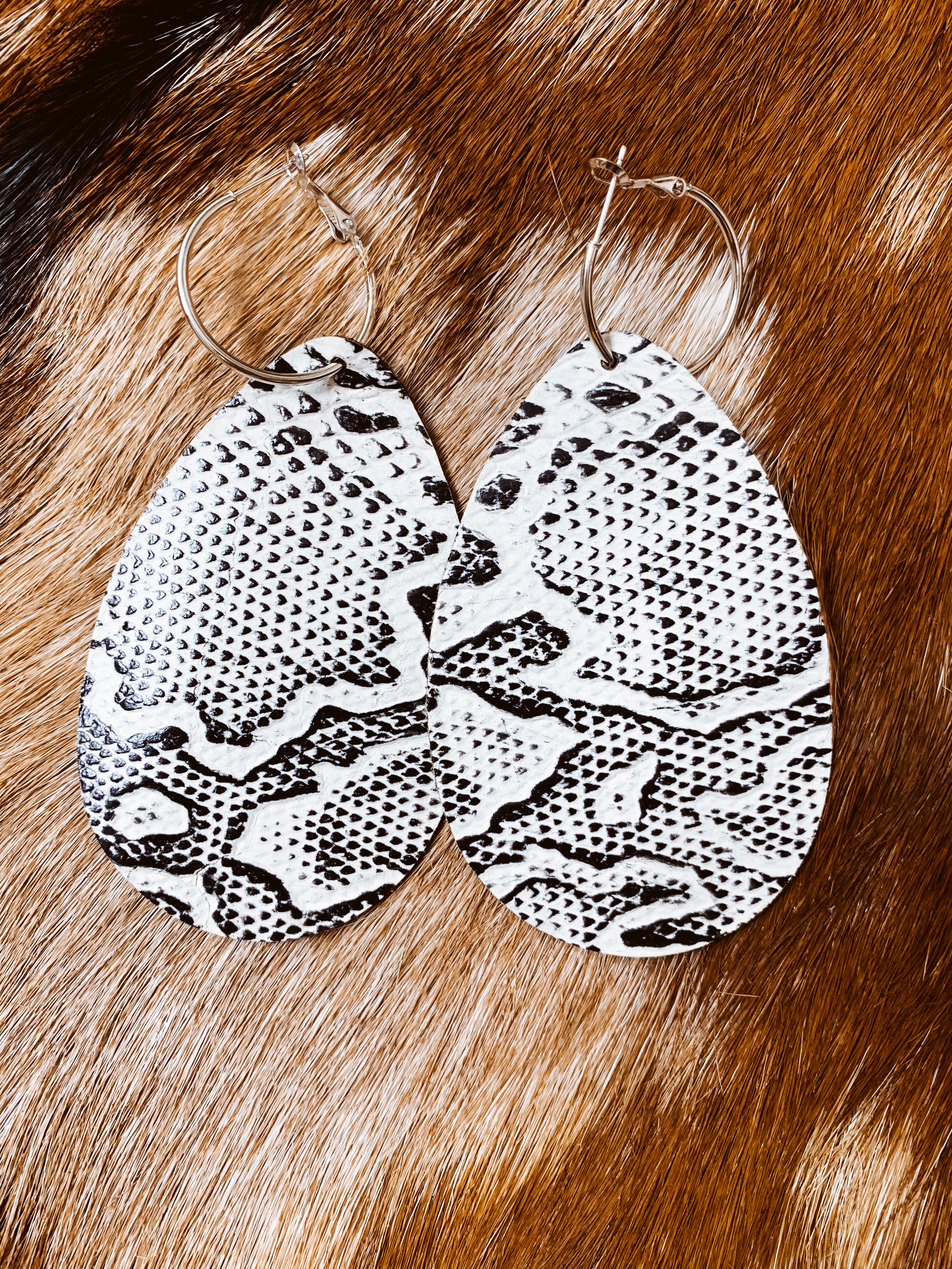 B&W Snake Leather Earring