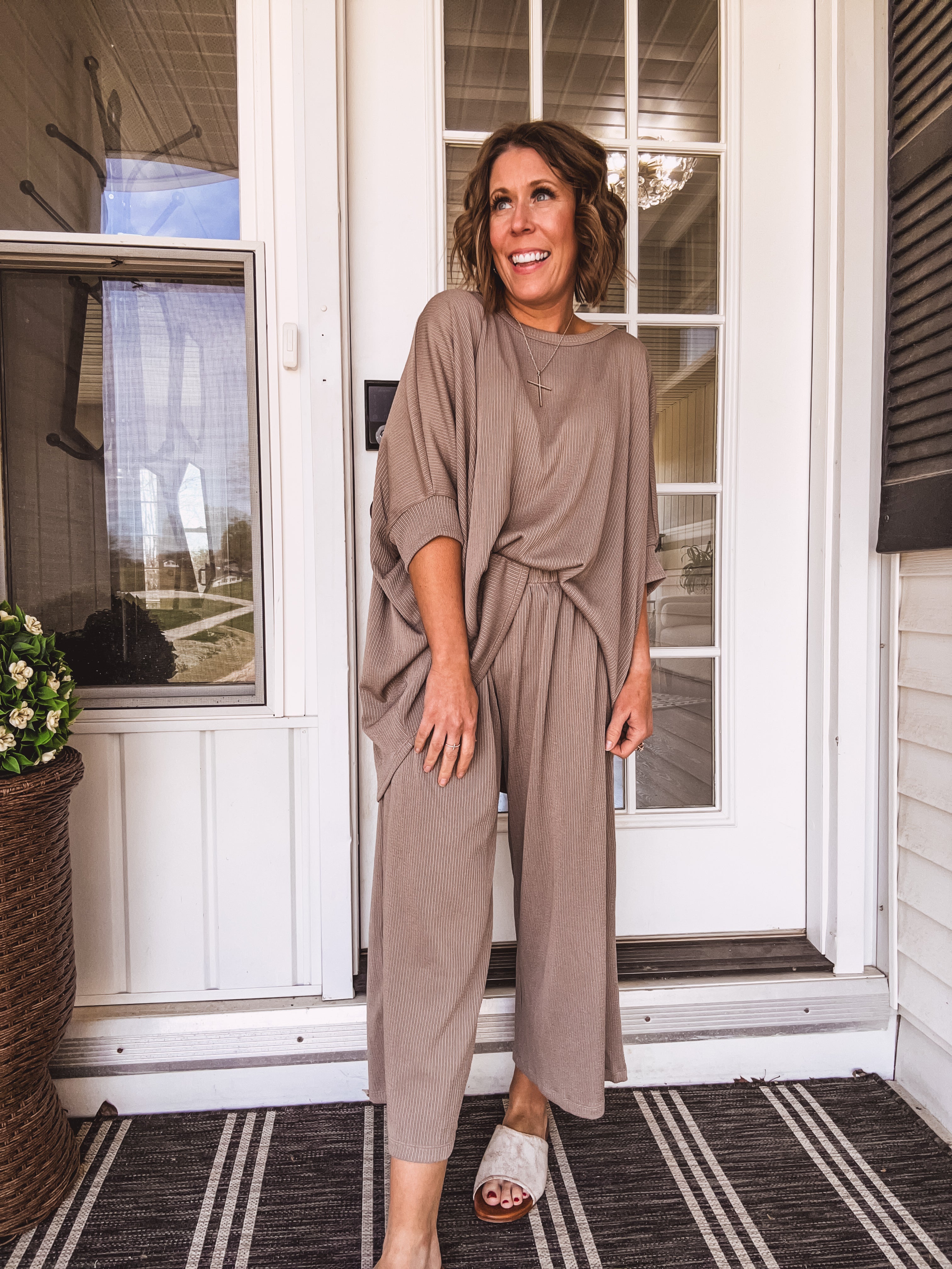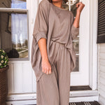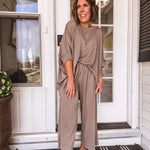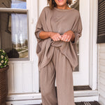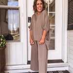 Step out in comfort and style in this chic and flowy Bali Travel Set. The cropped, wide leg design and elastic waist of the pants make them perfect for all your summer events and the round neck and dolman sleeves of the top combined with the ribbed texture of the fabric not only feels delicious, but also looks great on any figure. Whether you're lounging poolside or enjoying a night on the town, this will be your go-to!