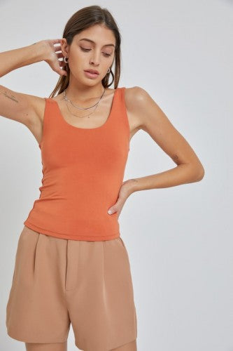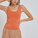 Basic Double Lined Scoop Neck Fitted Tank