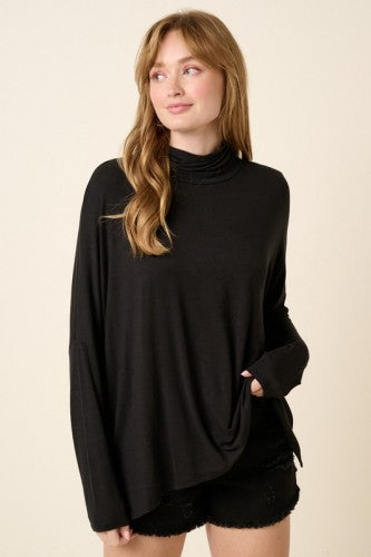 Black Bamboo Mock Neck Oversized L/S