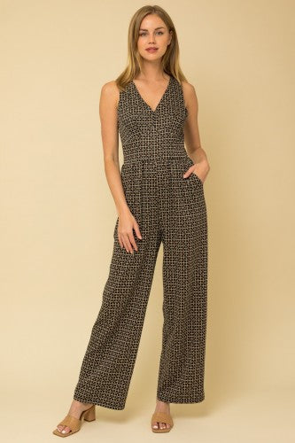 Black & Brown Geo Sleeveless Jumpsuit