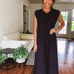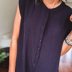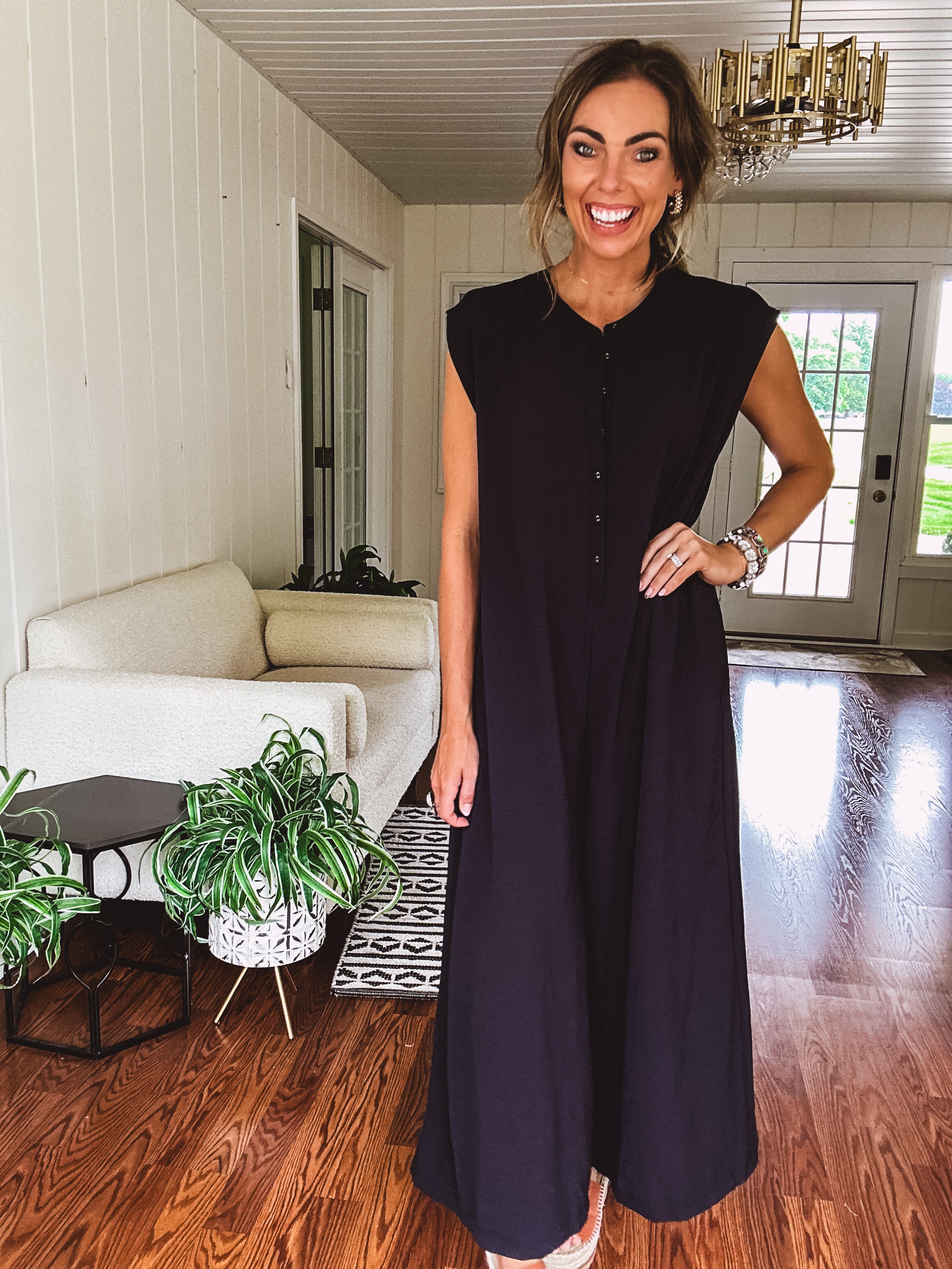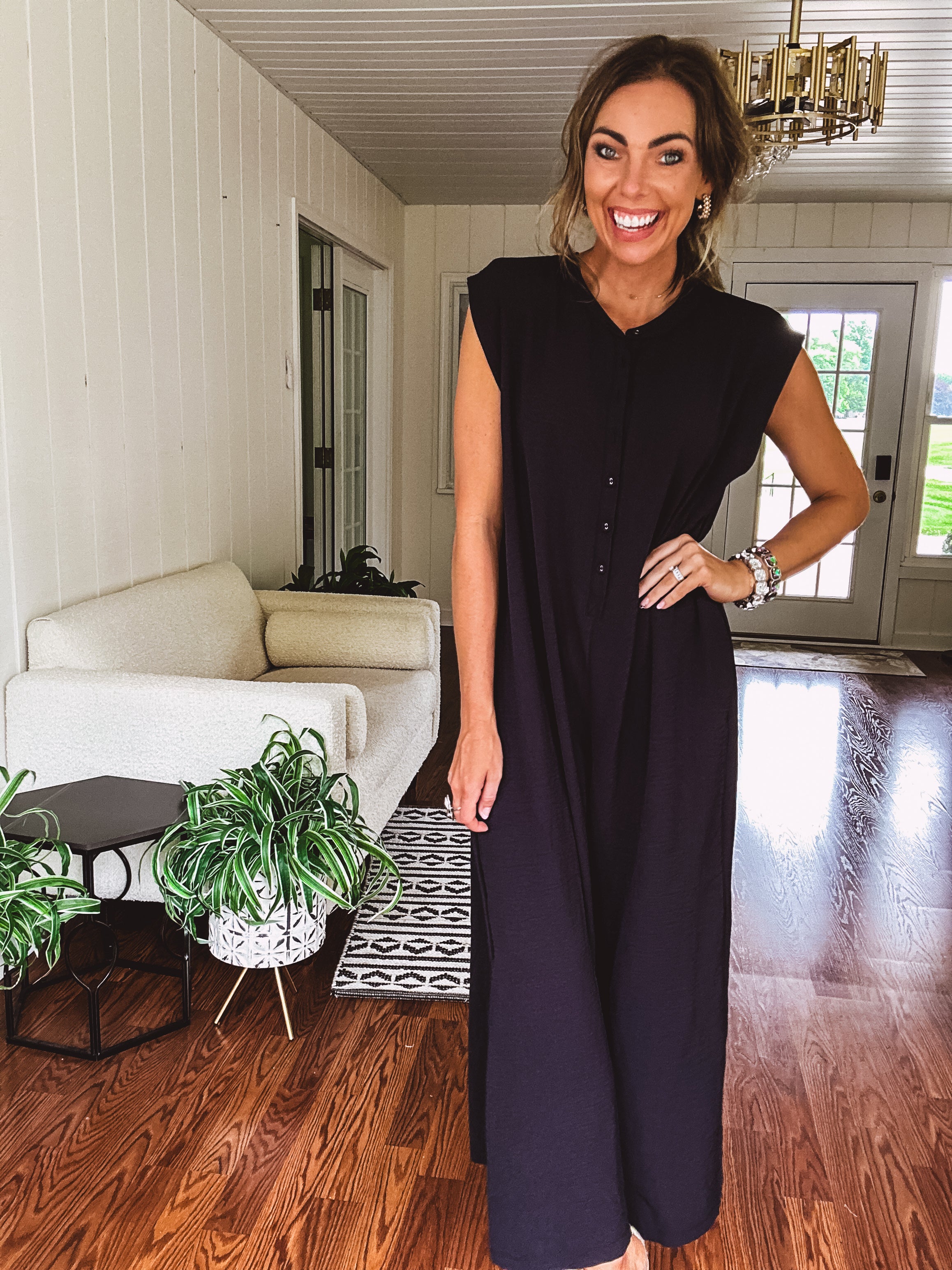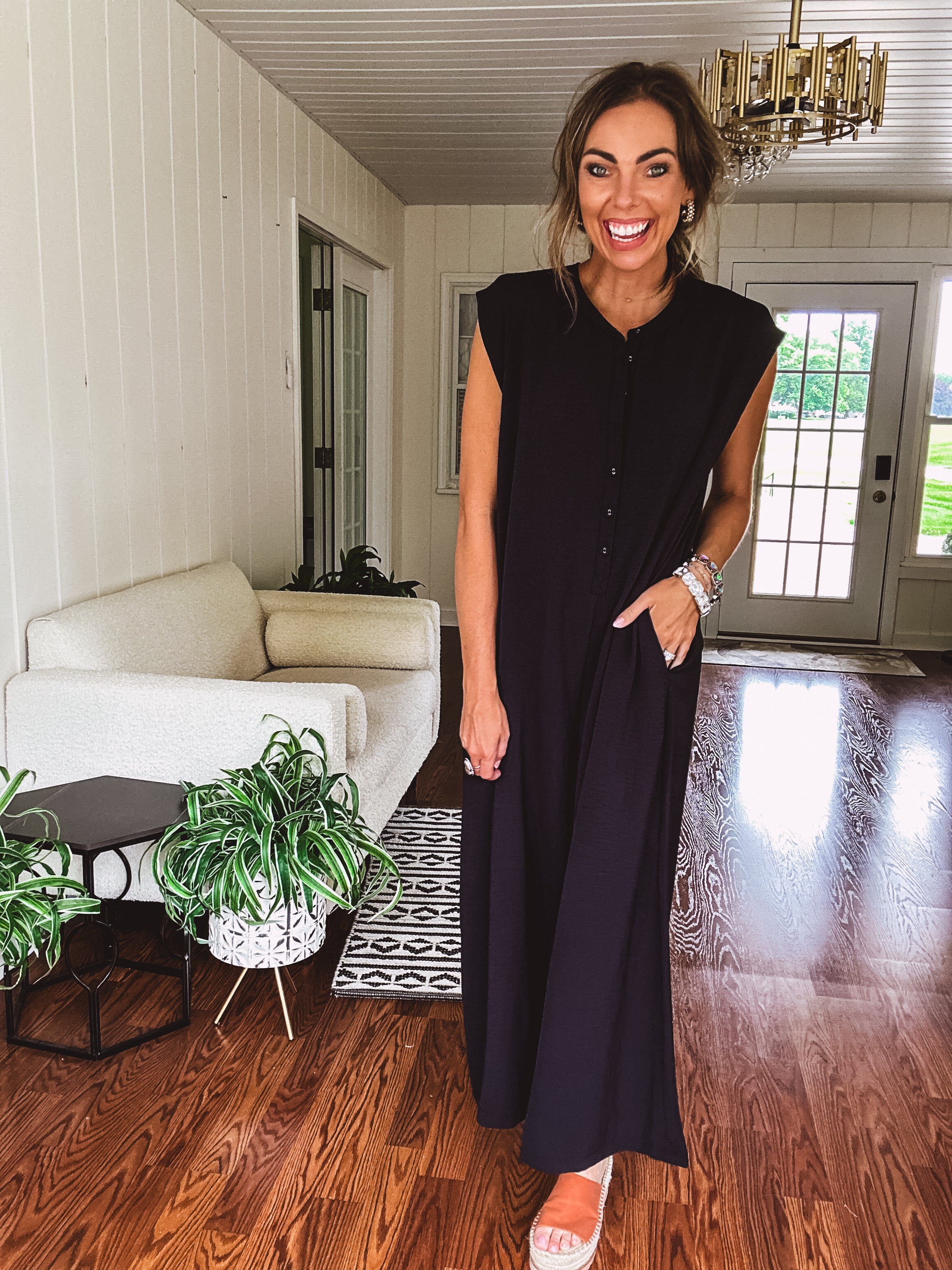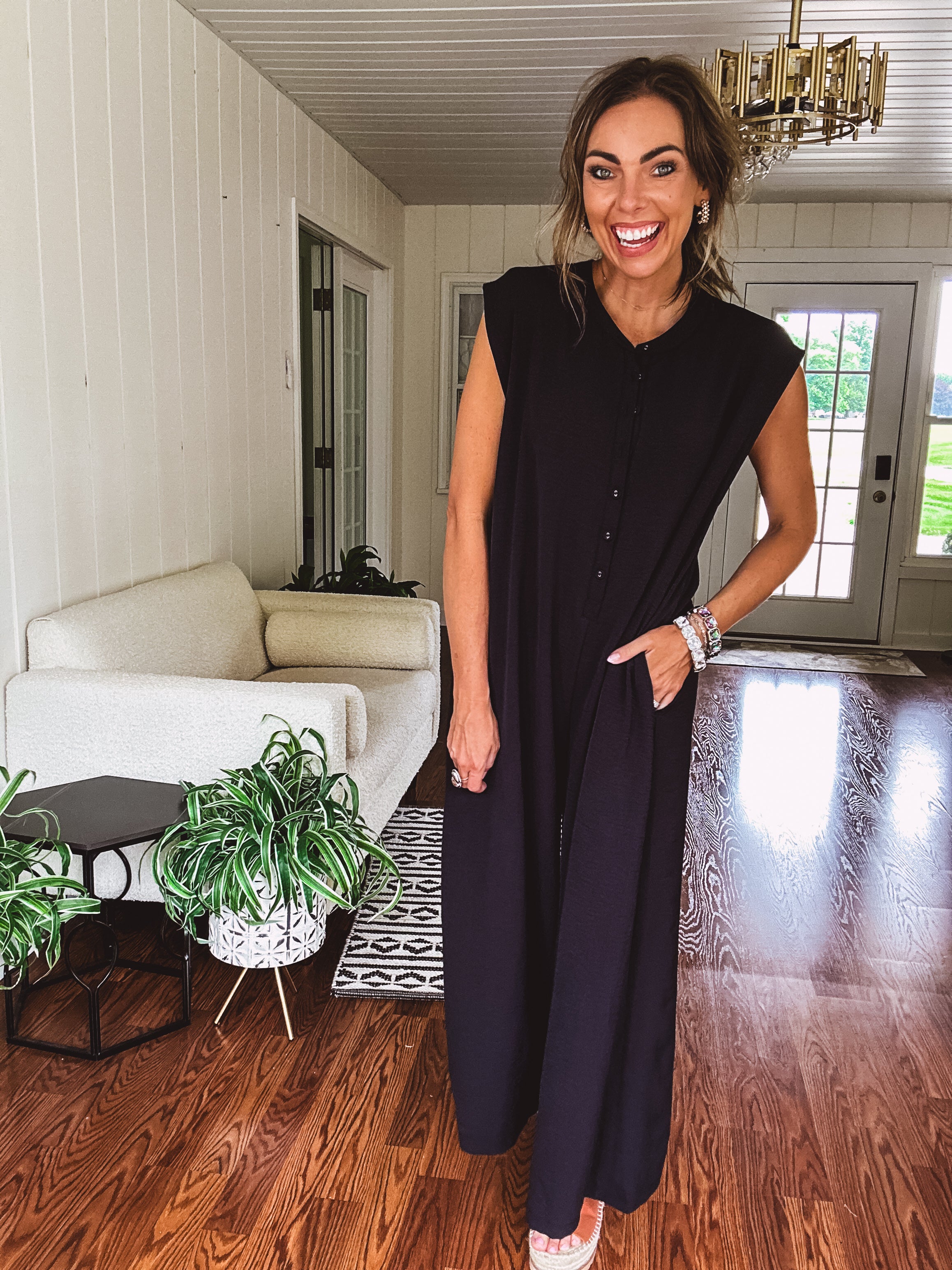 A chic and funky option for trendsetting fashionistas! This sleeveless, sleek and silky jumpsuit features a button front, wide leg design and - it has pockets! Add your favorite jewelry, a belt and sandals and create a look destined for greatness and guaranteed to get all the looks!