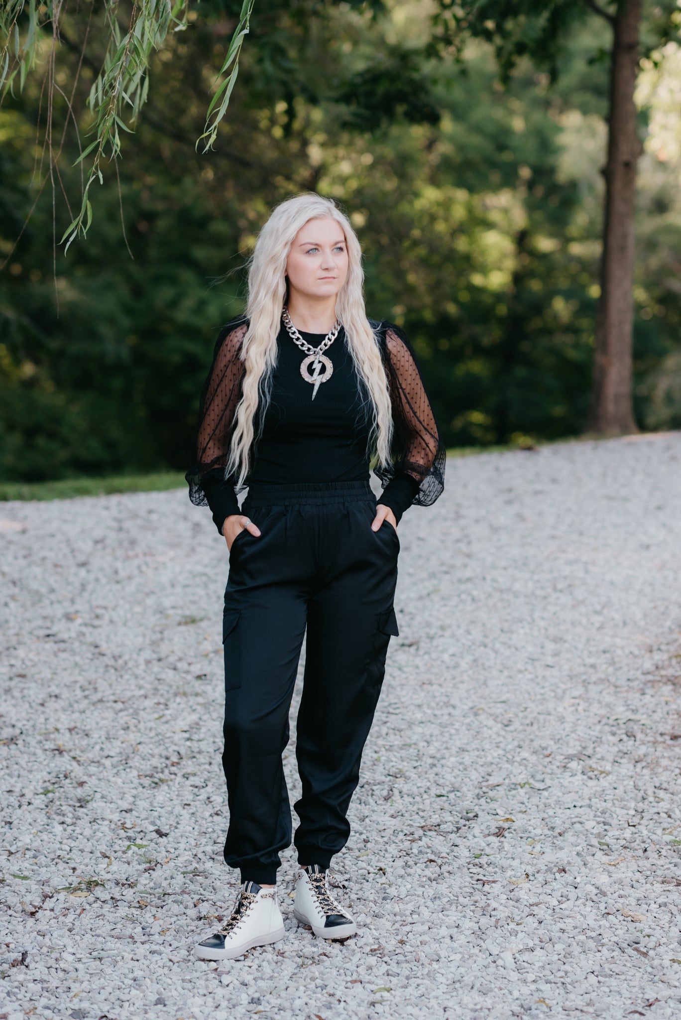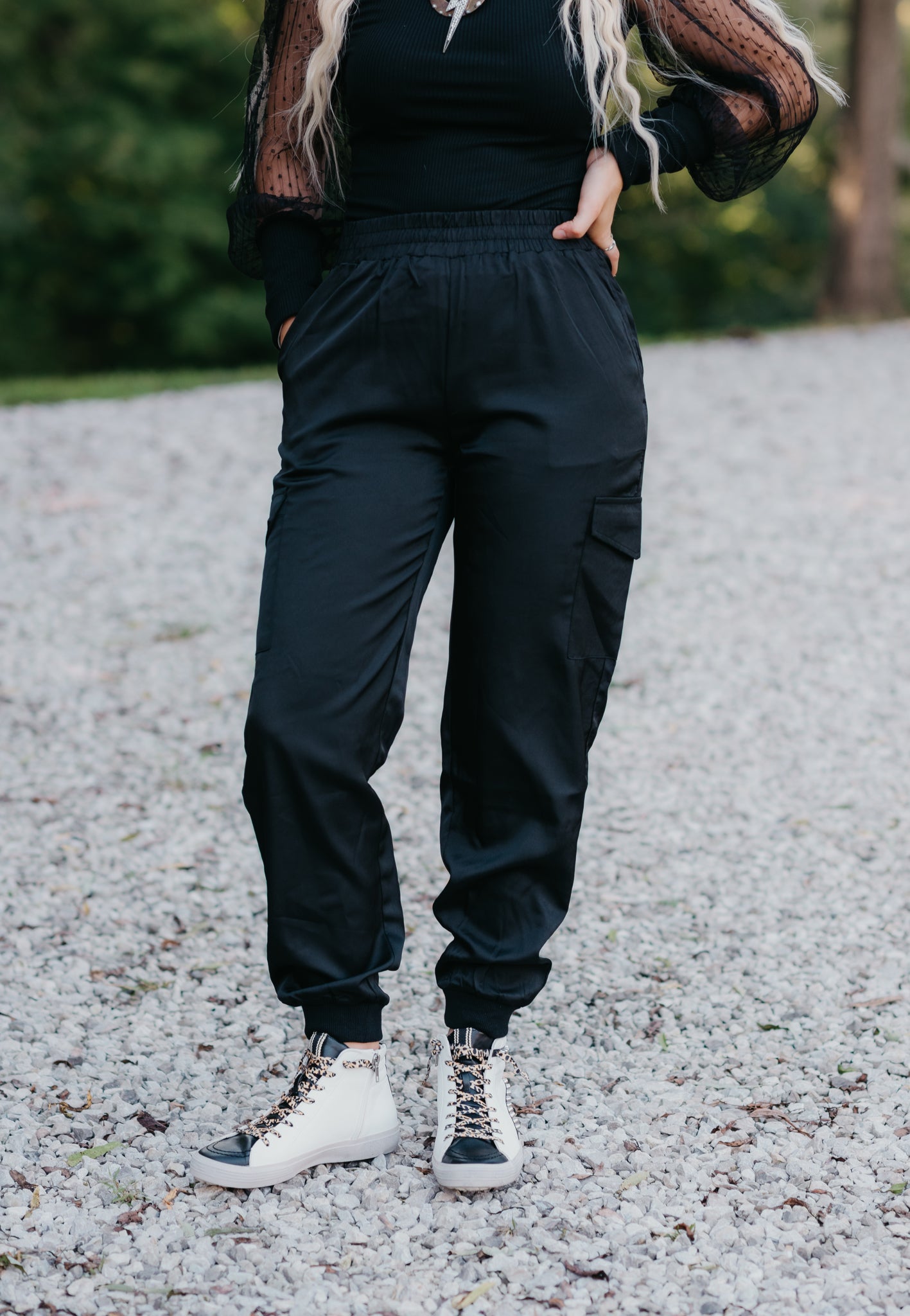 Black Cargo Jogger Pant with Elastic Waistband + Side Pockets