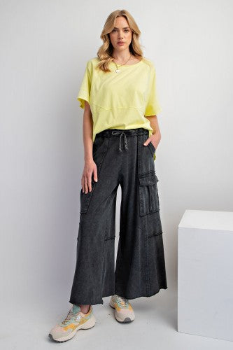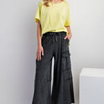 Black Mineral Wash Wide Leg Utility Pant