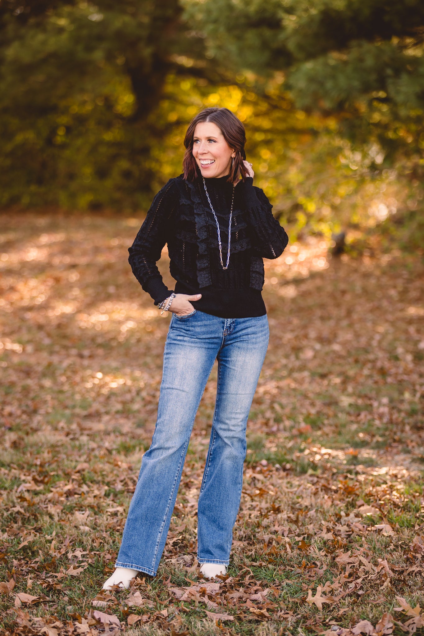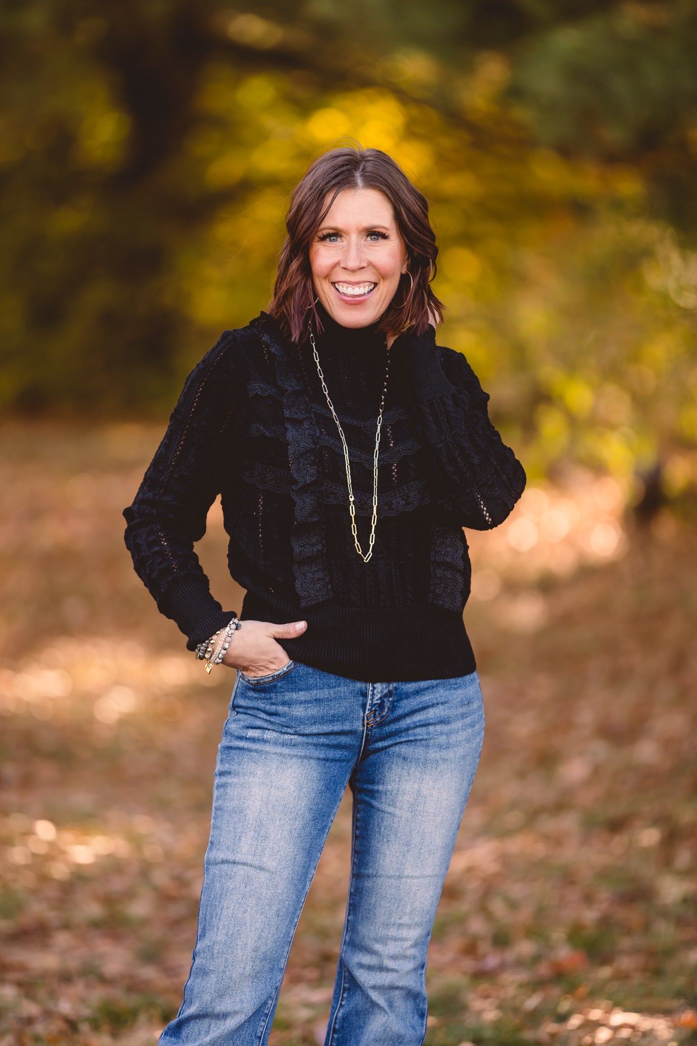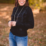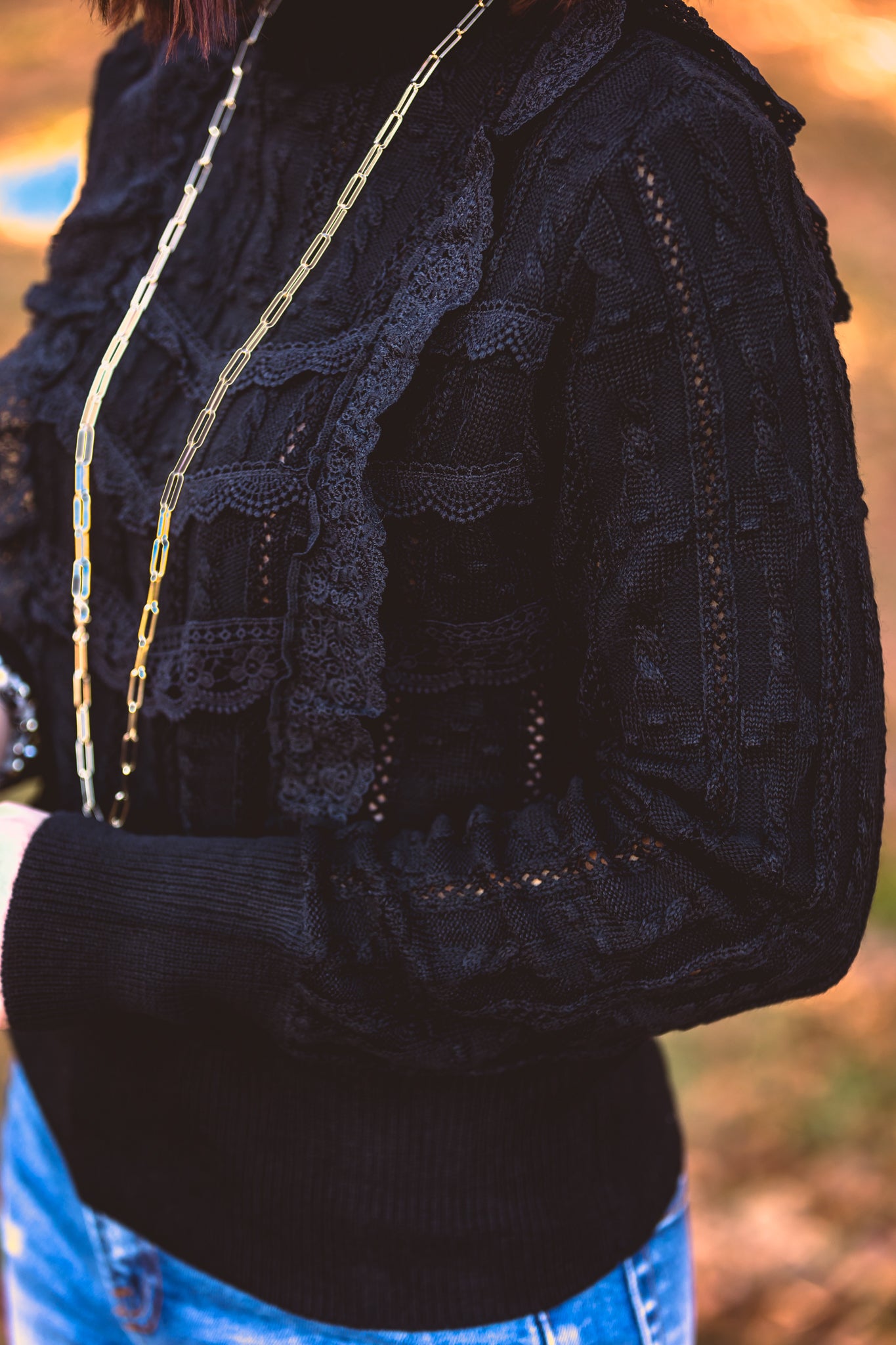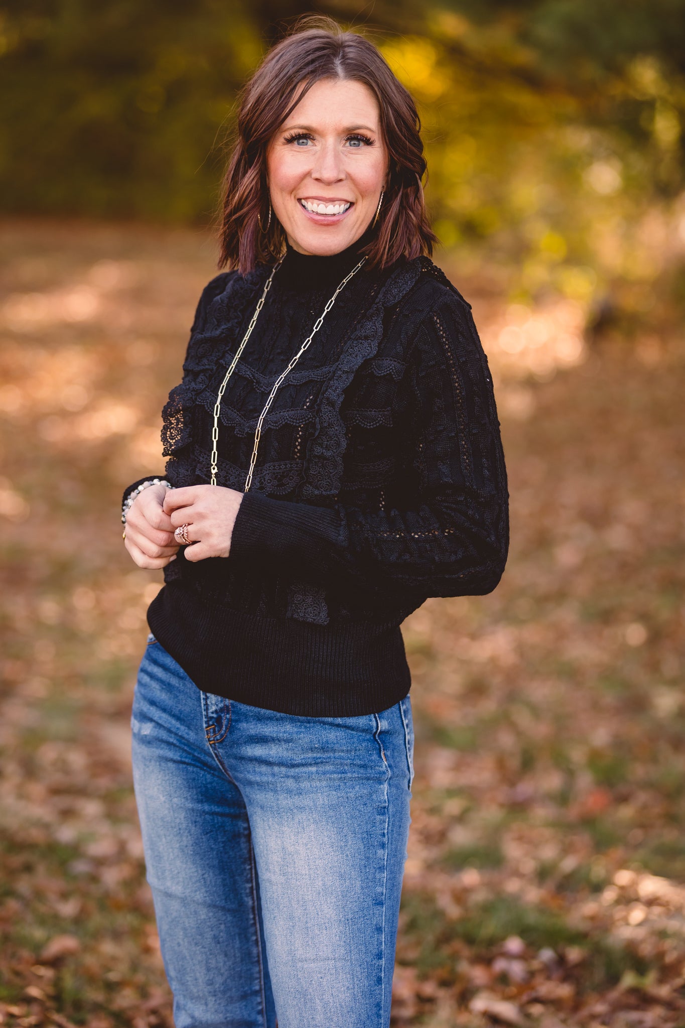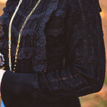 Black Mock Neck Lace Blouse
