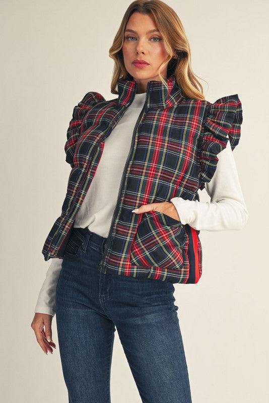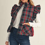 Black Plaid Vest with Flutter Cap Sleeve