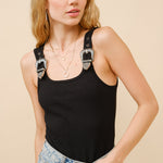 Black Ribbed Western Buckle Bodysuit