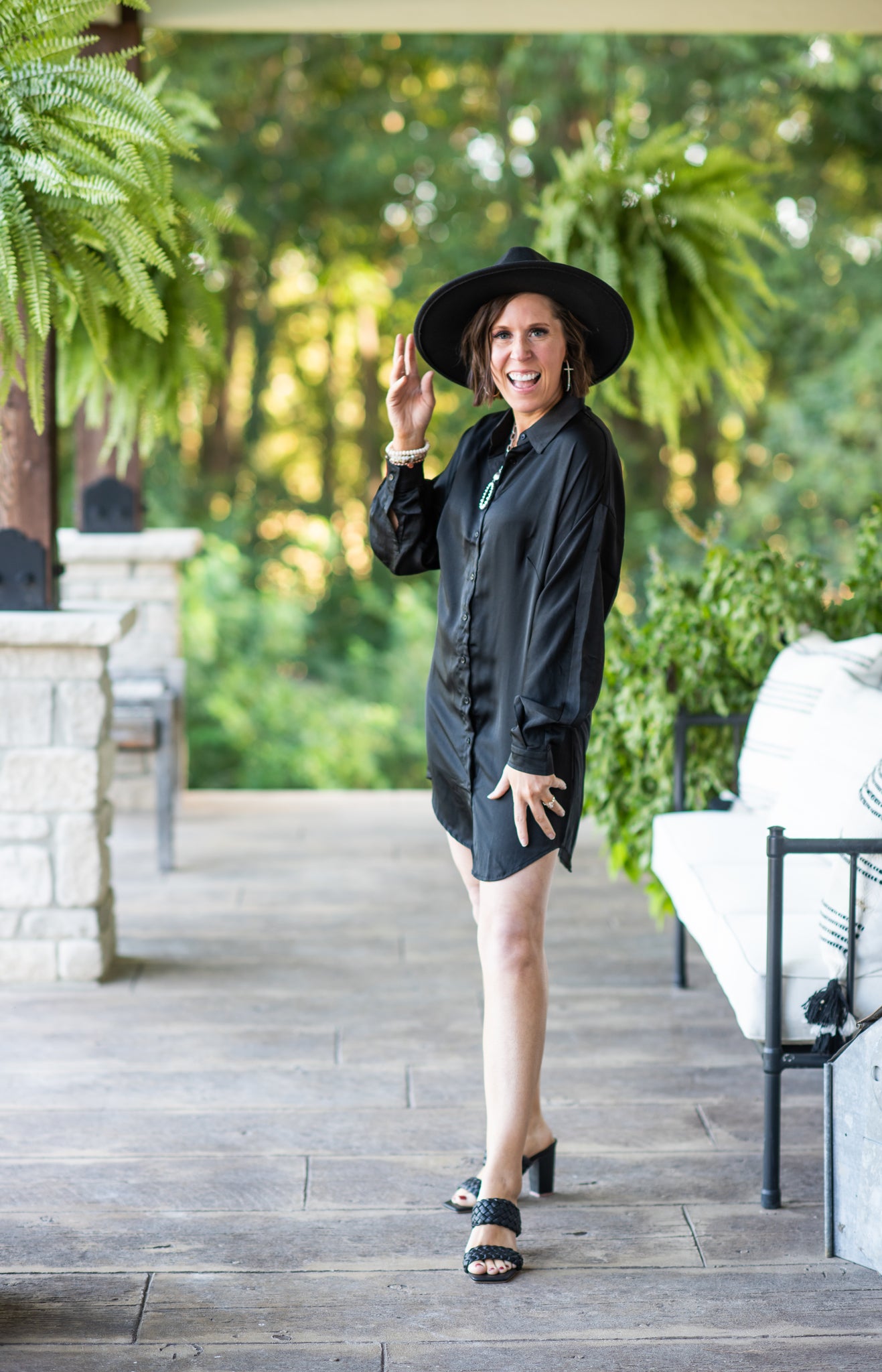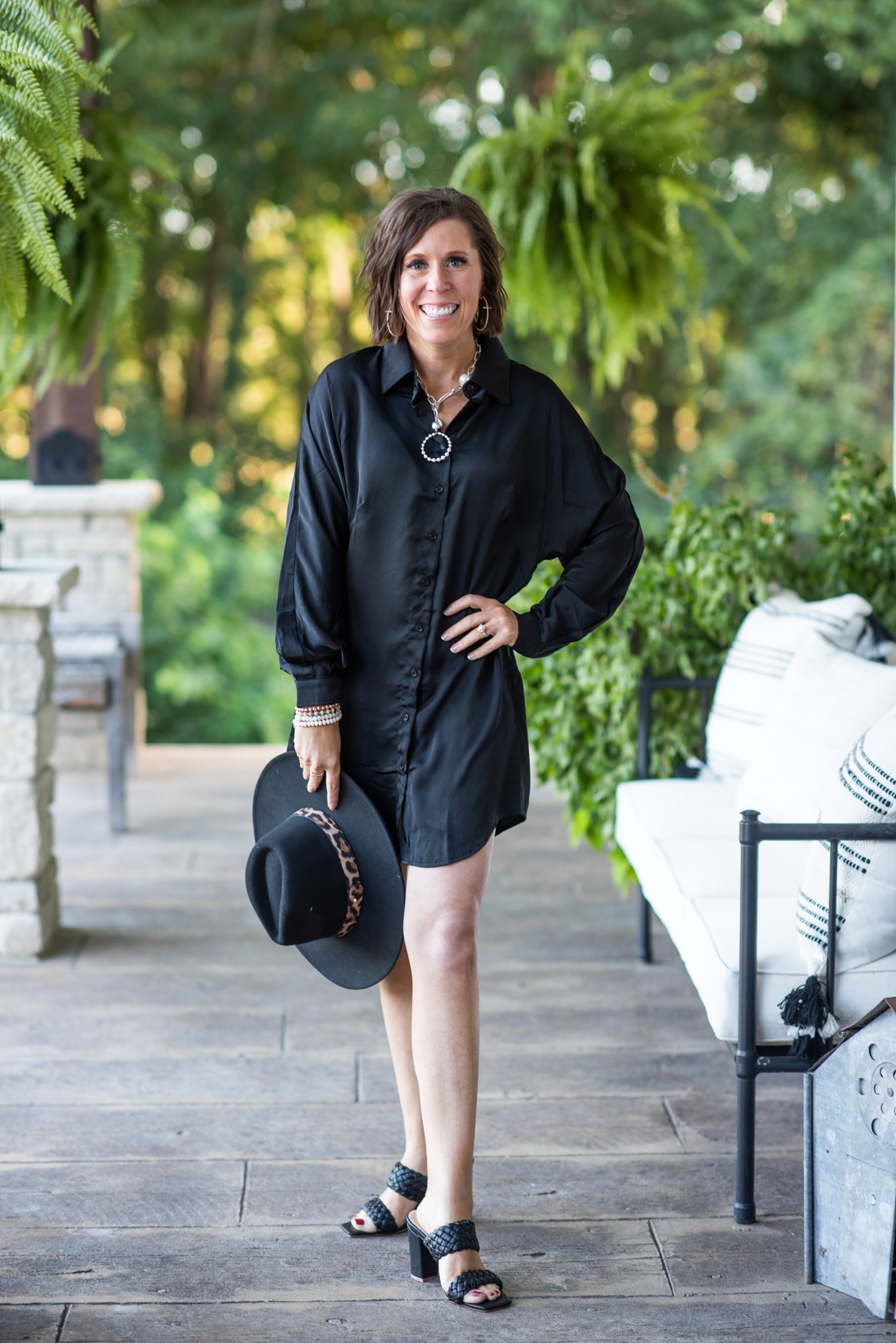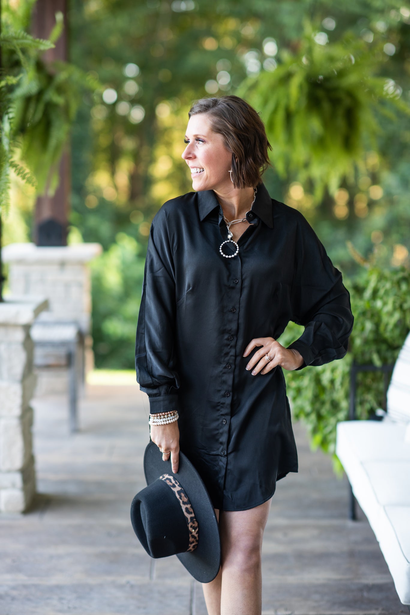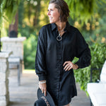 Black Satin Button Down Tunic Dress