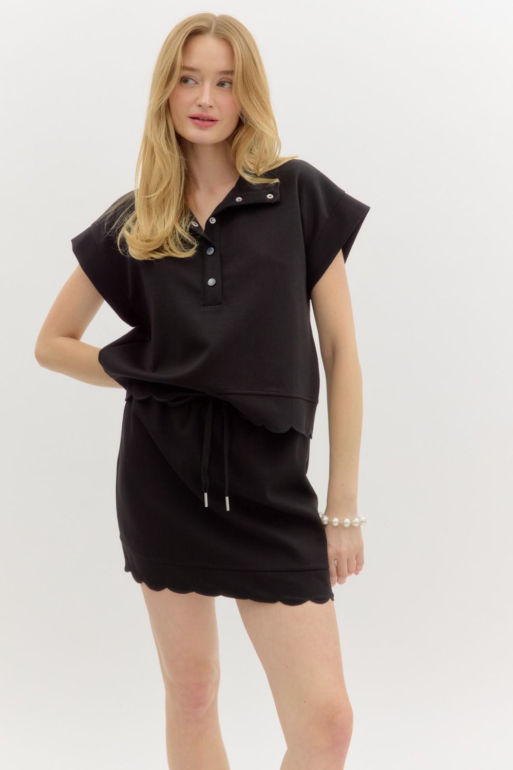 Black Scallop Collar Jersey Knit Pullover