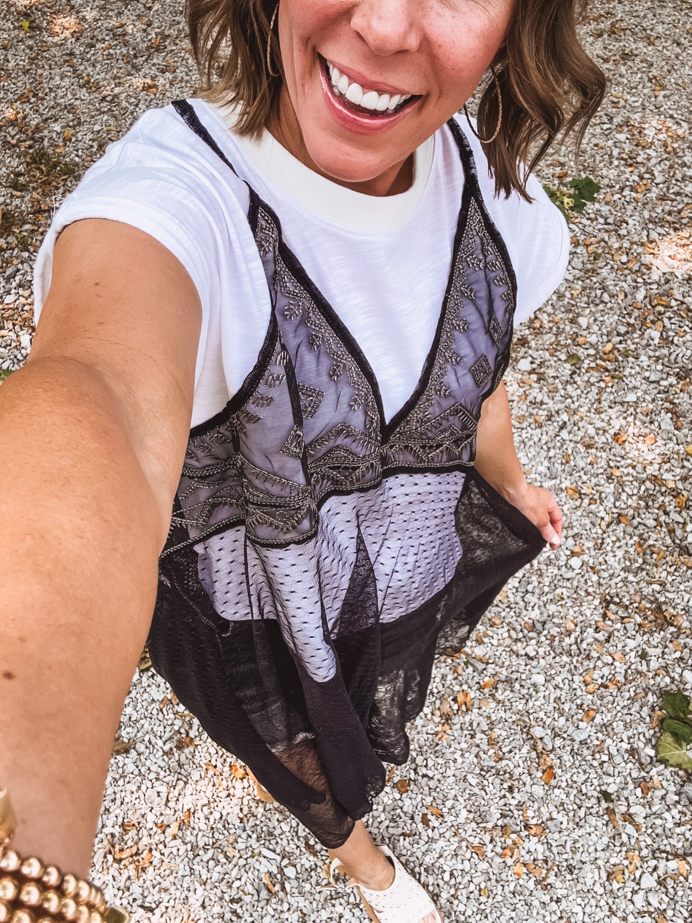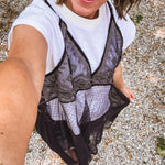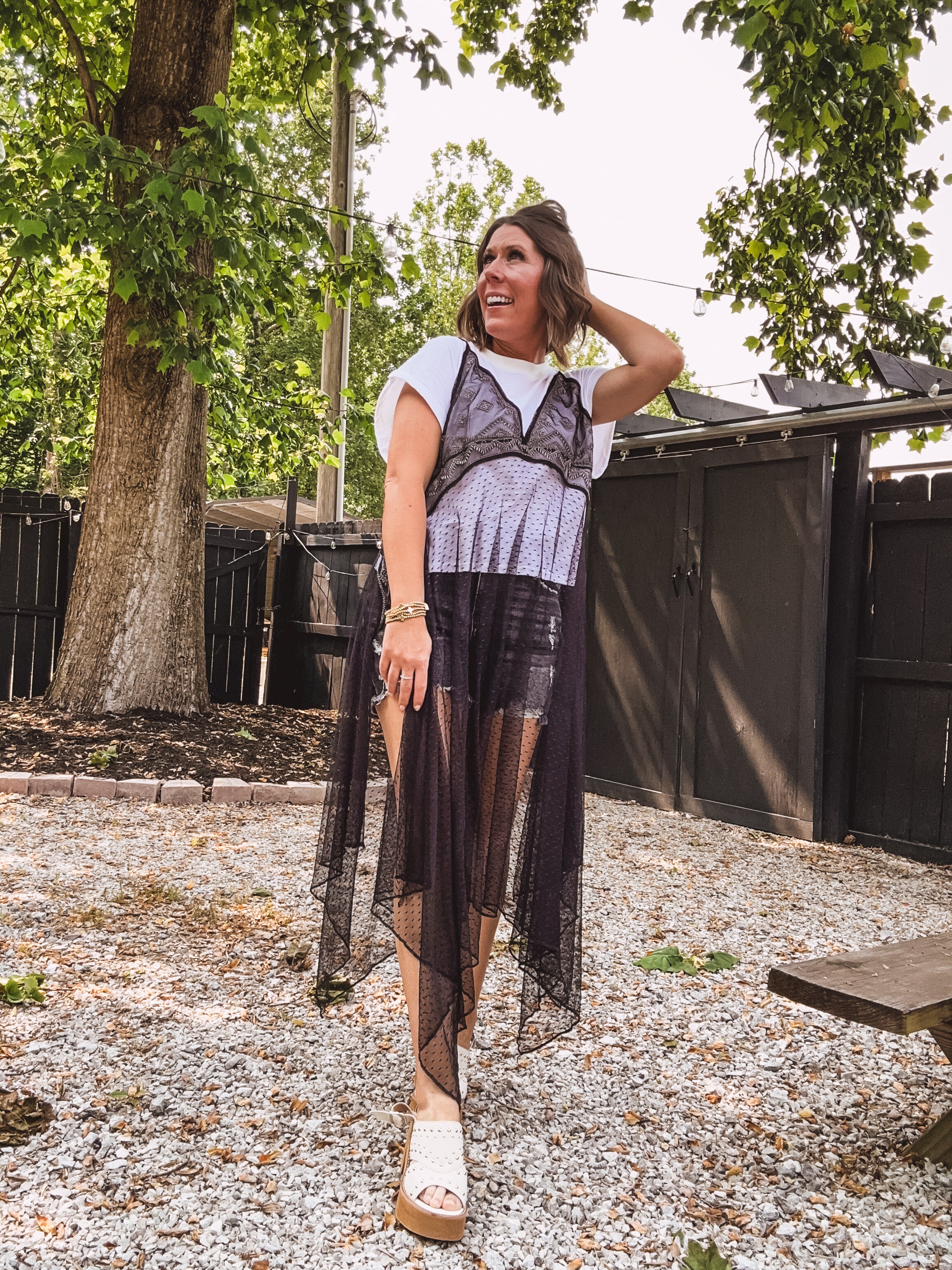 Dive into fashion fun with our Black Sheer Mesh Layered Tee! This cheeky little number marries a comfy white tee with flirty black mesh for major style points. The breathable fabric keeps you cool while the trendy overlay brings all the drama. Toss it on with jeans, shorts, leggings or a skirt and—boom!—instant outfit upgrade that'll have everyone asking, "Where'd you get that top?"