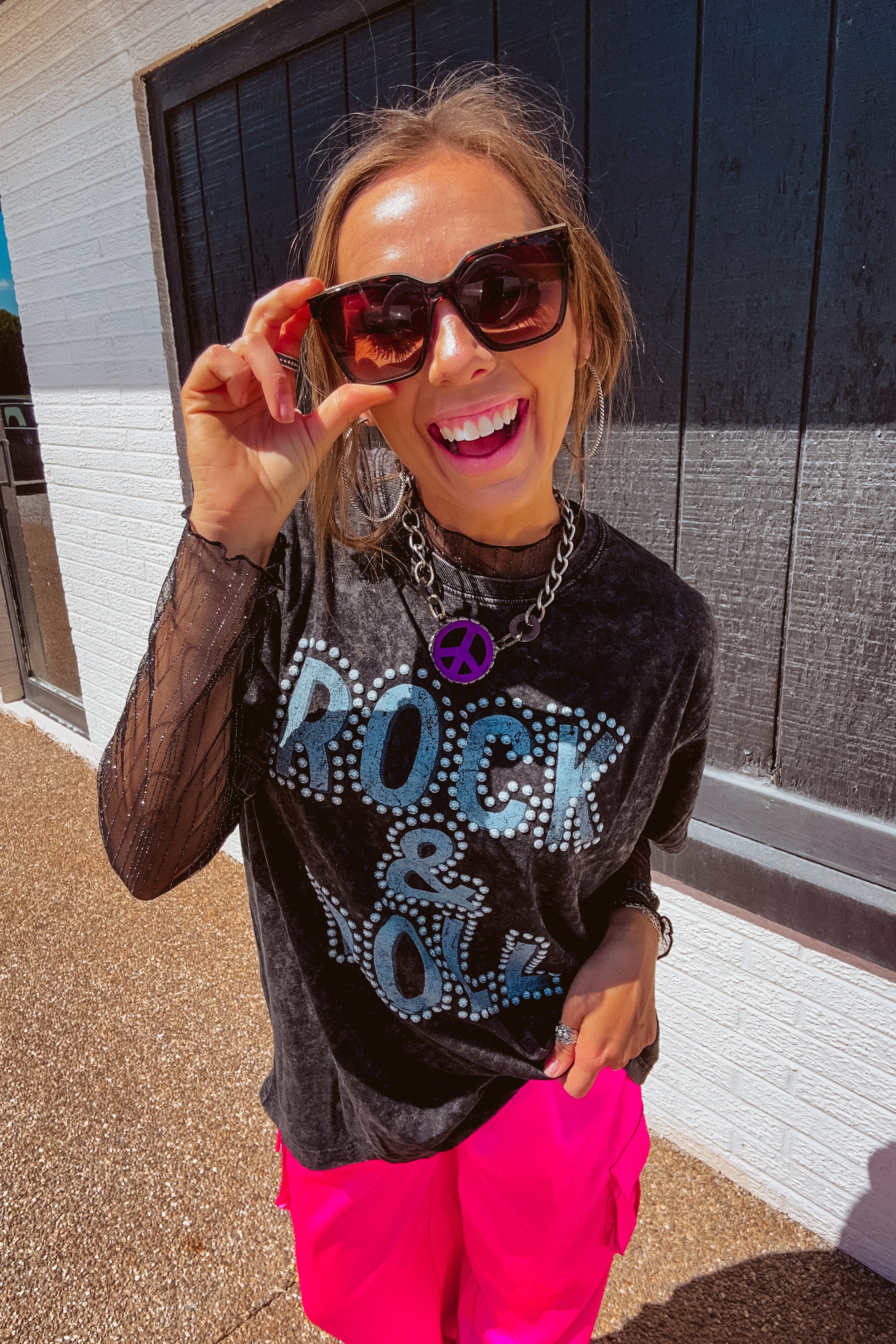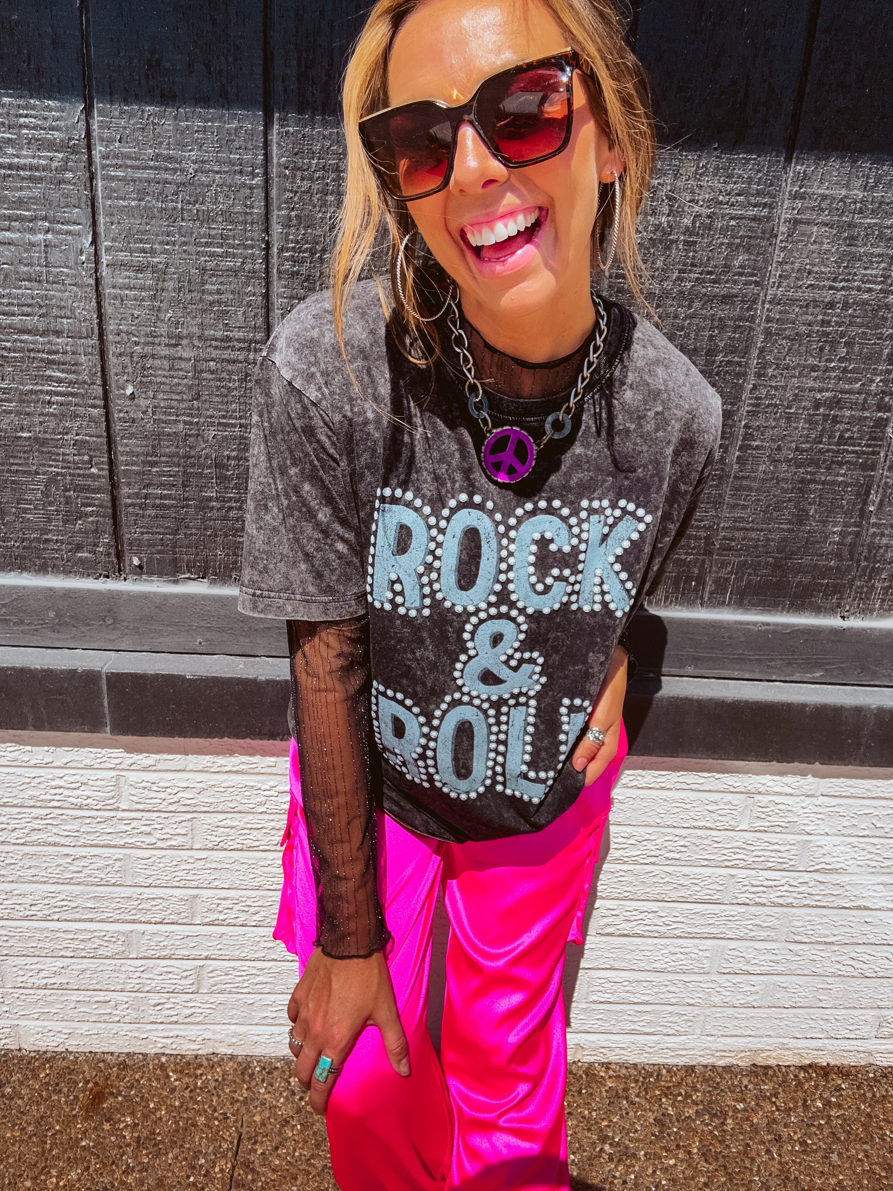 This sheer mesh top boasts long sleeves, metallic silver stripes, and a mock neck with a subtle ruffled edge. From graphic tees to jumpsuits, blazers to denim, this versatile piece can be layered with anything. Its cropped hem adds a touch of modern style to any outfit.