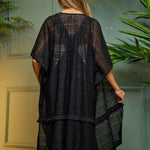 Black Square Lace Open Front Kimono