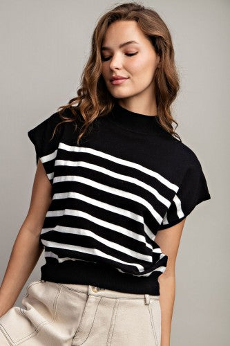 Black & White Stripe Mock Neck Sweater Tank