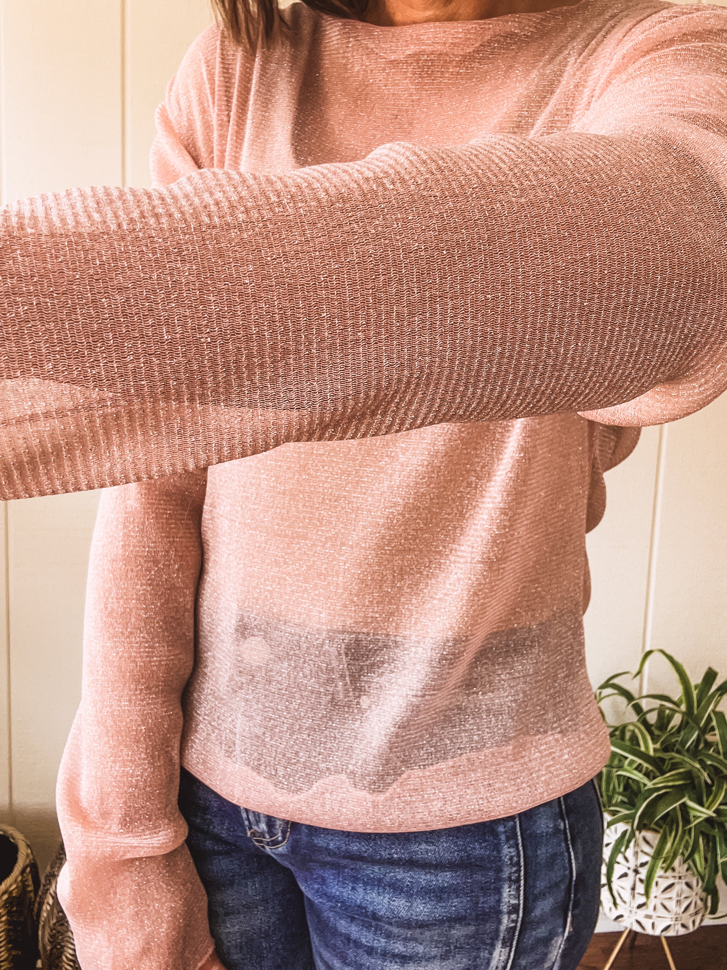 Blush Glitter LS Mesh