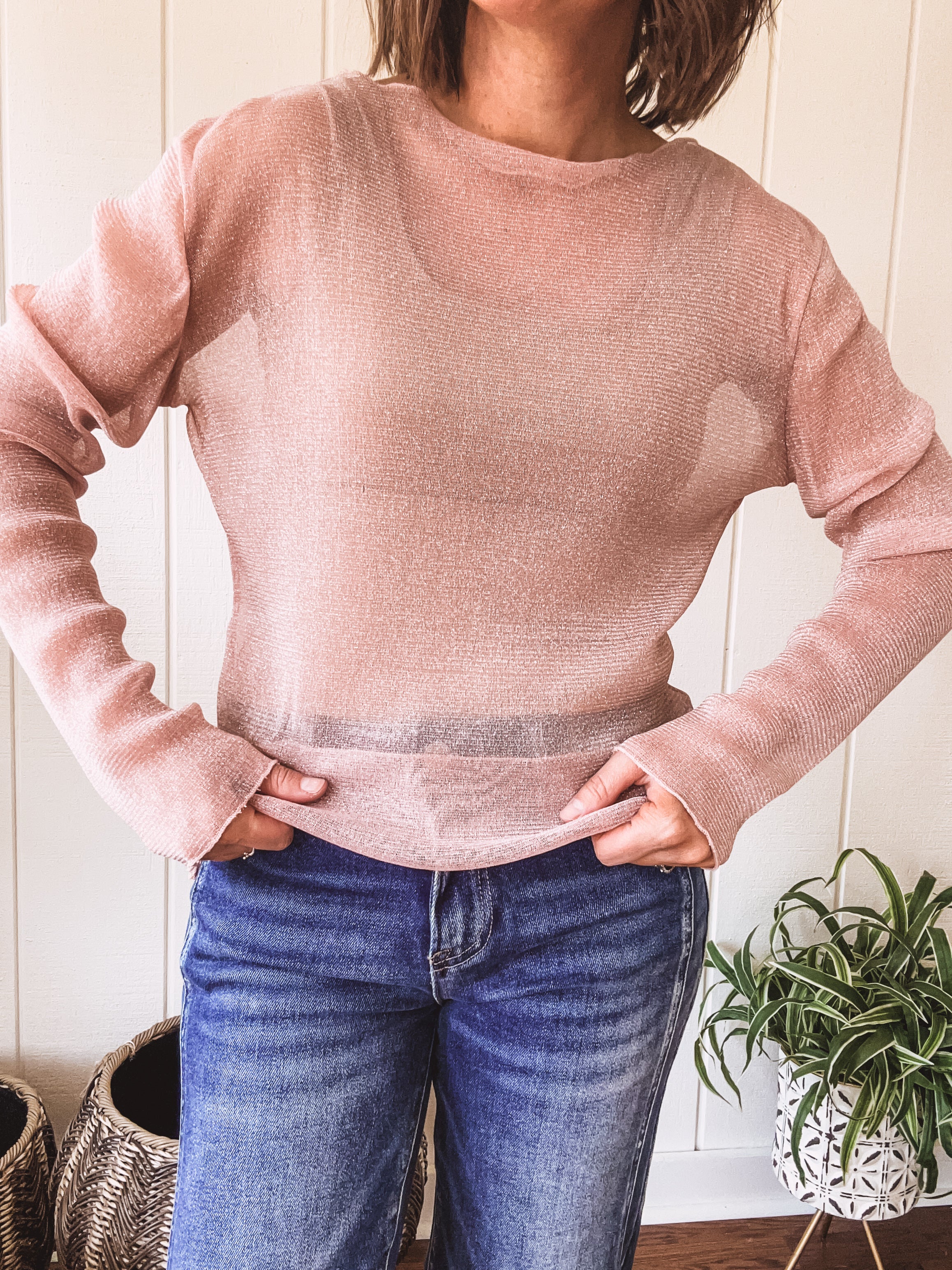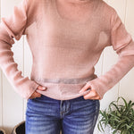 Looking for the ultimate layering piece? Look no further than this Blush Glitter LS Mesh top! Its muted pink color is elevated with subtle metallic threads, making it the perfect addition to your wardrobe. Wear it under rompers, tees, and sweaters for a unique and edgy look, or pair with a tank or bralette for a trendy vibe.