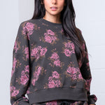 Charcoal Floral Washed Crew