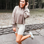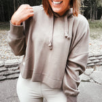 Enter the world of ultimate comfort with Simply Southern's Cozy Hoodie Crop! Its wide cuff, side slits, soft material, and crop style are designed to flatter and pair perfectly with your favorite denim or our Nylon Rib Romper (pictured), making it a must-have for fall!