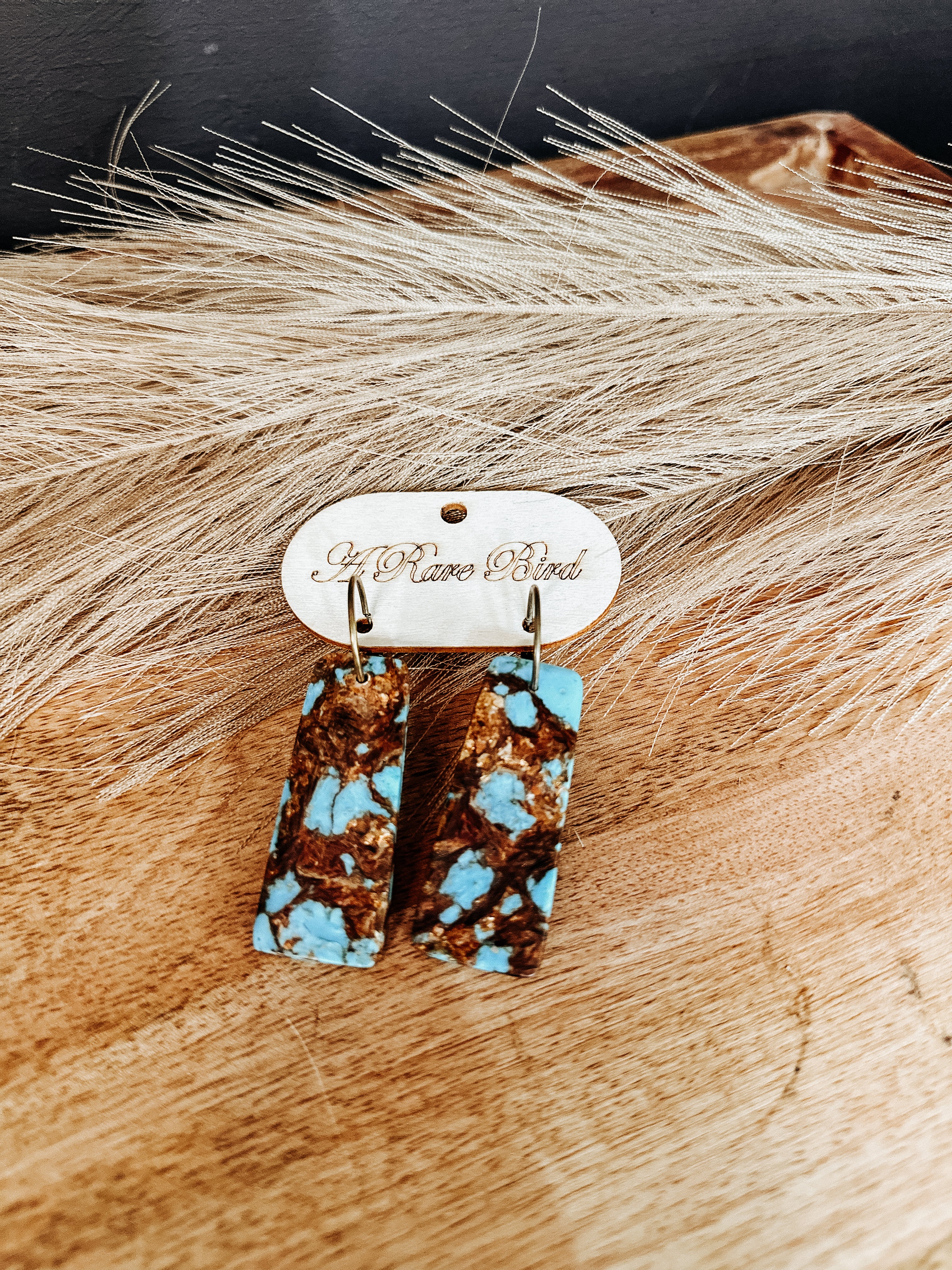 Add a splash of sparkle and color with these Crushin It Bronze + Turq Earrings. Featuring a playful blend of faux bronze and vibrant turquoise, these rectangular drop earrings are crafted to turn heads and brighten up any outfit. The lightweight design ensures all-day comfort, while the easy-to-wear shepherd's hook backs make slipping them on a breeze. Perfect for adding a dash of fun flair to your look, these earrings bring just the right amount of pizazz to your everyday style or special occasions.