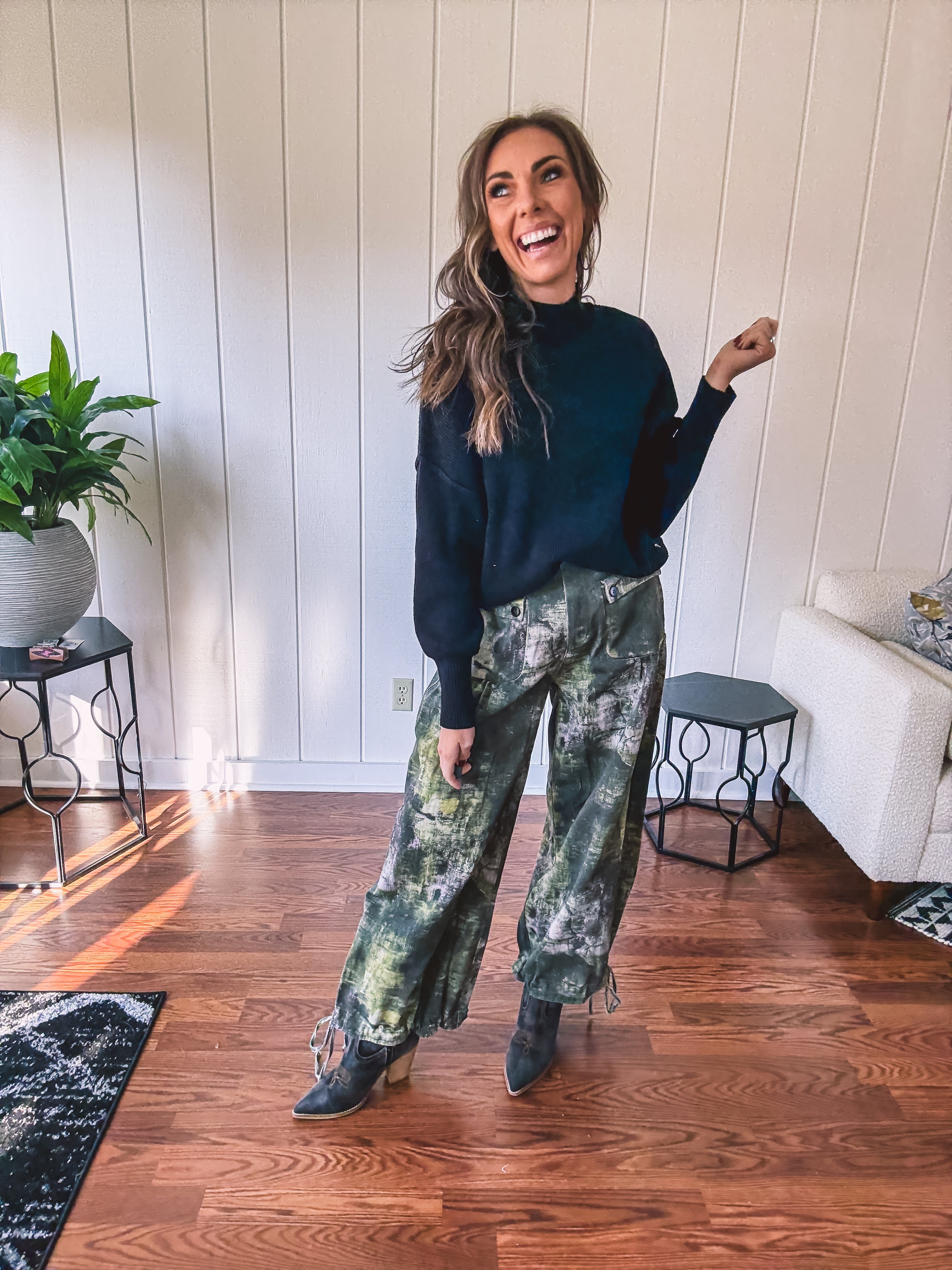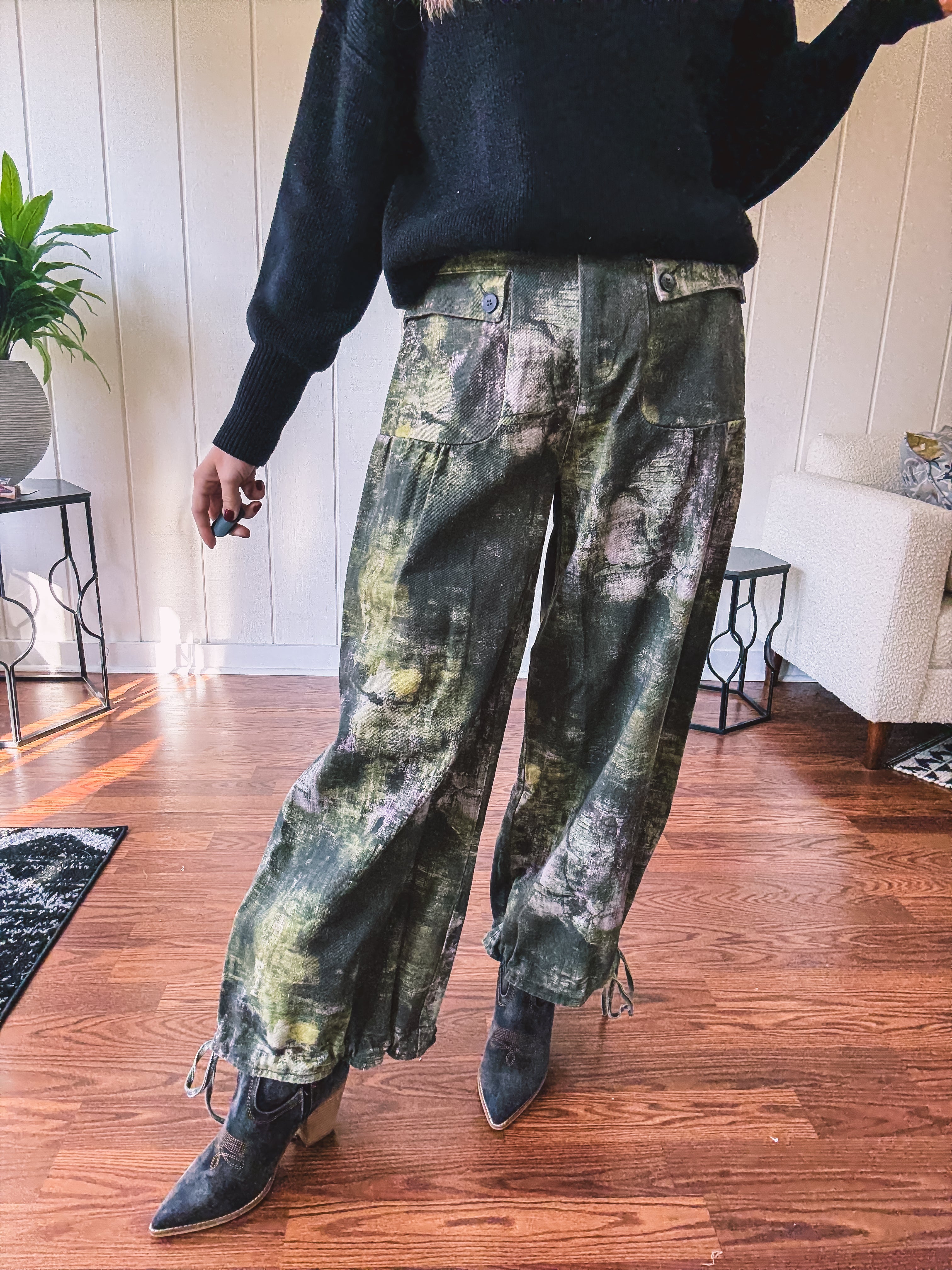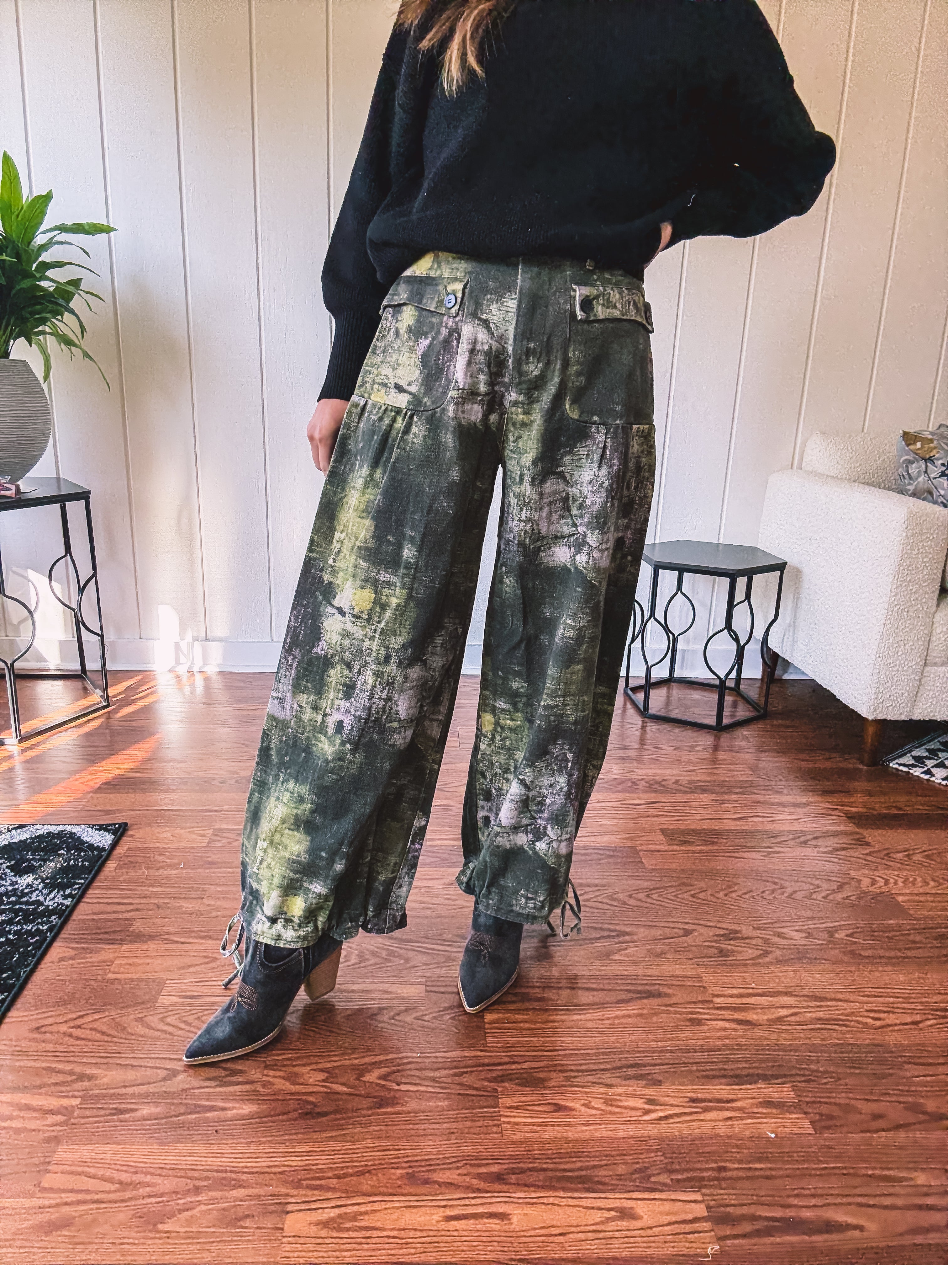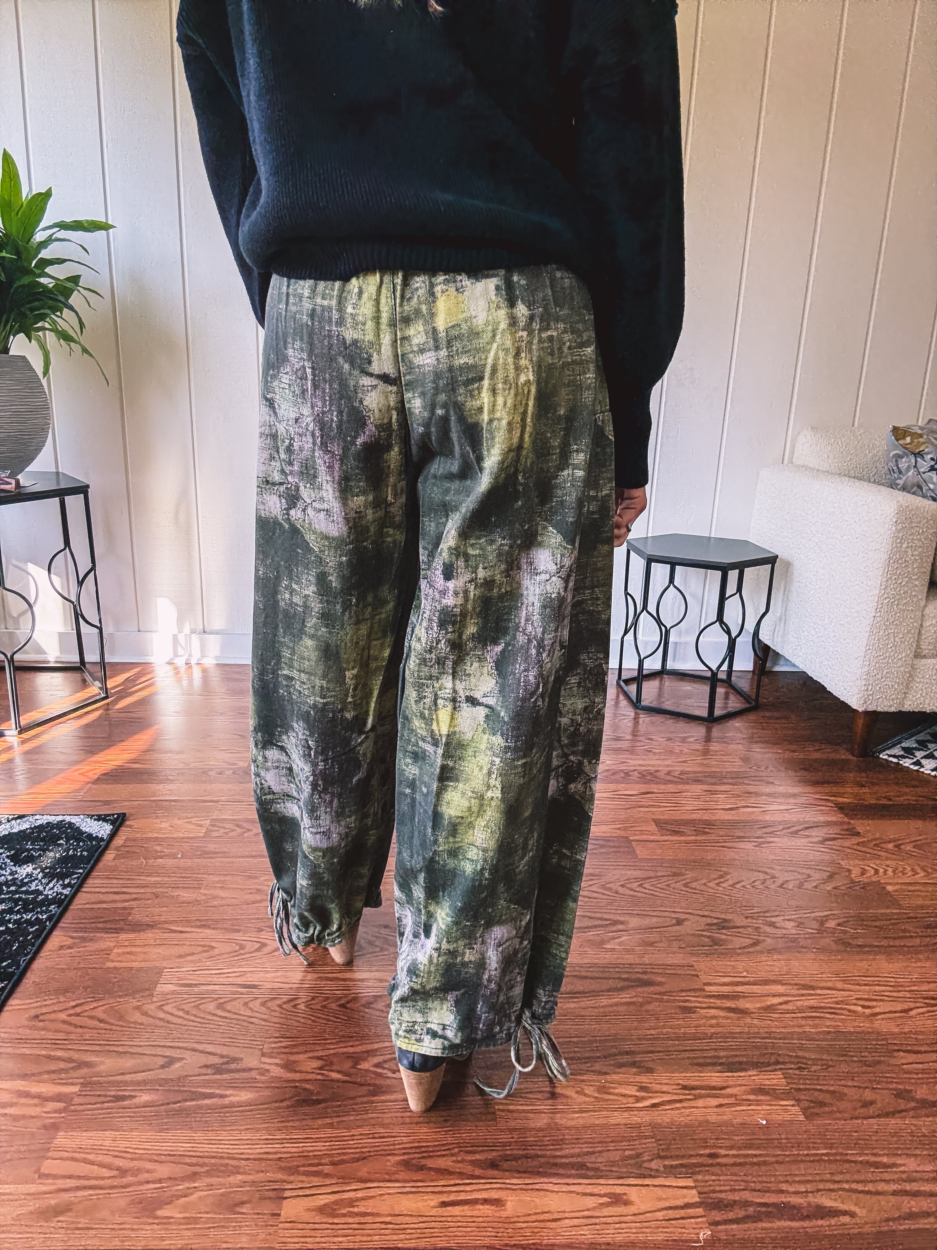 Dark Olive + Plum Mottled Balloon Bottom Pant