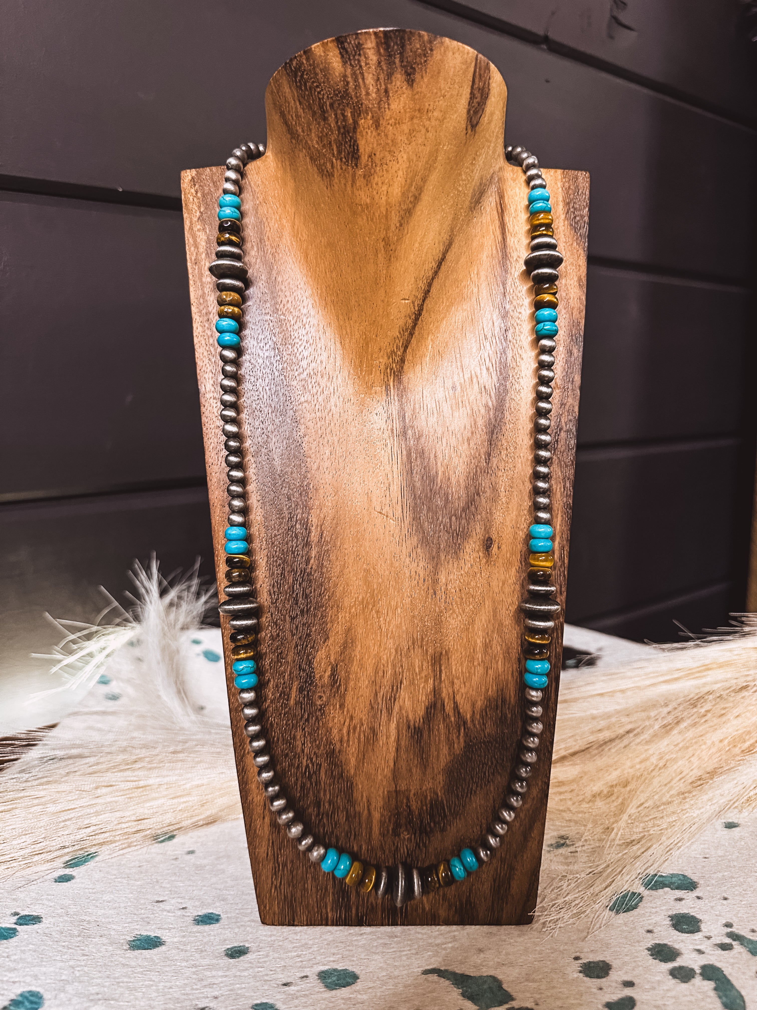Faux Saucer Turq + Tiger Eye Necklace | 26"